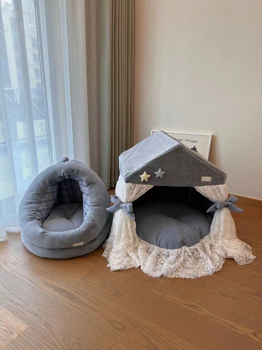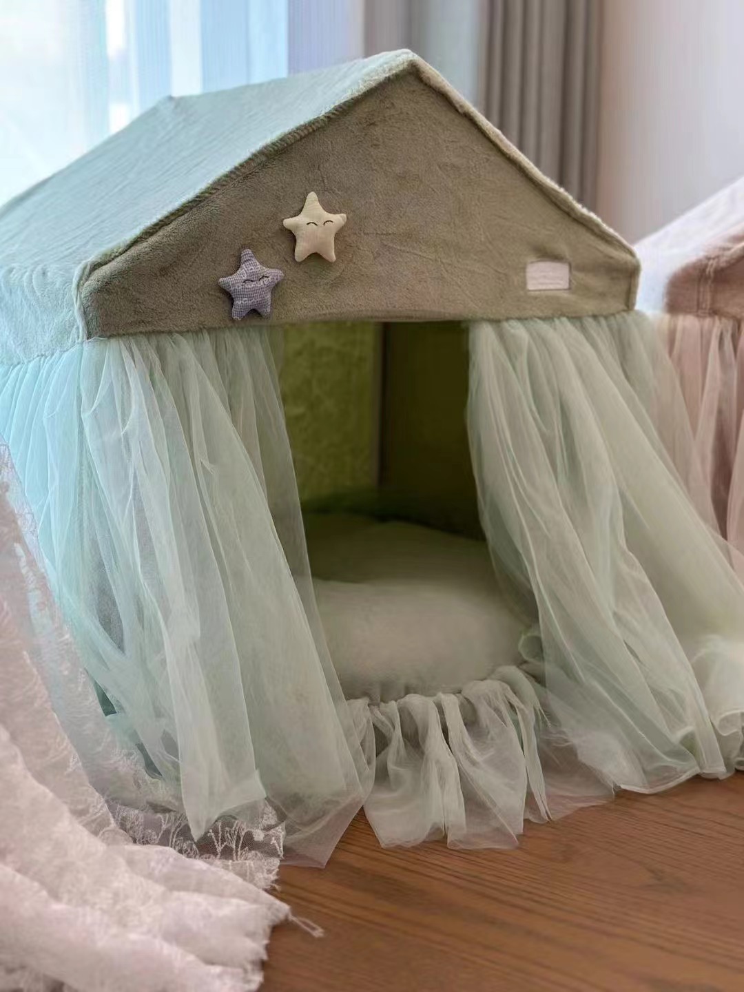 Домашний дом Принцесса Кружева Кружевное гнездо для кошек Палатка для собачьих питомников Снимите и стирайте четыре сезона маленьких собак для кошек и собак универсальный