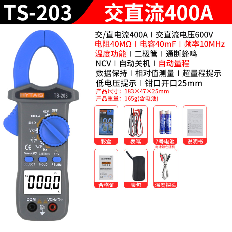 Высокоточный цифровой мультиметр-клещи 203, многофункциональный измеритель напряжения и тока переменного/постоянного тока