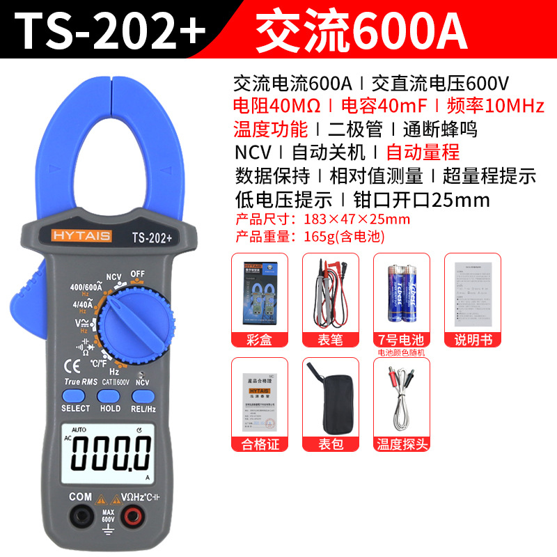 Базовая модель TS200 AC 600A; TS201 автоматическое отключение NCV макс.; TS202 AC 400A температура емкости частоты; Температура конденсатора частоты TS202+ AC 600A; TS203 Температура емкости частоты AC и DC 400A