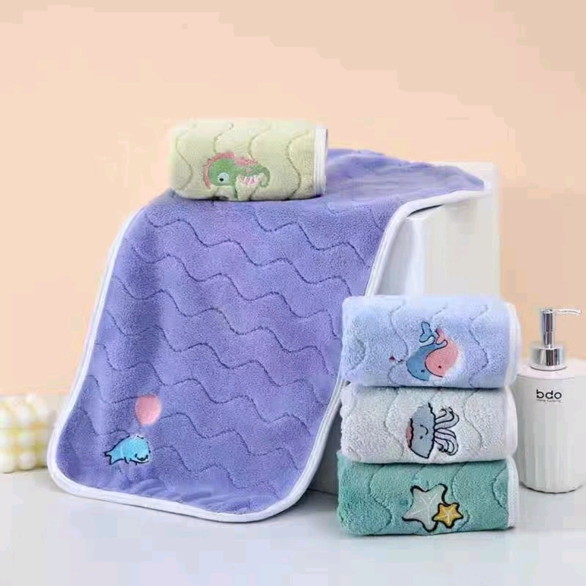 Коралловые бархатные полотенца вышитые водянистые морские детские полотенца 30*50 мультфильм милые маленькие салфетки для лица, чтобы впитать воду Оптовые полотенца