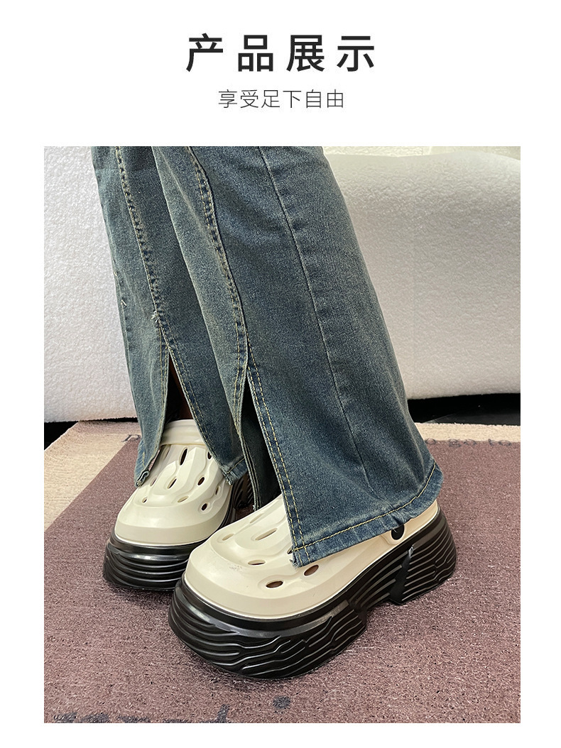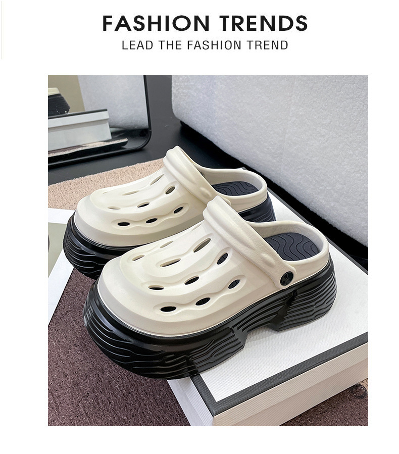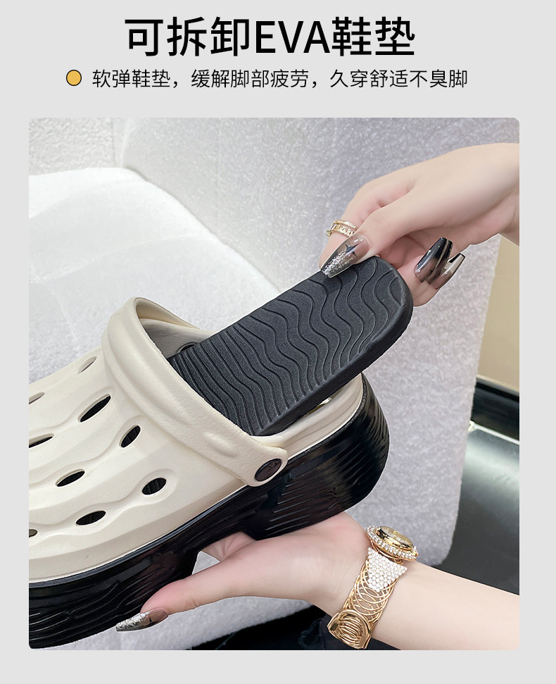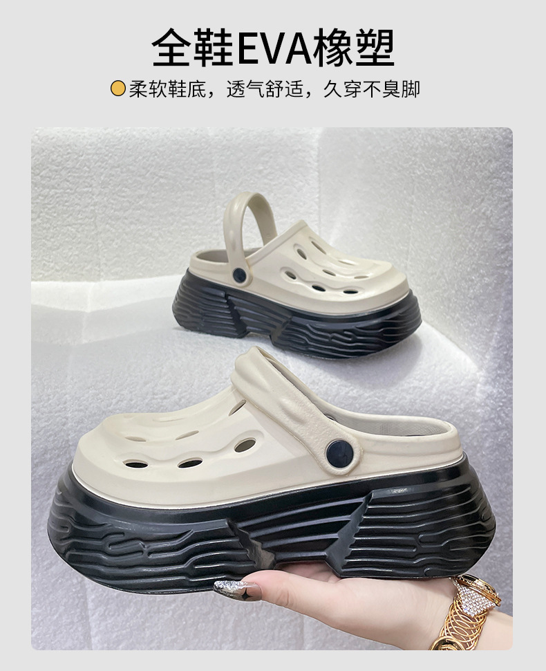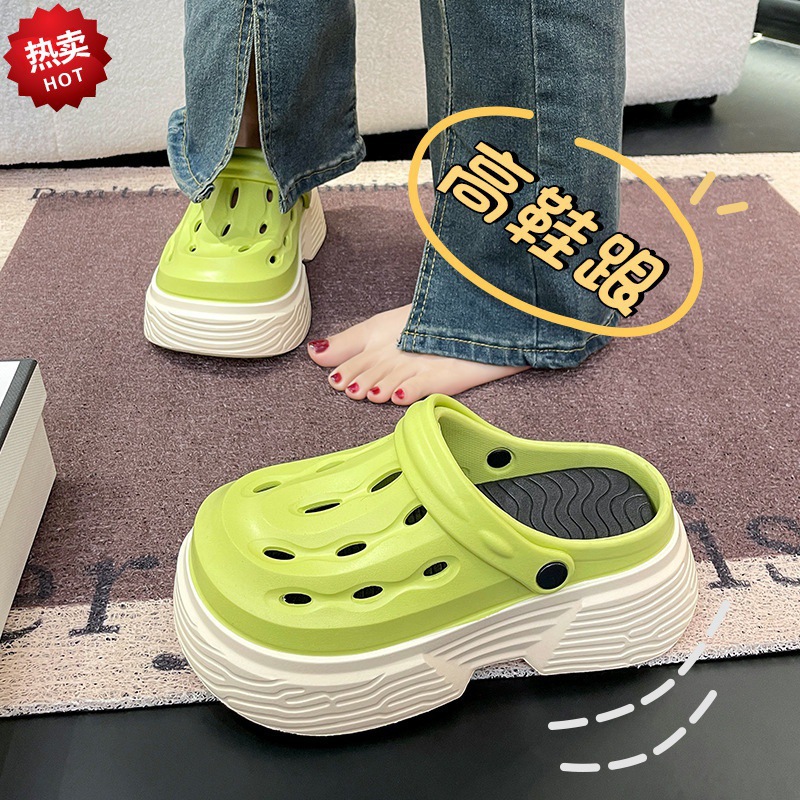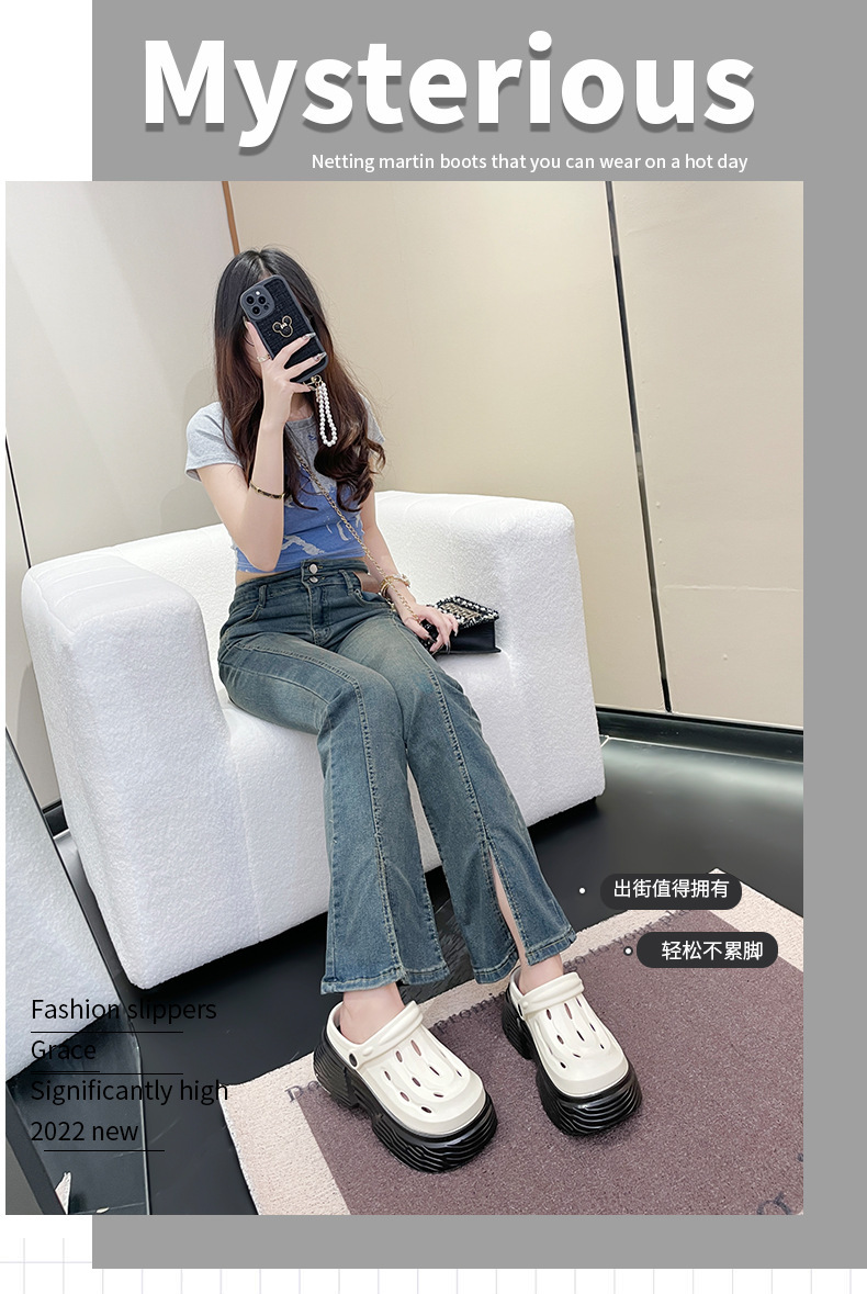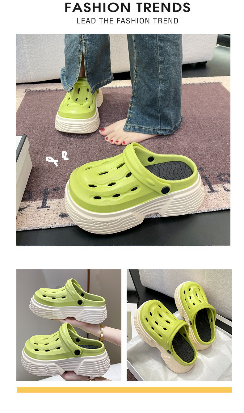 Женские пещерные туфли летом носят новые ультра-толстой подошве тапочки женская мода сеть красная увеличенные нескользящие и противоскользящие холодные тапочки женская