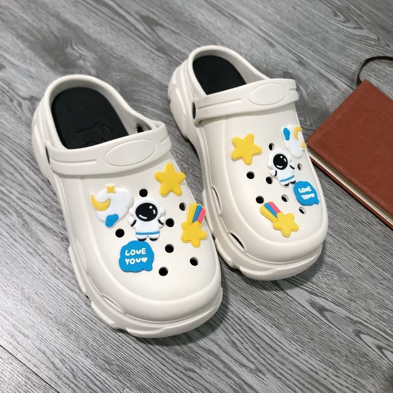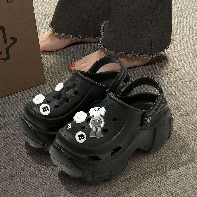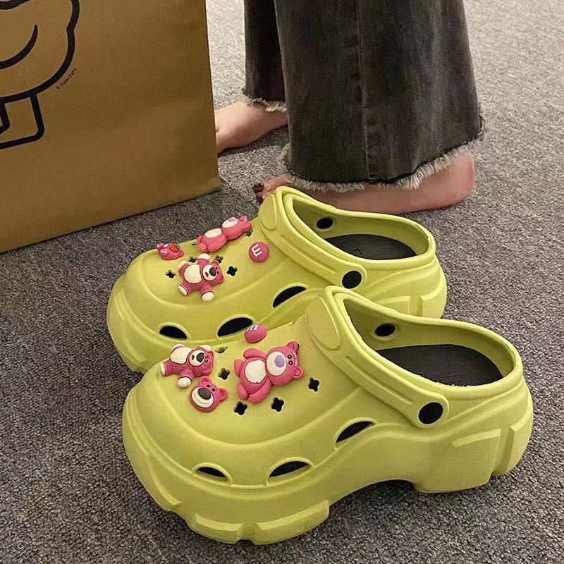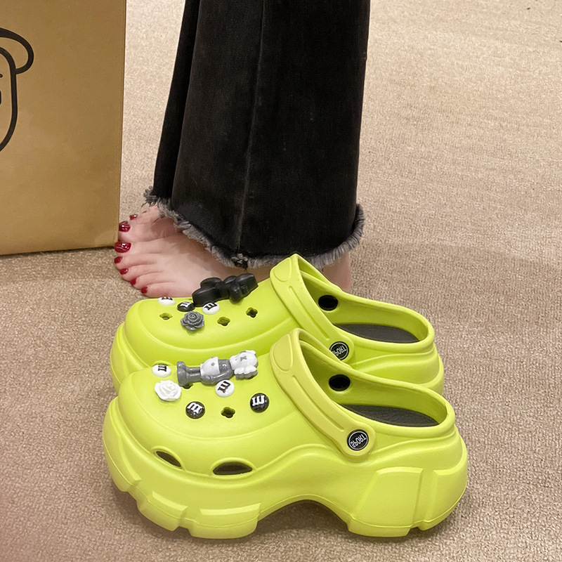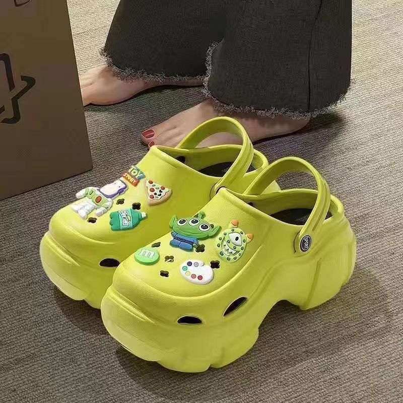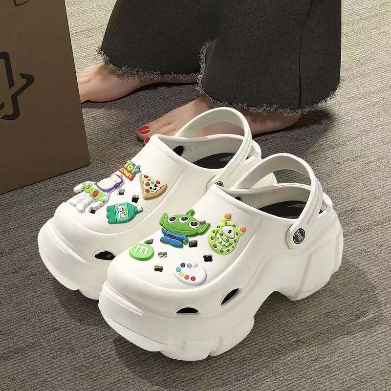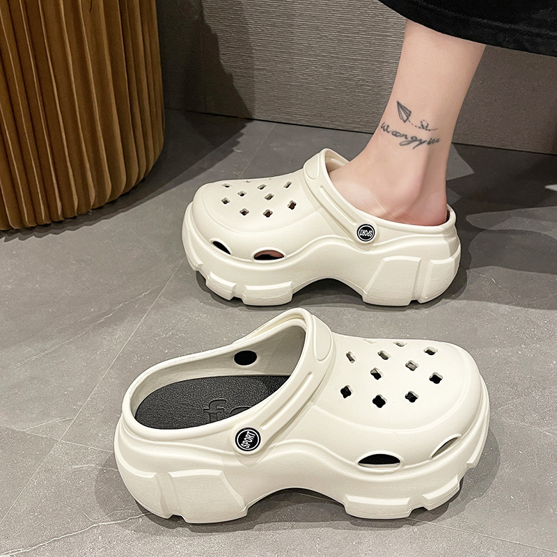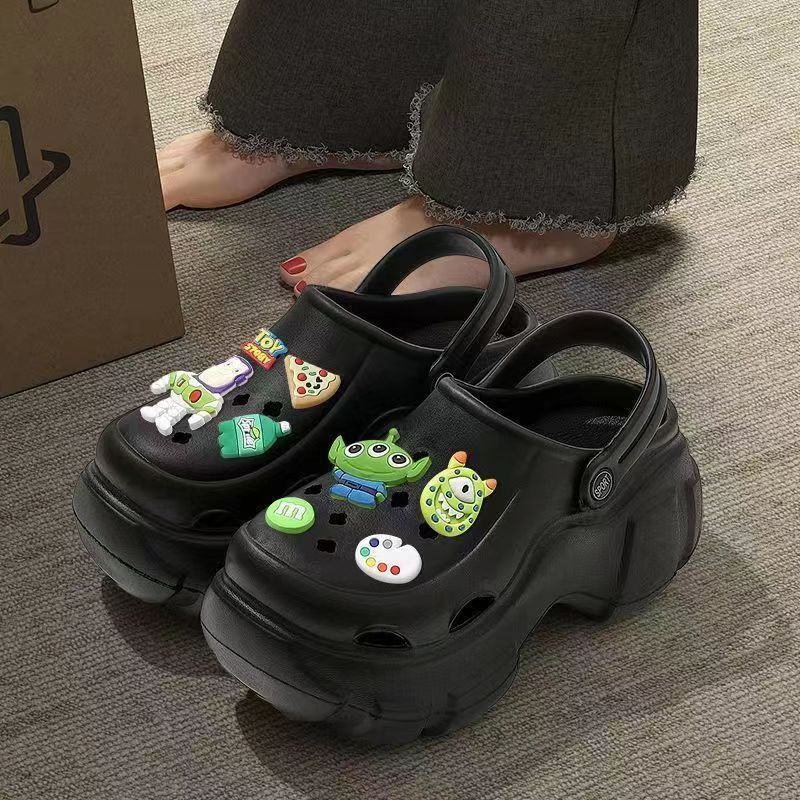 Туфли с дырками на толстой подошве женские летние наружные носки 2024 новые увеличенные противоскользящие туфли