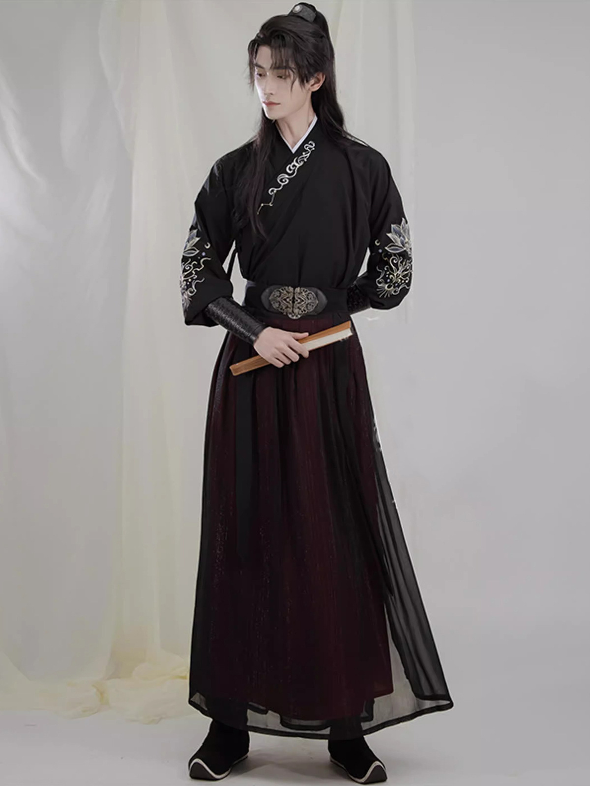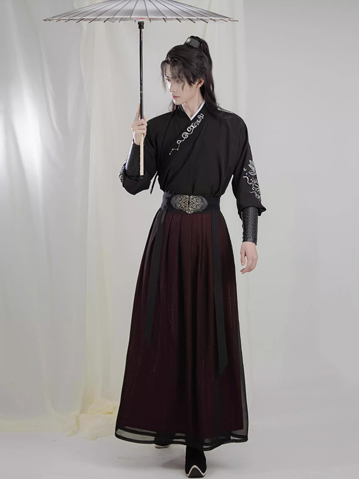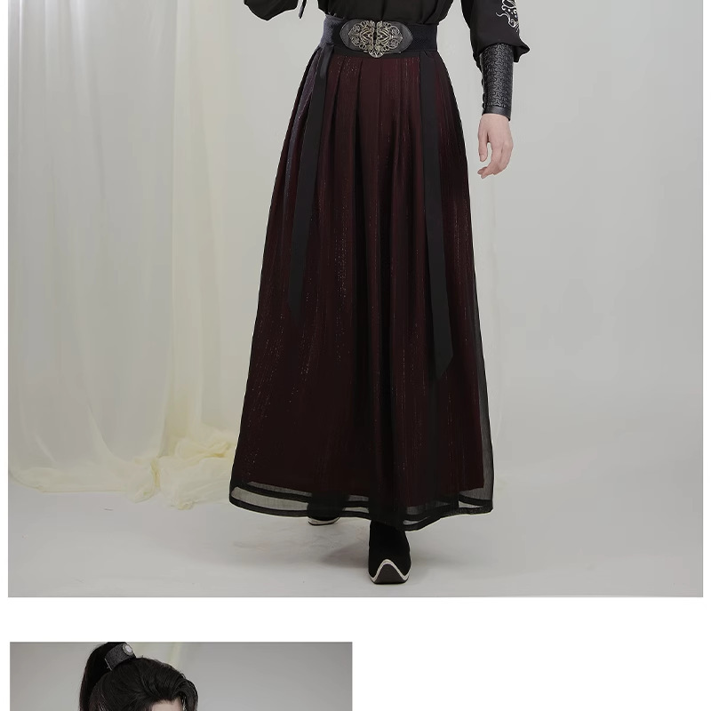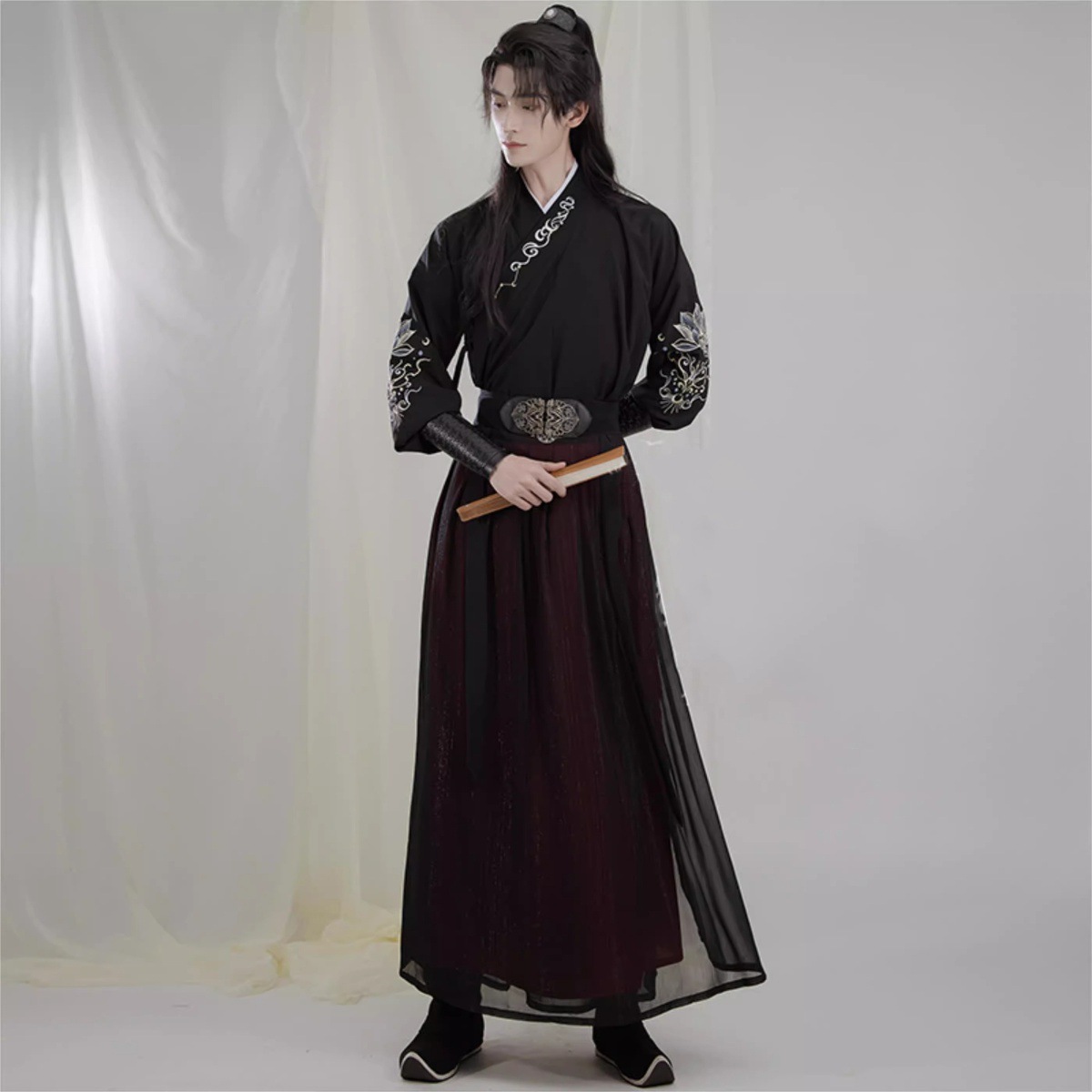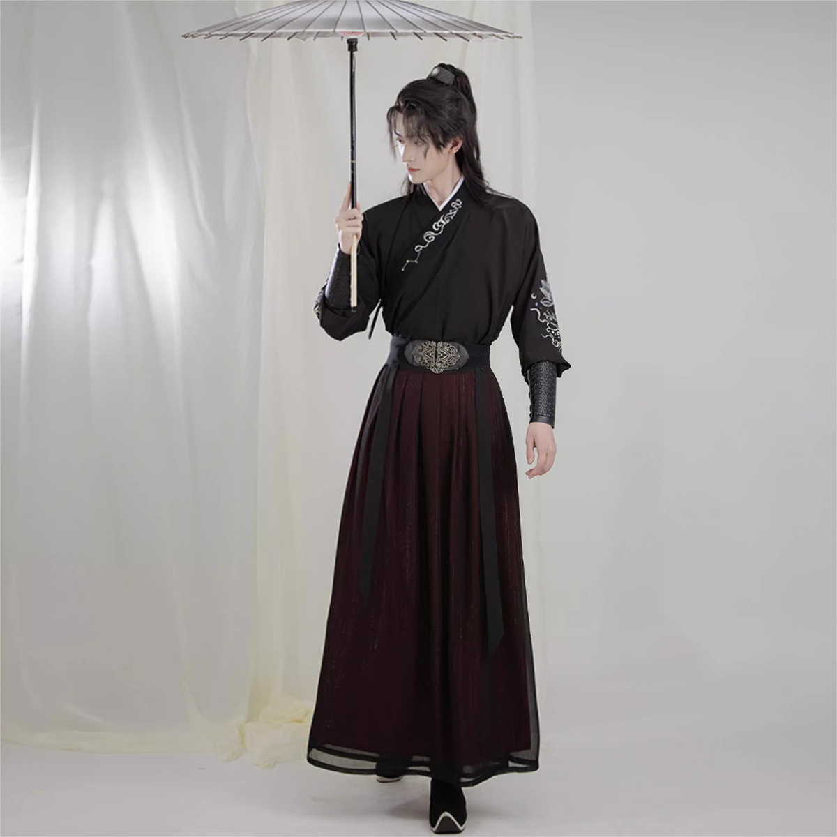 Мужская одежда в стиле династии Тан, новинка 2025 года: двухслойная сетчатая длинная юбка с широким подолом, властный костюм воина-мечника, красивый древний наряд.