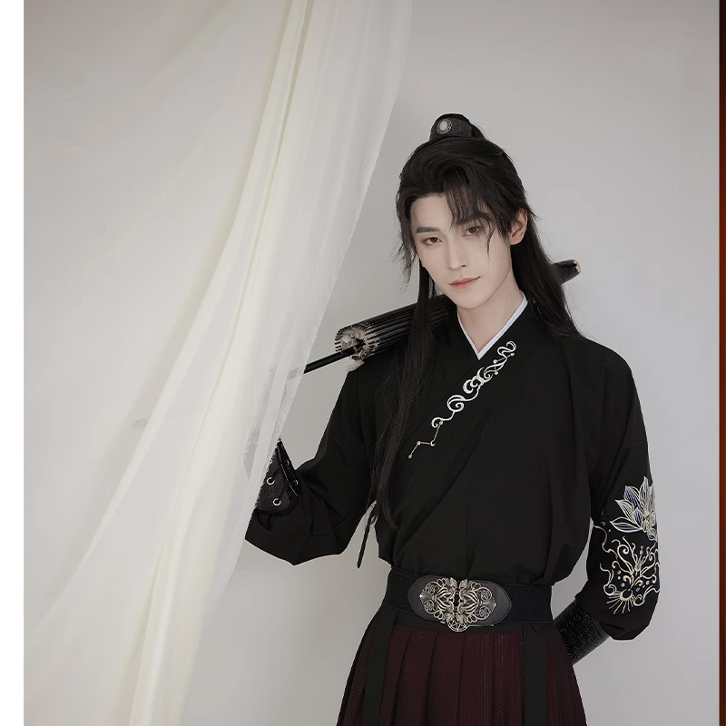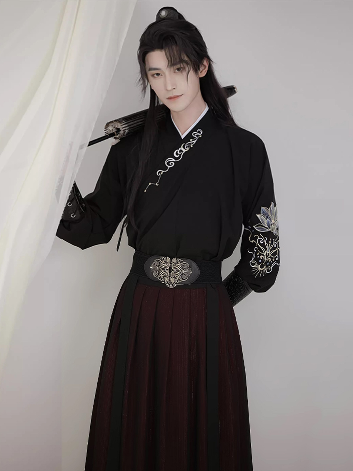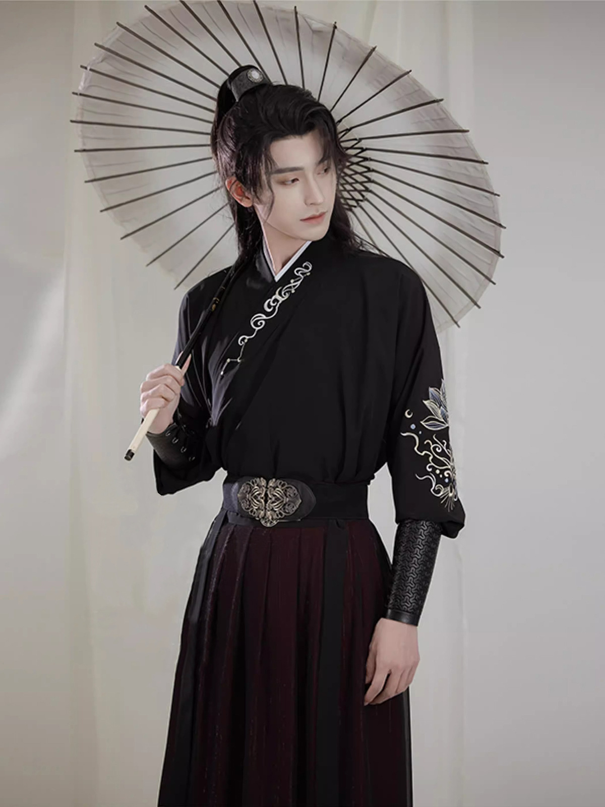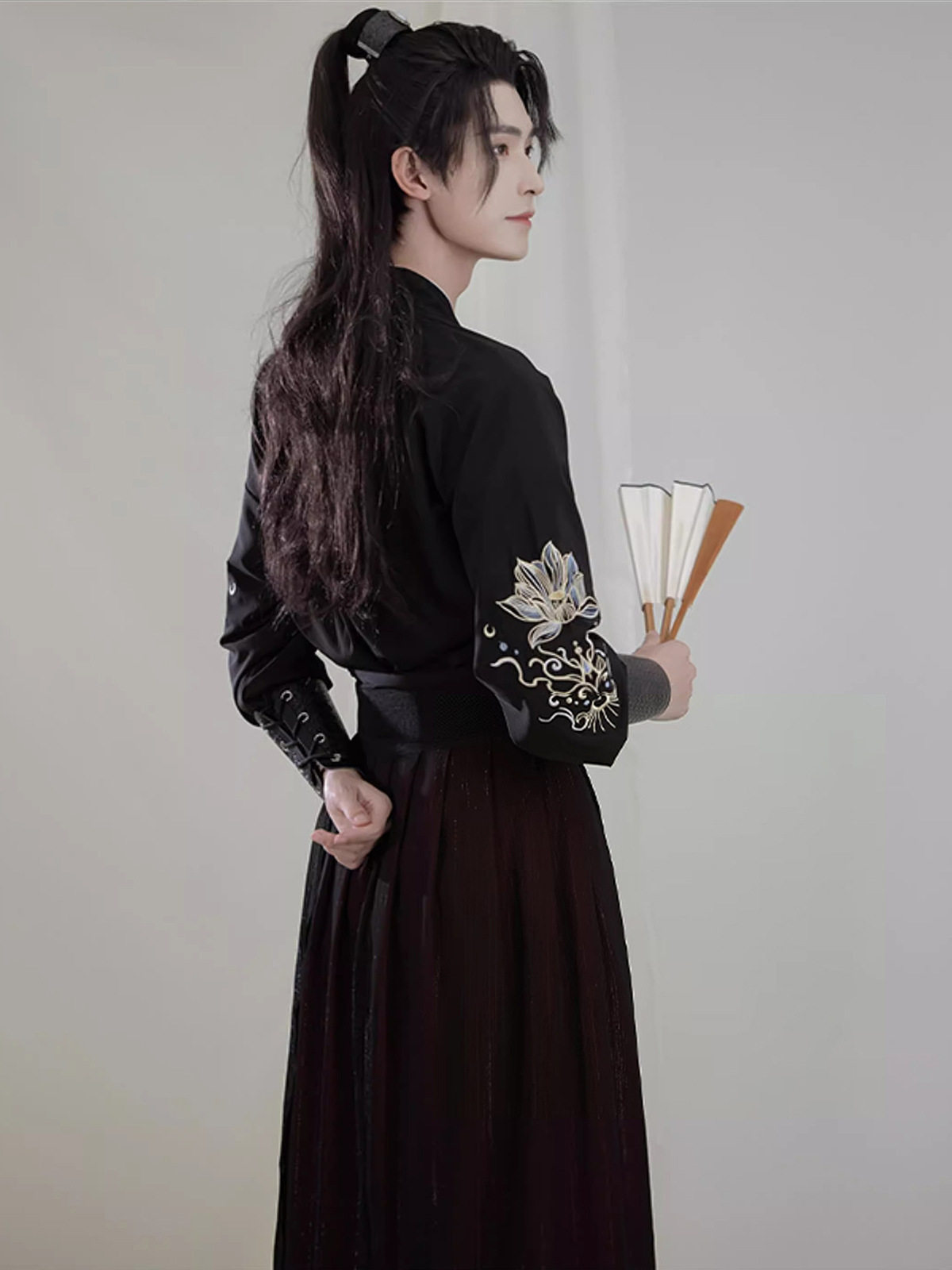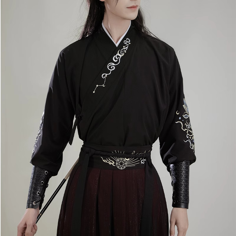 Мужская одежда в стиле династии Тан, новинка 2025 года: двухслойная сетчатая длинная юбка с широким подолом, властный костюм воина-мечника, красивый древний наряд.