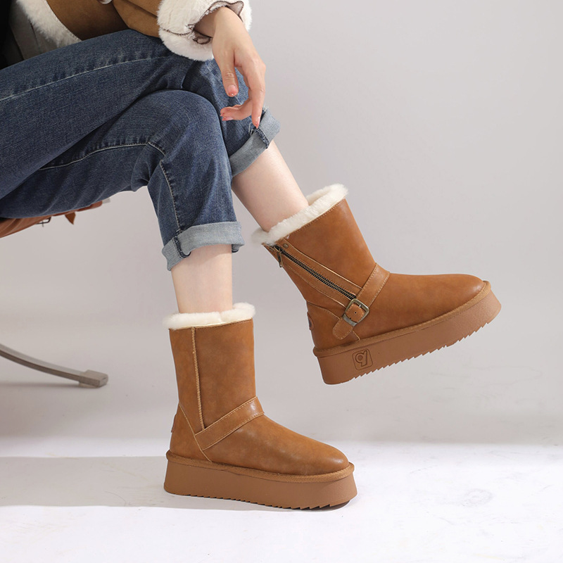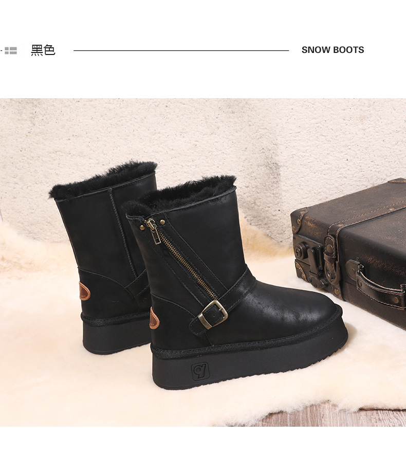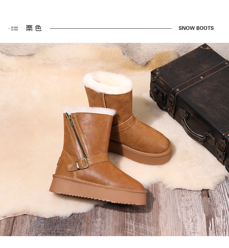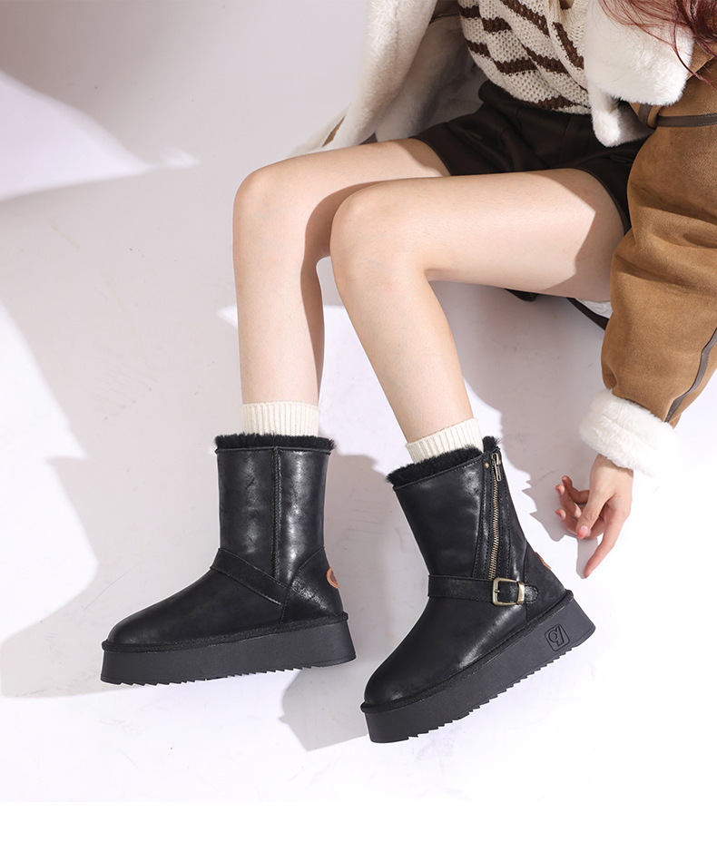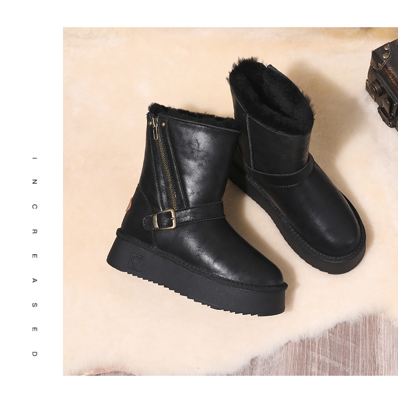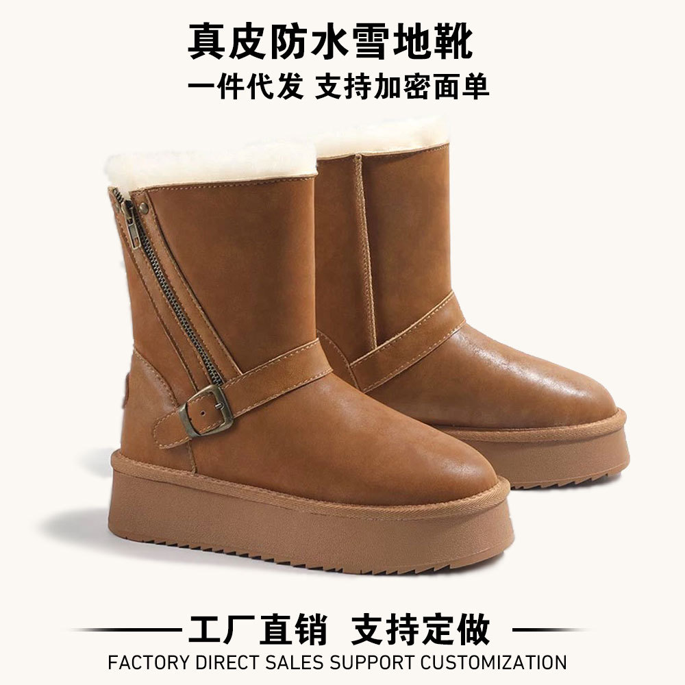 Женские зимние сапоги из натуральной кожи, новая модель высокого кроя, на флисовой подкладке, утолщенные, теплые, до середины икры, нескользящие, морозостойкие, на молнии, хлопковые, модель 5967
