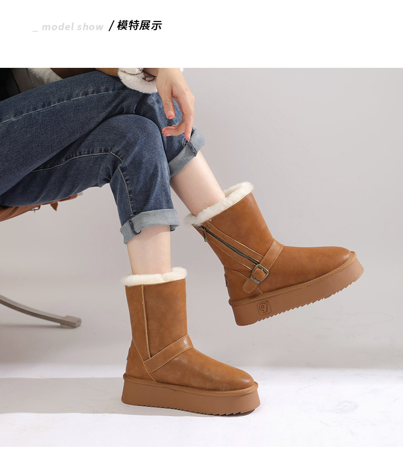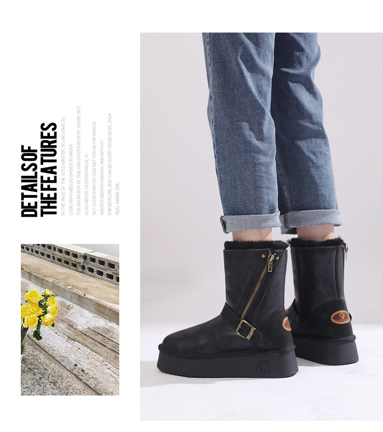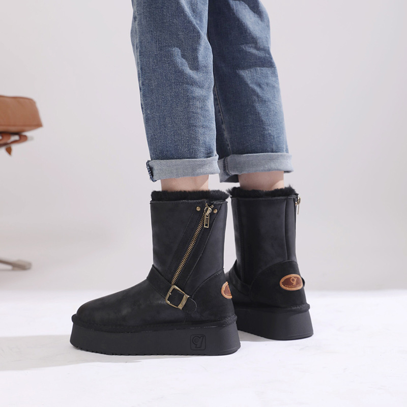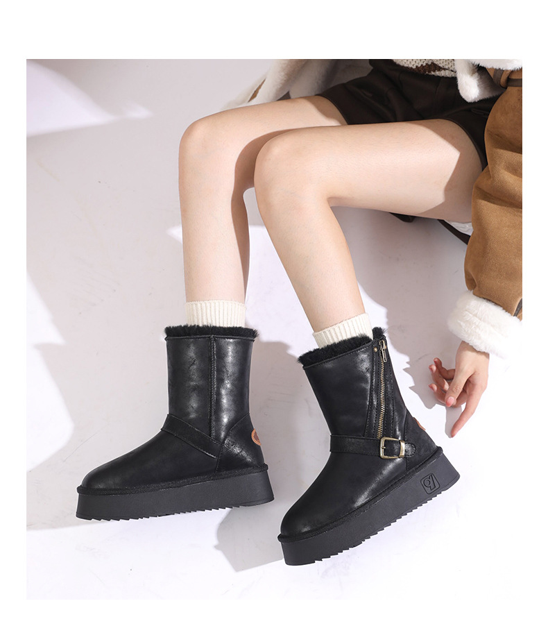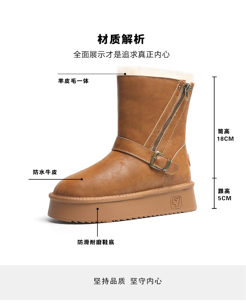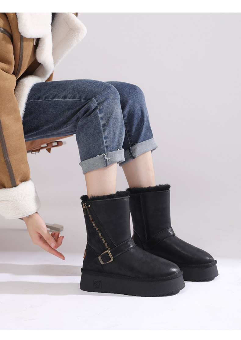 Женские зимние сапоги из натуральной кожи, новая модель высокого кроя, на флисовой подкладке, утолщенные, теплые, до середины икры, нескользящие, морозостойкие, на молнии, хлопковые, модель 5967