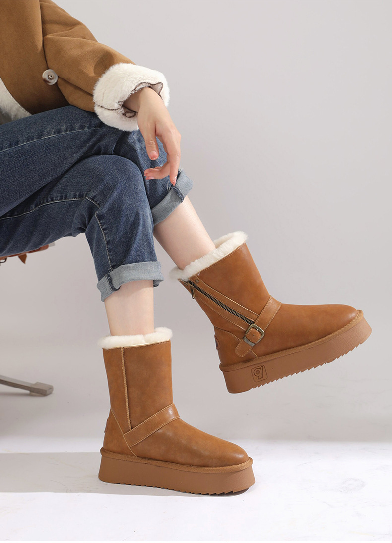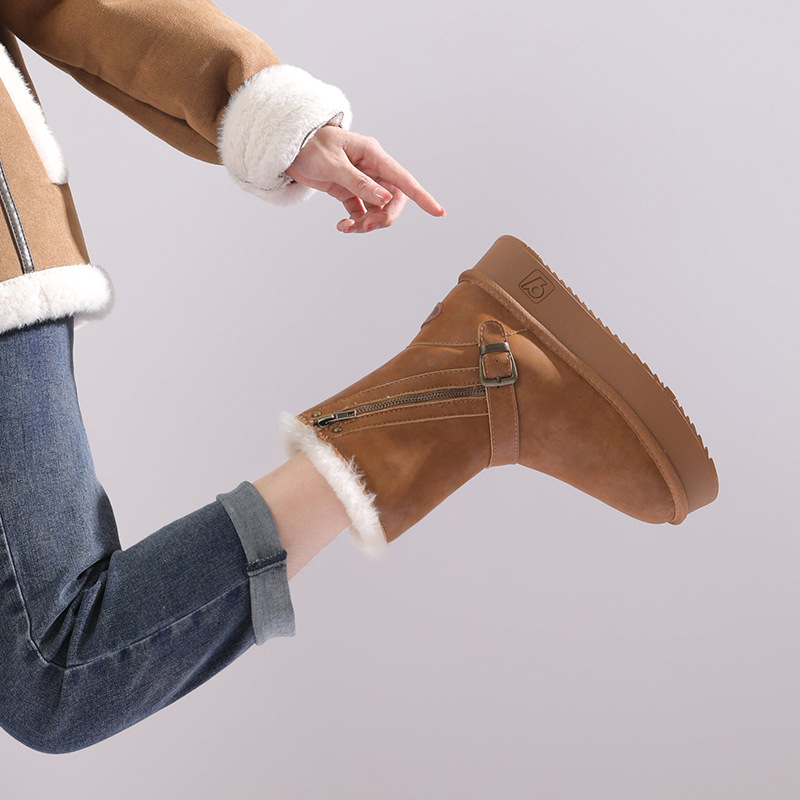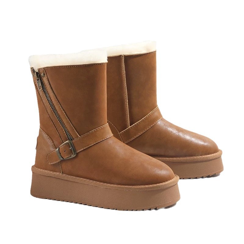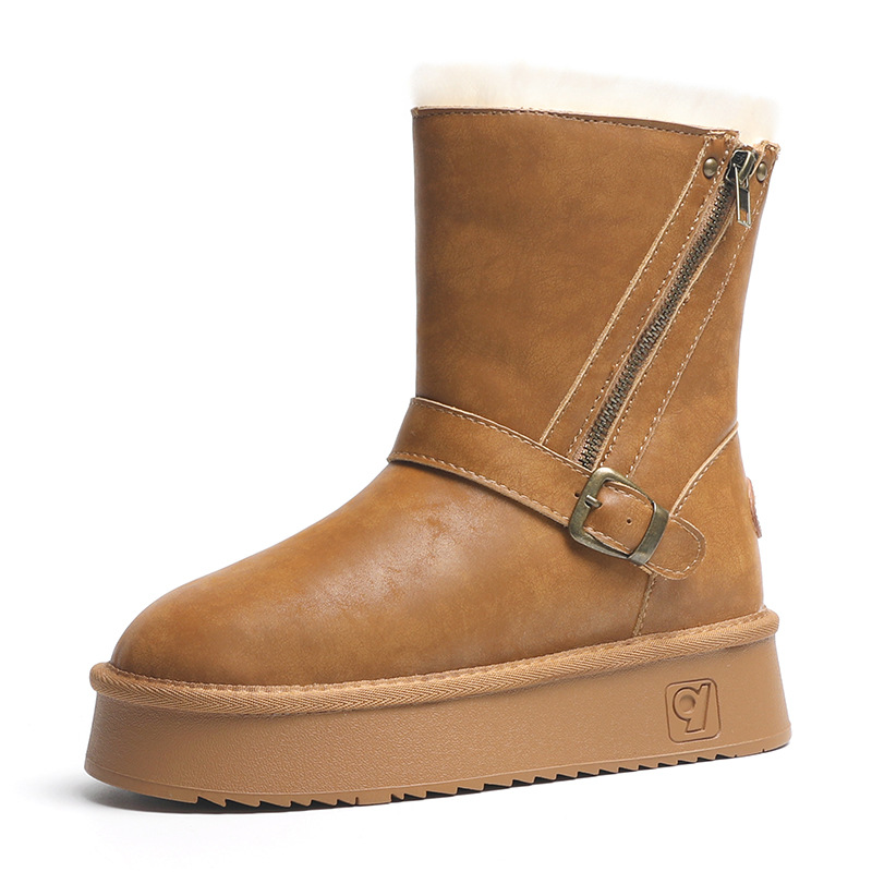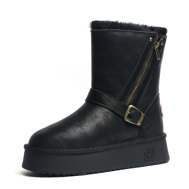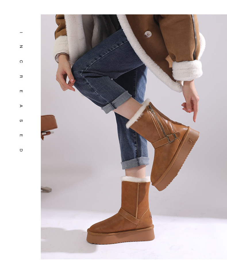Женские зимние сапоги из натуральной кожи, новая модель высокого кроя, на флисовой подкладке, утолщенные, теплые, до середины икры, нескользящие, морозостойкие, на молнии, хлопковые, модель 5967