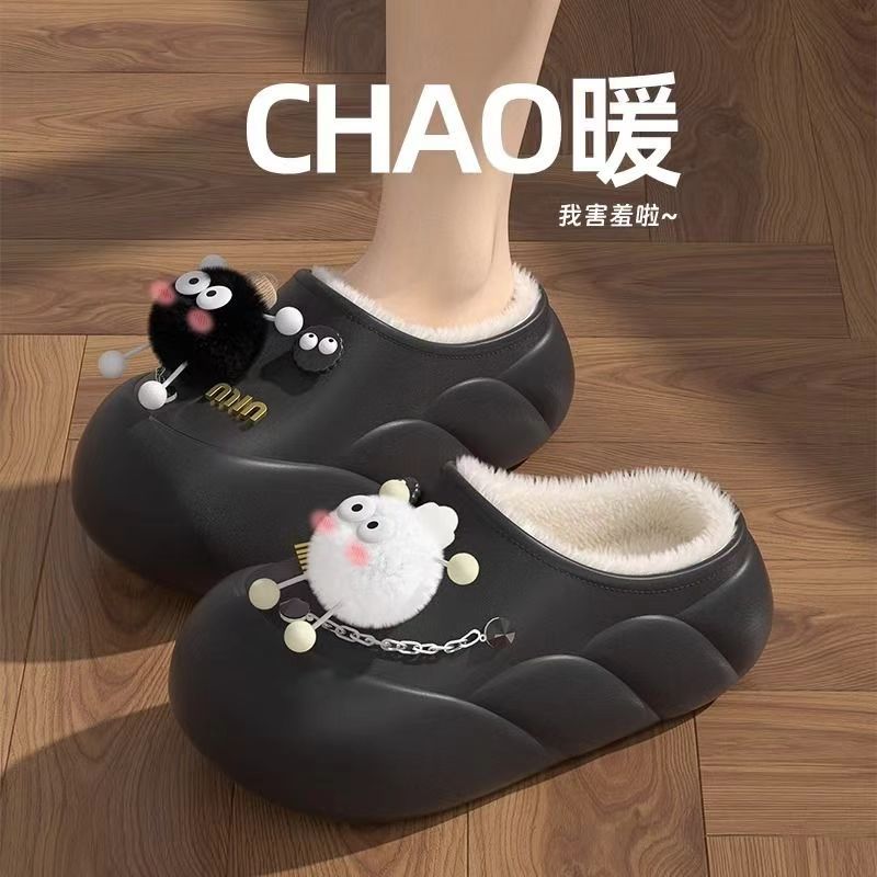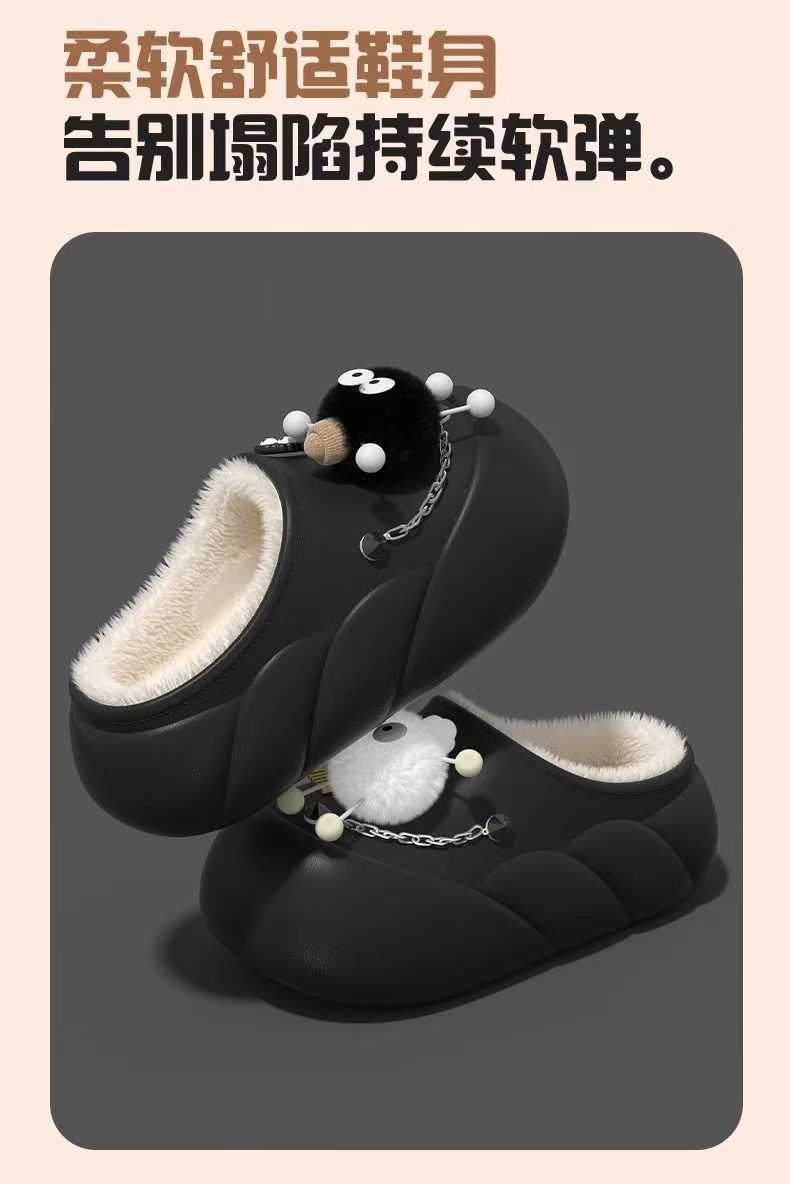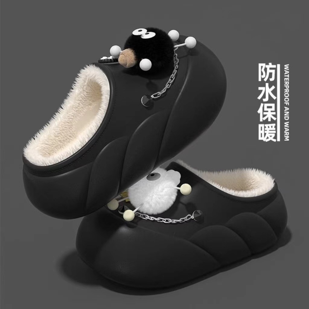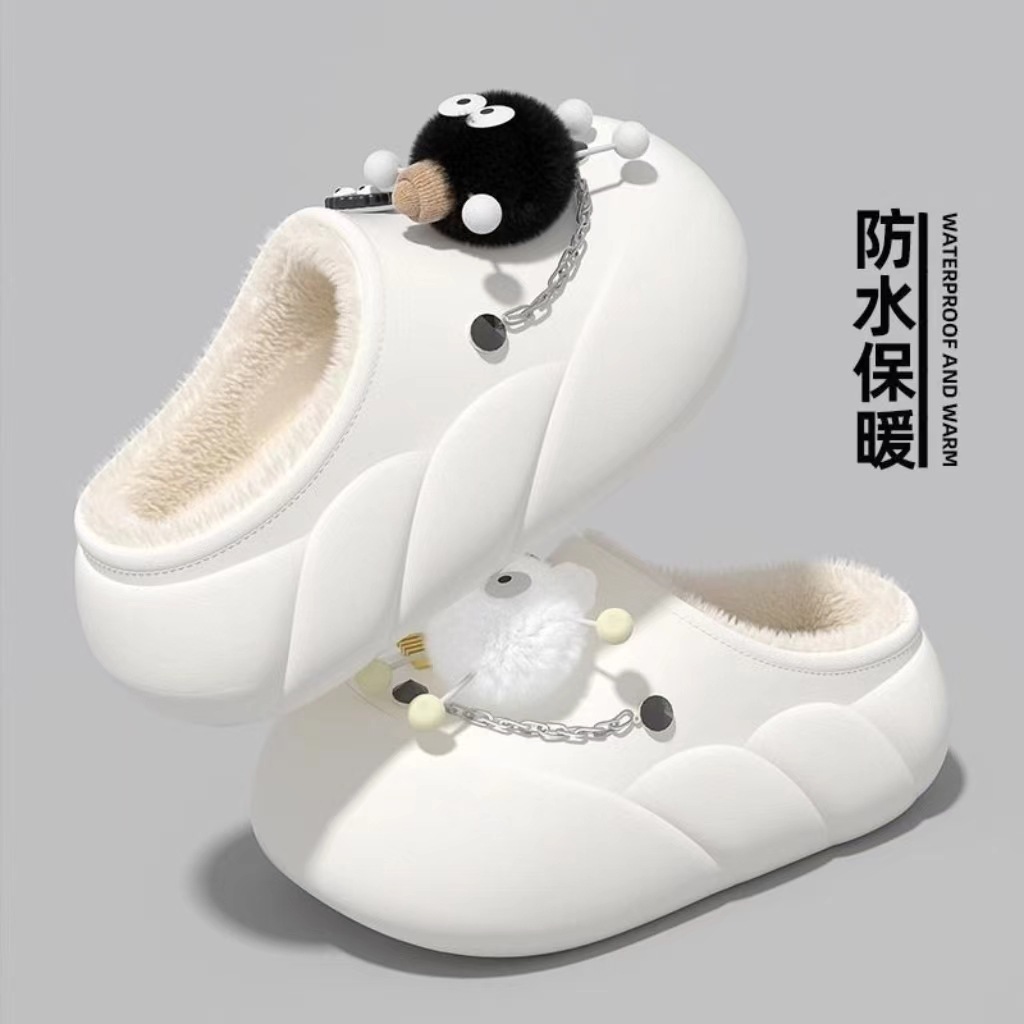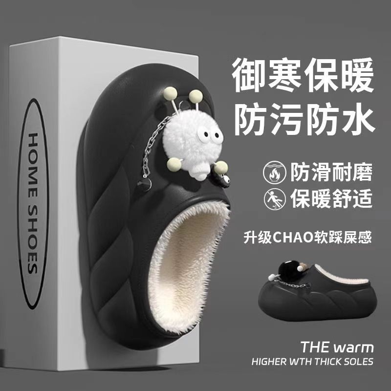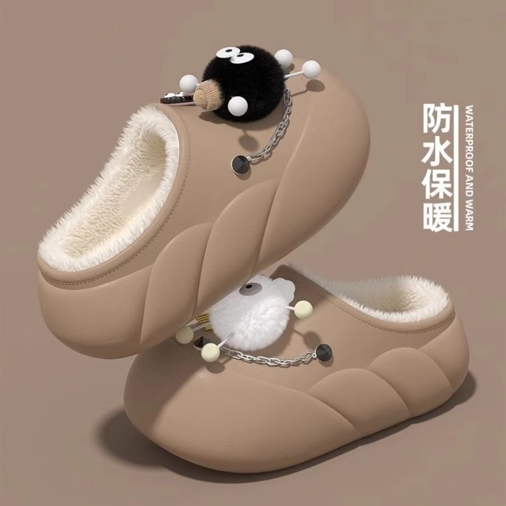Мультяшные водонепроницаемые хлопчатобумажные тапочки с толстой подошной женской зимой