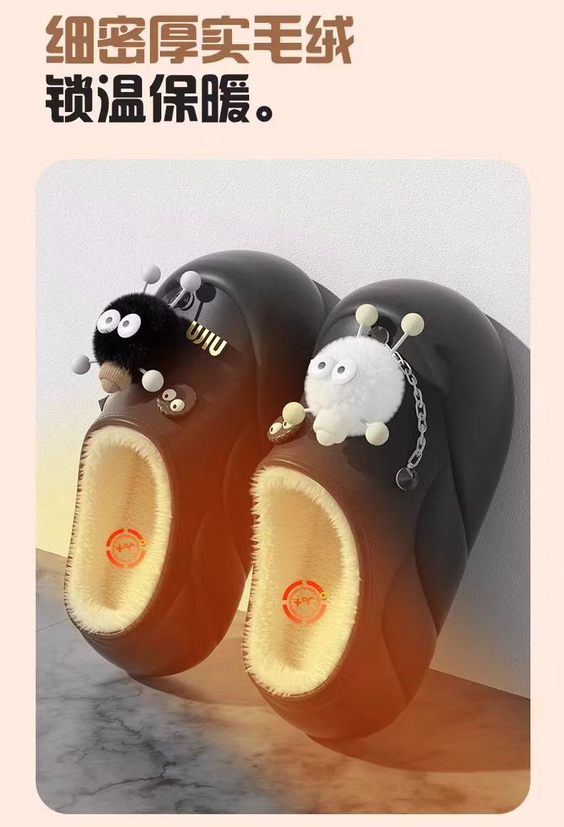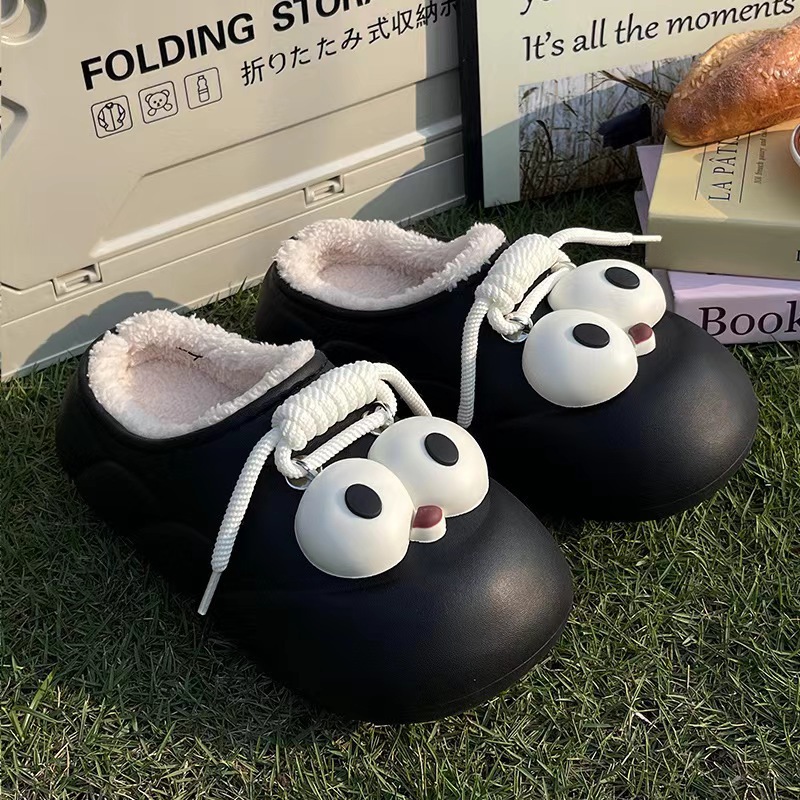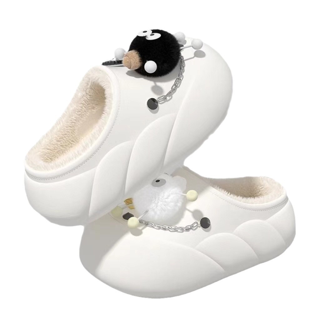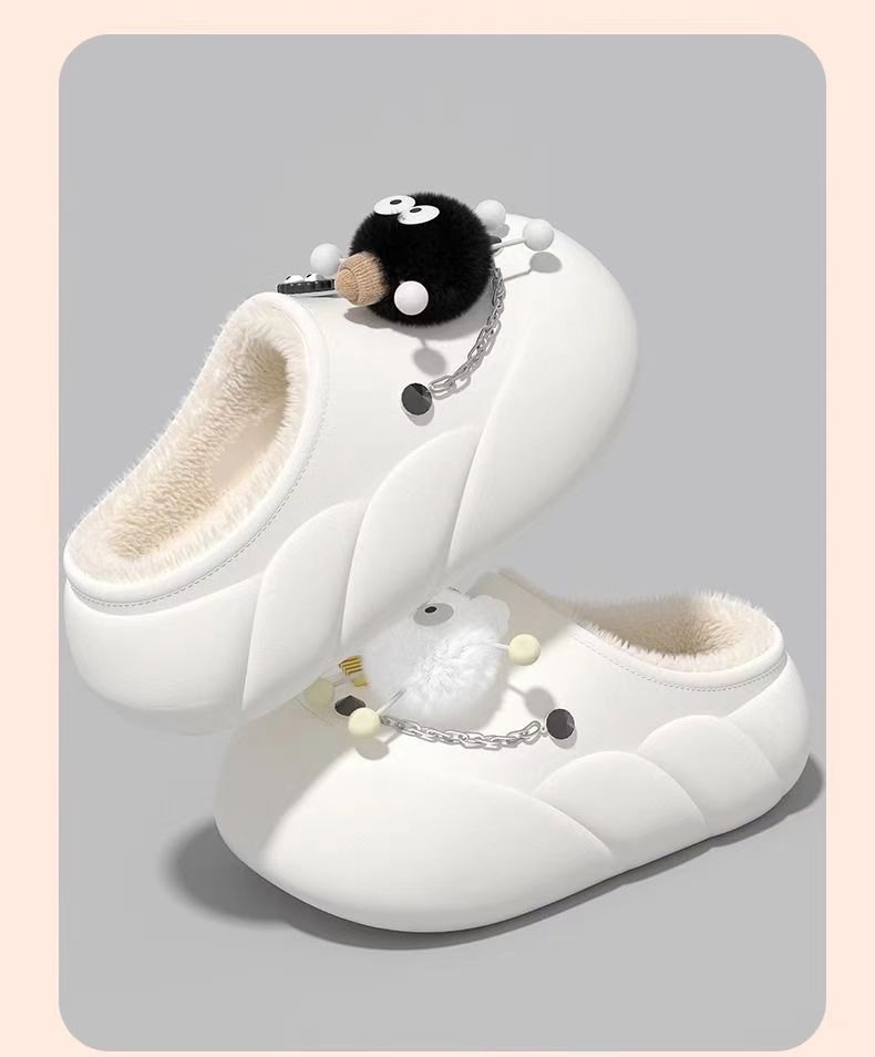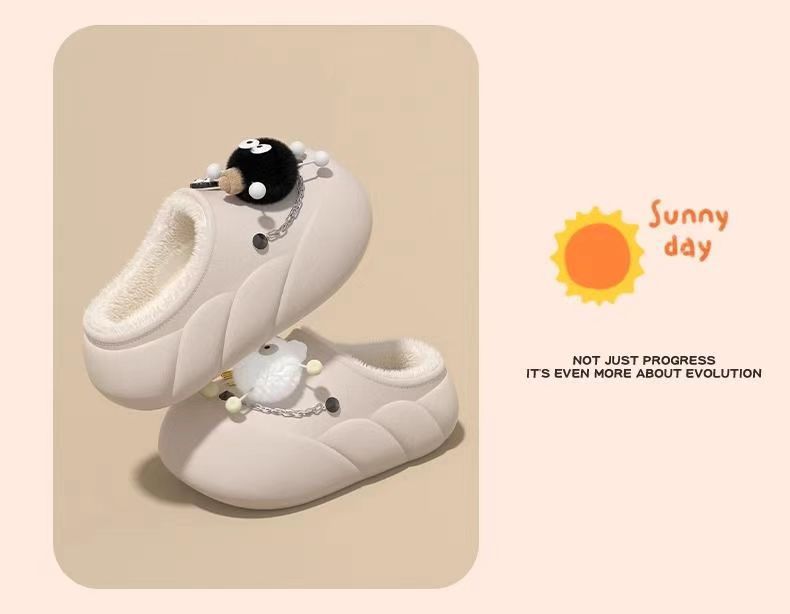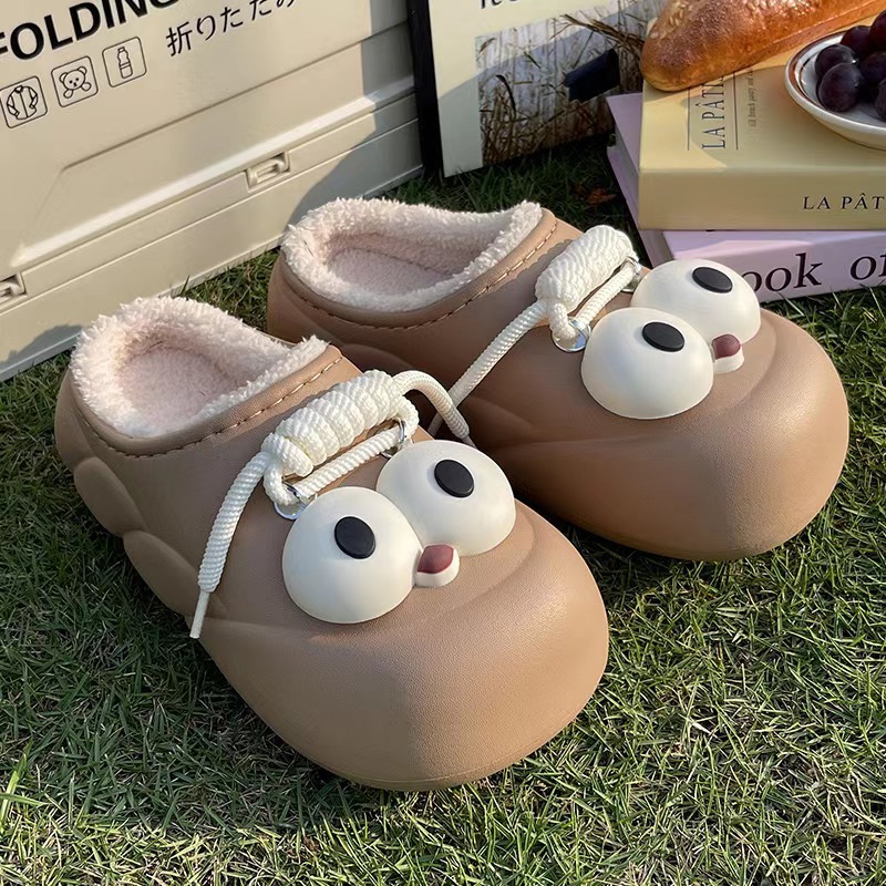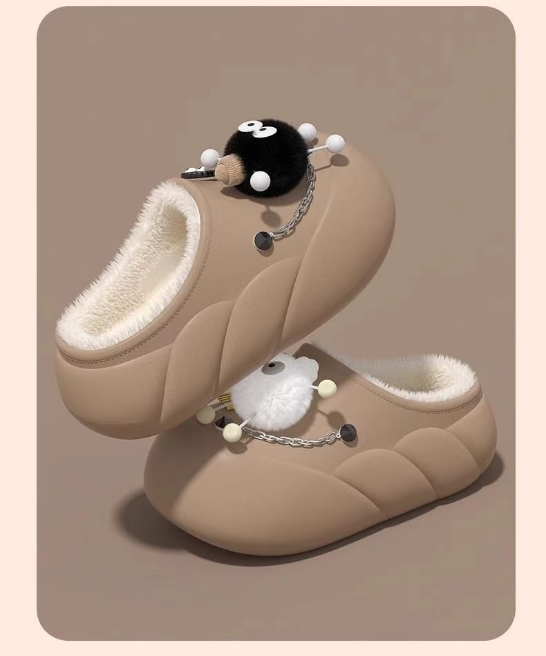 Мультяшные водонепроницаемые хлопчатобумажные тапочки с толстой подошной женской зимой