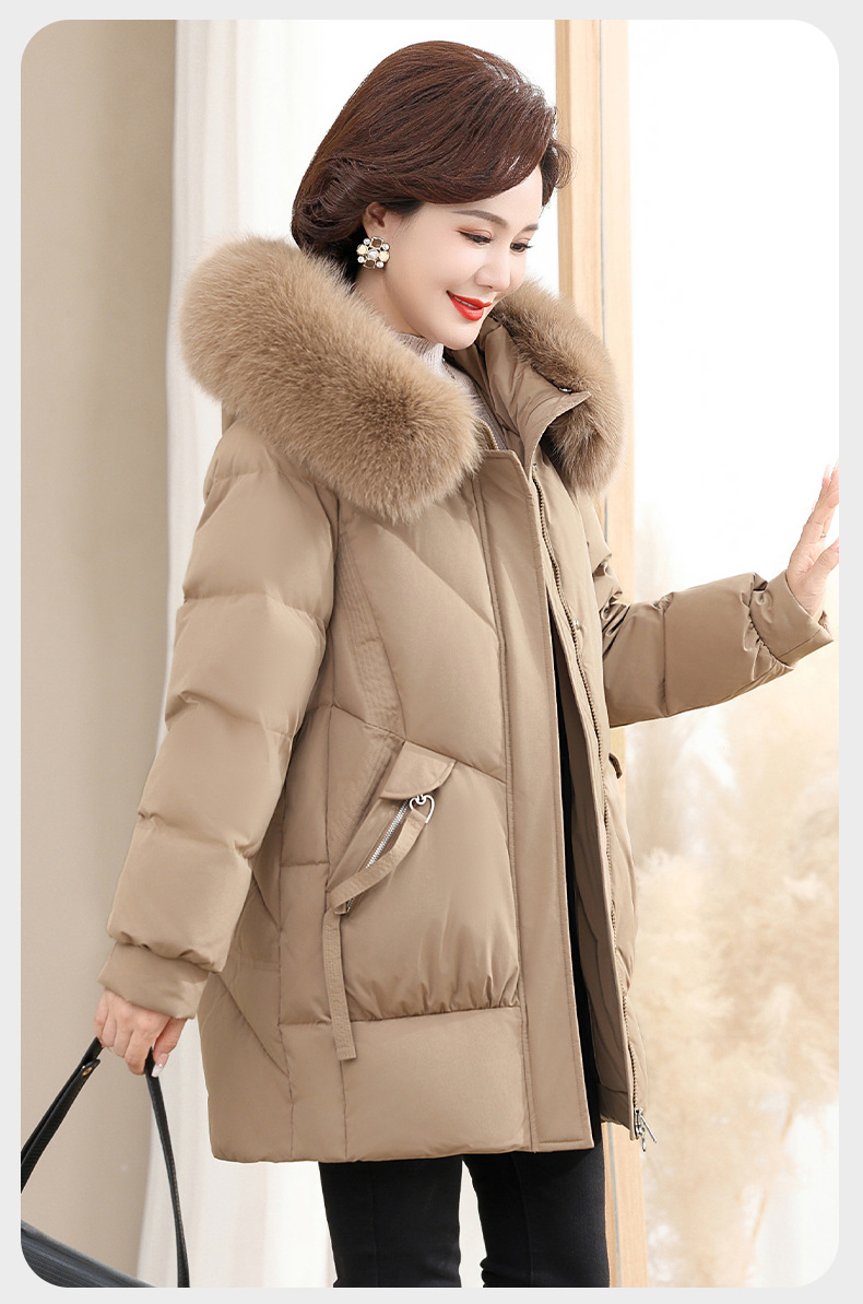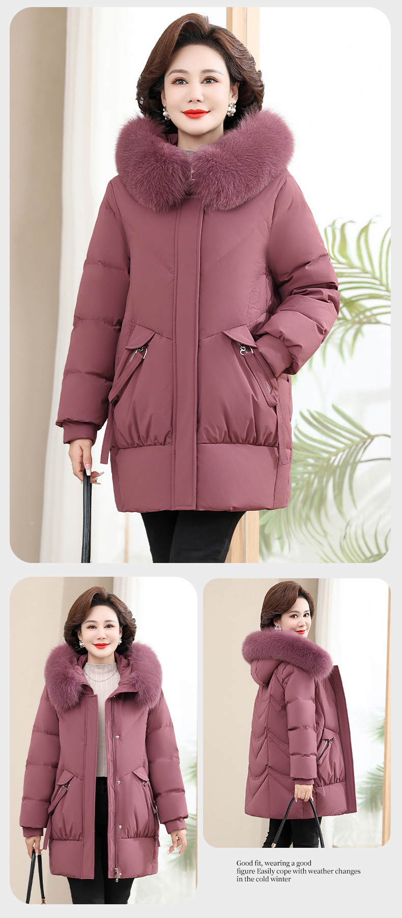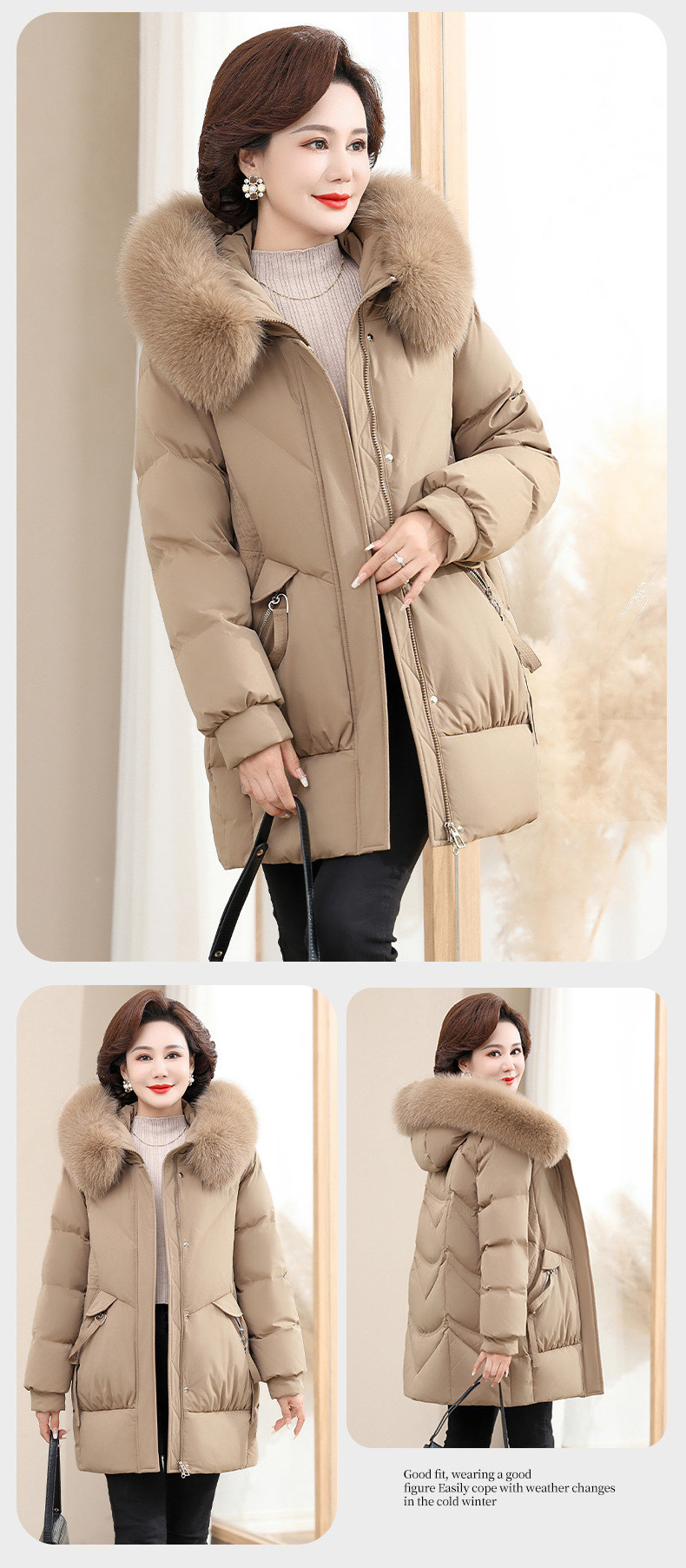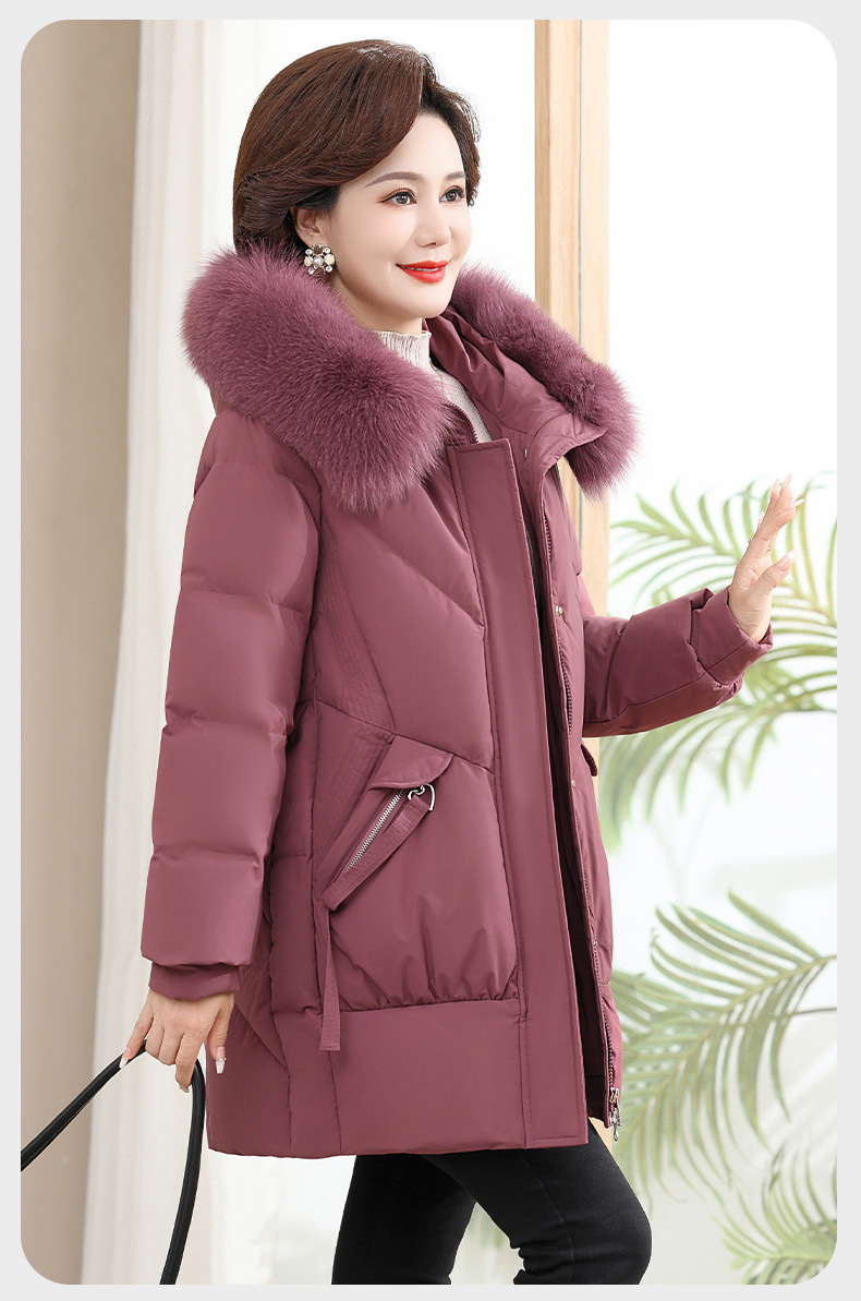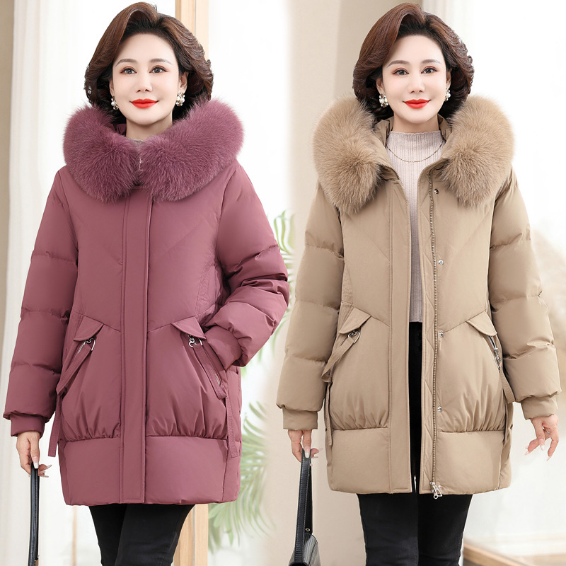Мама зимний пуховик средняя длинная 2024 новая иностранная женщина среднего возраста элегантный средний и пожилой теплый пиджак