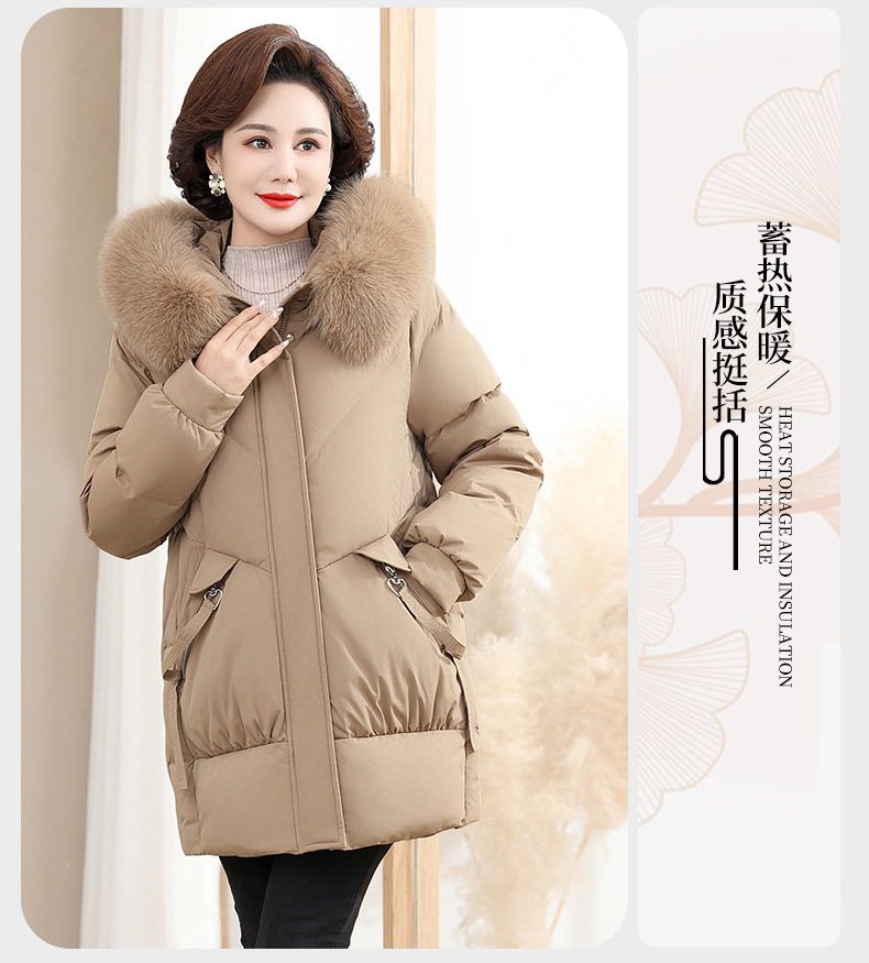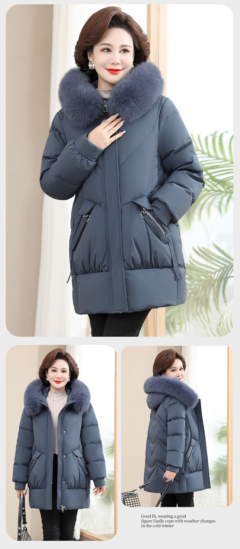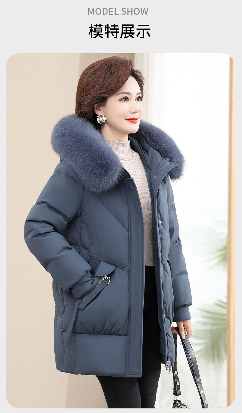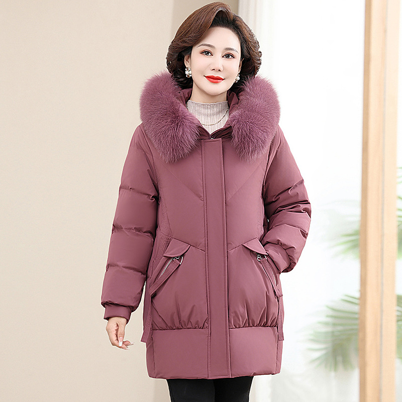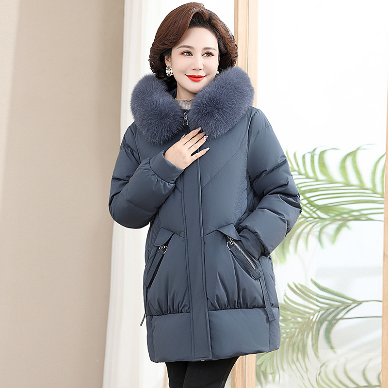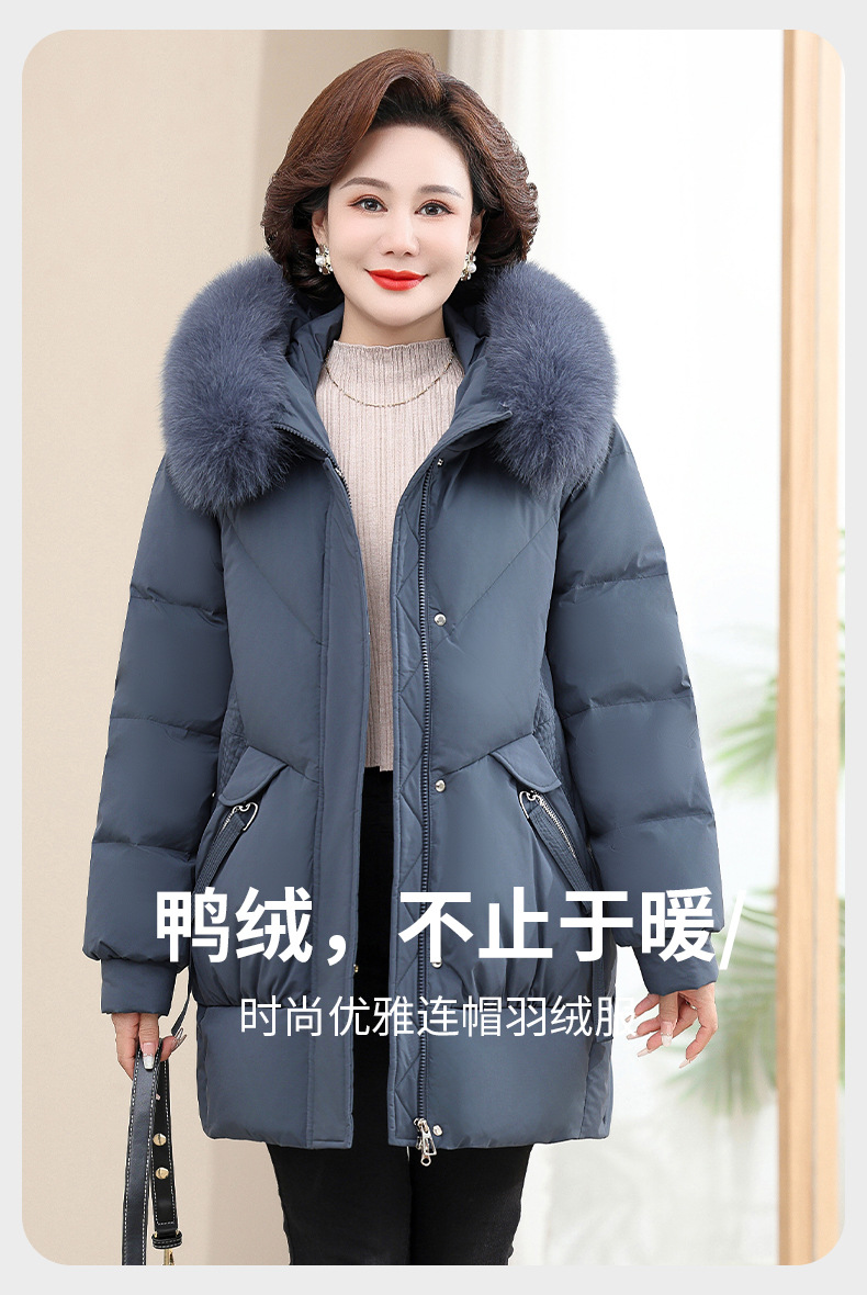 Мама зимний пуховик средняя длинная 2024 новая иностранная женщина среднего возраста элегантный средний и пожилой теплый пиджак