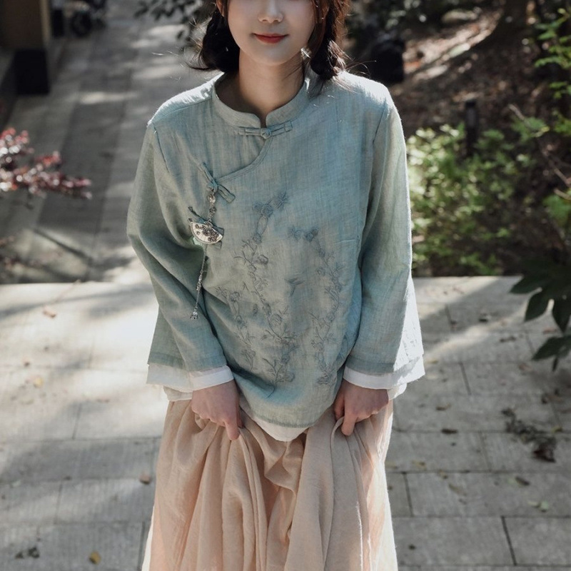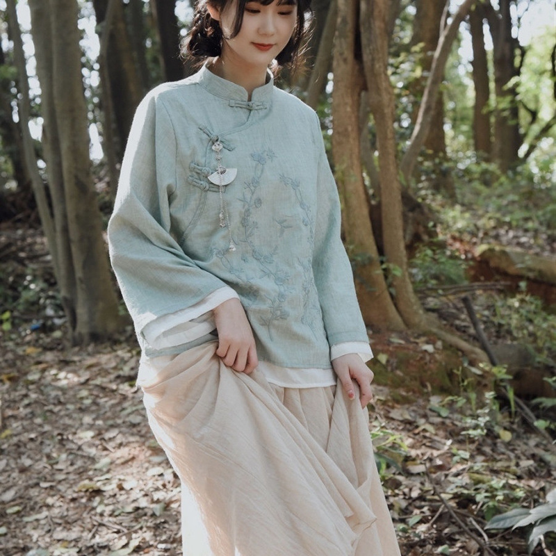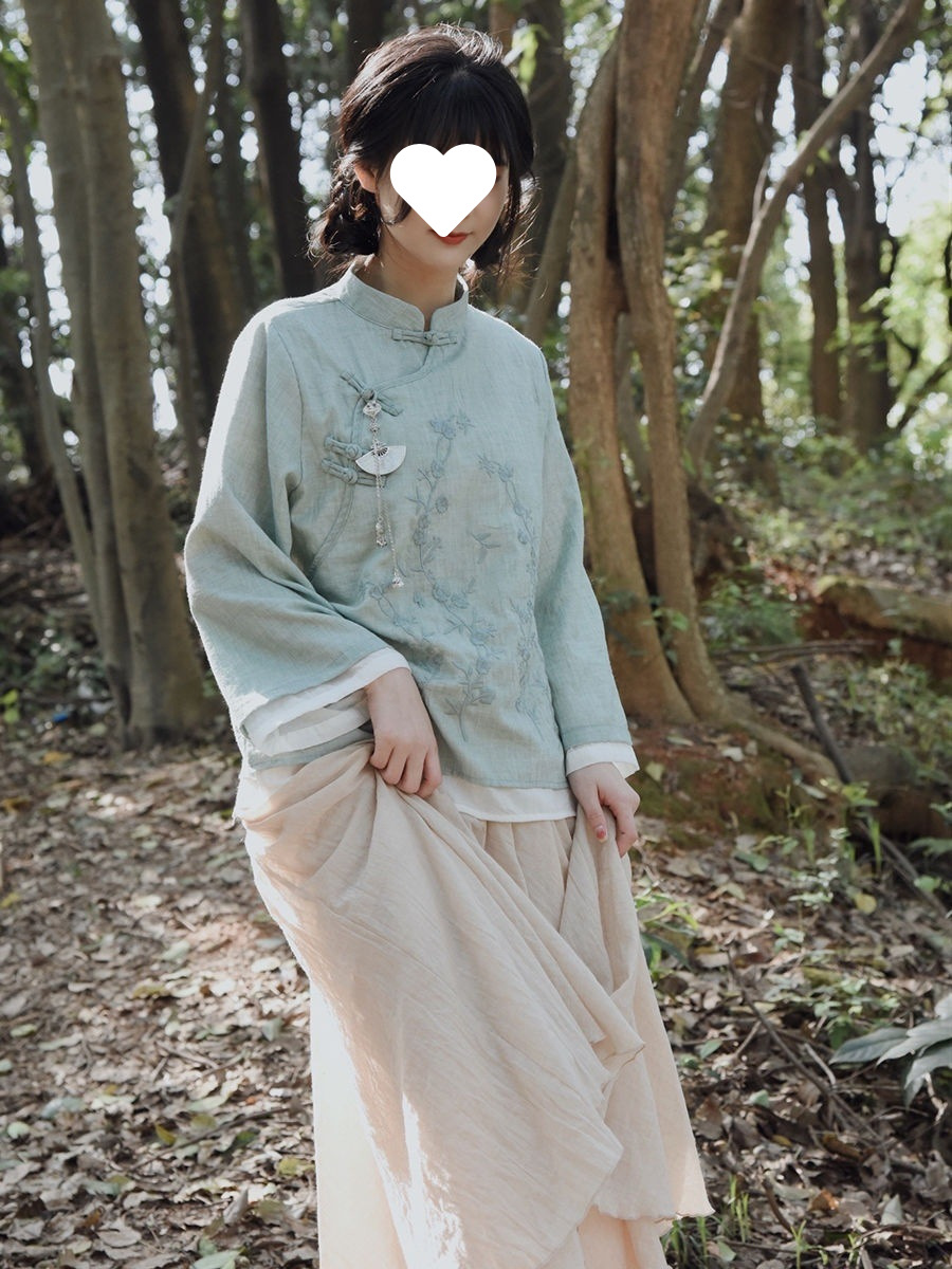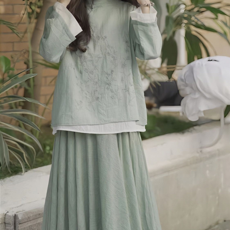 Новая рубашка в китайском стиле чайного искусства (в комплект входят булавки); белая юбка; коричневая юбка; светло-зеленая юбка; Новая рубашка в китайском стиле чайного искусства + коричневая юбка; Новая рубашка в китайском стиле чайного искусства + белая юбка; Новая рубашка в китайском стиле чайного искусства + светло-зеленая юбка