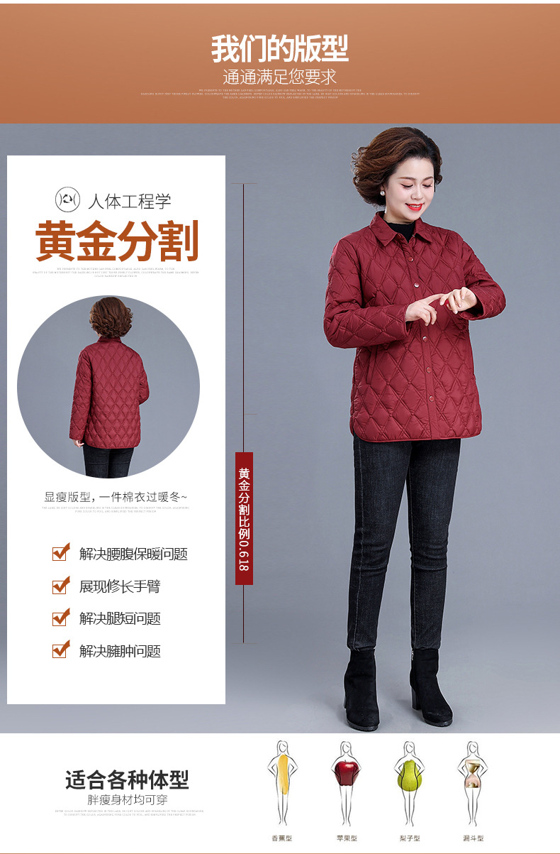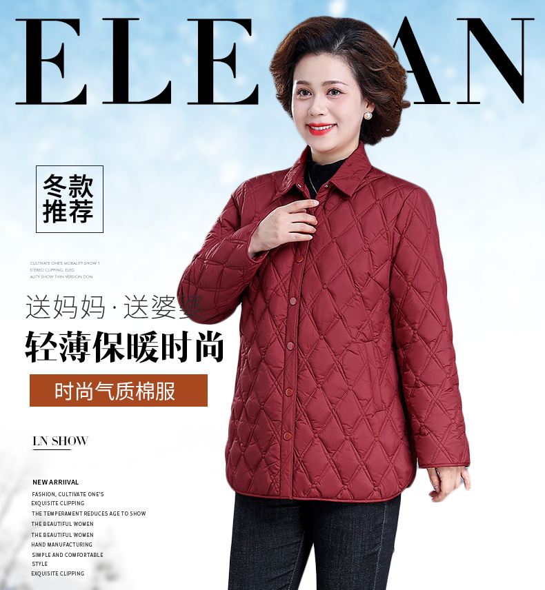 Мама легкая пуховая хлопчатобумажная одежда осень зима 2024 новый средний и пожилой хлопчатобумажная куртка женский зимний средний возраст хлопчатобумажная куртка