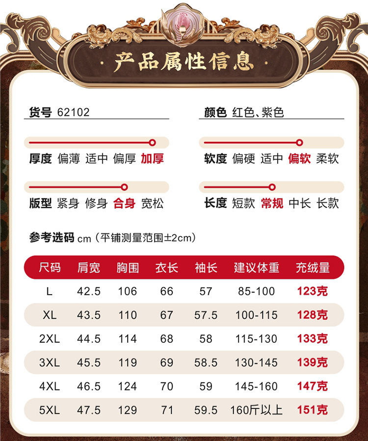 L рекомендуется 85-12, объем наполнения вниз 123 г.; XL рекомендуется 100-12, емкость пухового наполнения 128 г.; 2XL рекомендуется 115-12, емкость пухового наполнения 133 г.; Рекомендуется 3XL 130-1 72.5kg пуховое наполнение 139 г; 4XL рекомендуется 145-1 80kg пуховое наполнение 147 г; Рекомендуется 5XL 80kg и выше, пуховая емкость заливки 151 г.