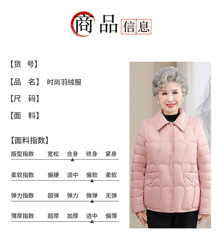 Люди среднего и пожилого возраста тонкий пуховик женский новый стиль бабушкины пальто старушки хлопчатобумажная куртка мама осенняя и зимняя хлопчатобумажная одежда