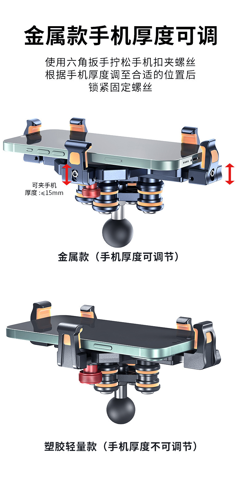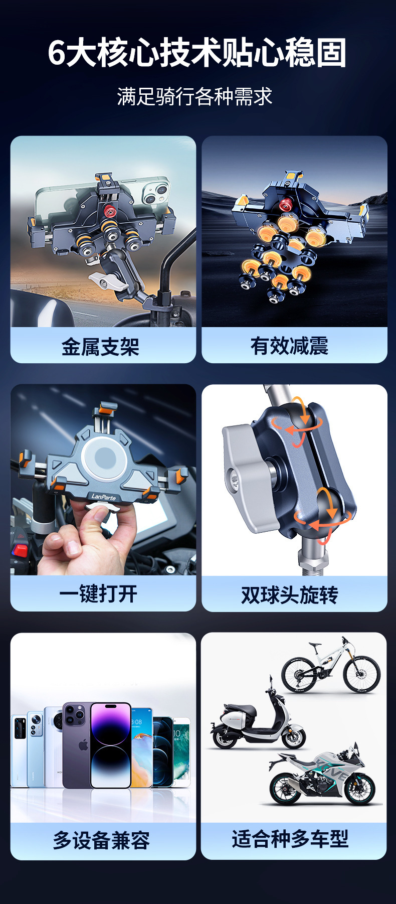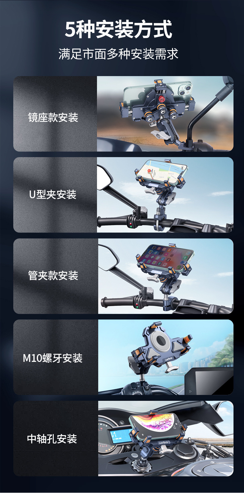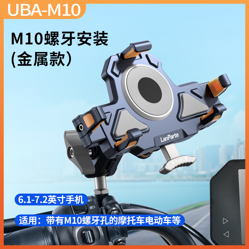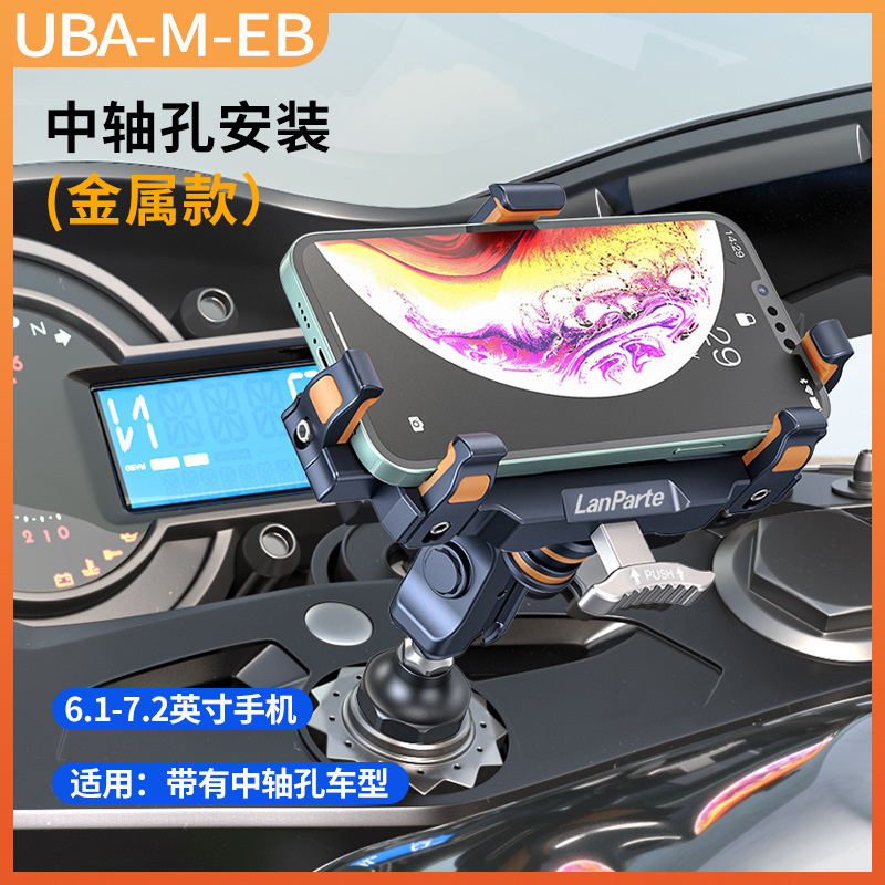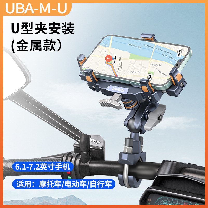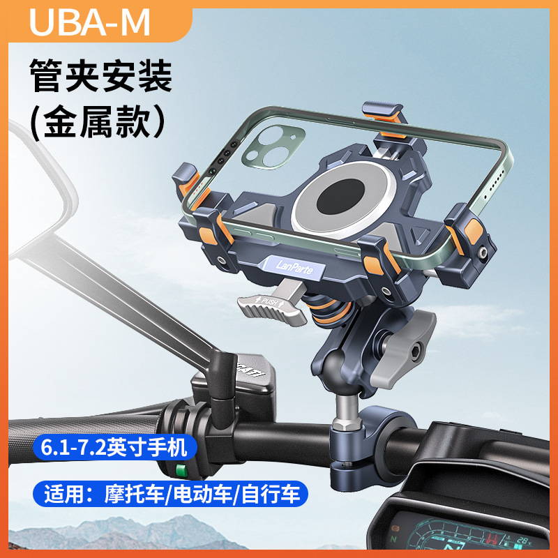 Металлическая модель UBA-M (без зарядки, модель с хомутом для труб); Металлическая модель UBA-M10 (установка с резьбовым отверстием M10, без зарядки); Мотоциклетный держатель мобильного телефона (тип расширительного болта); Металлическая модель UBA-M-U (U-образная клипса, без зарядки); Мотоциклетный держатель для мобильного телефона, легкая версия (версия с зажимом для труб); Мотоциклетный держатель для мобильного телефона, легкая версия (модель с держателем зеркала); Мотоциклетный держатель для мобильного телефона, легкая версия (винтового типа M10); Легкая версия держателя мобильного телефона для мотоцикла (версия с расширительным болтом); Мотоциклетный держатель для мобильного телефона, легкая версия (U-образная версия с зажимом); Металлическая модель UBA-M-Z (без зарядки, модель с креплением на зеркало заднего вида)