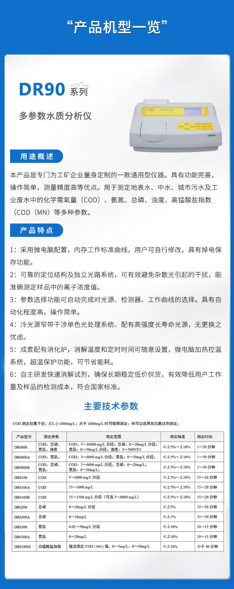 Химический кислород, необходимый в молярной воде, средней воде, городских сточных и промышленных сточных водах, амиачном азоте, общим фосфоре, мутности, высоком показателе марганцевой кислоты и т. д.