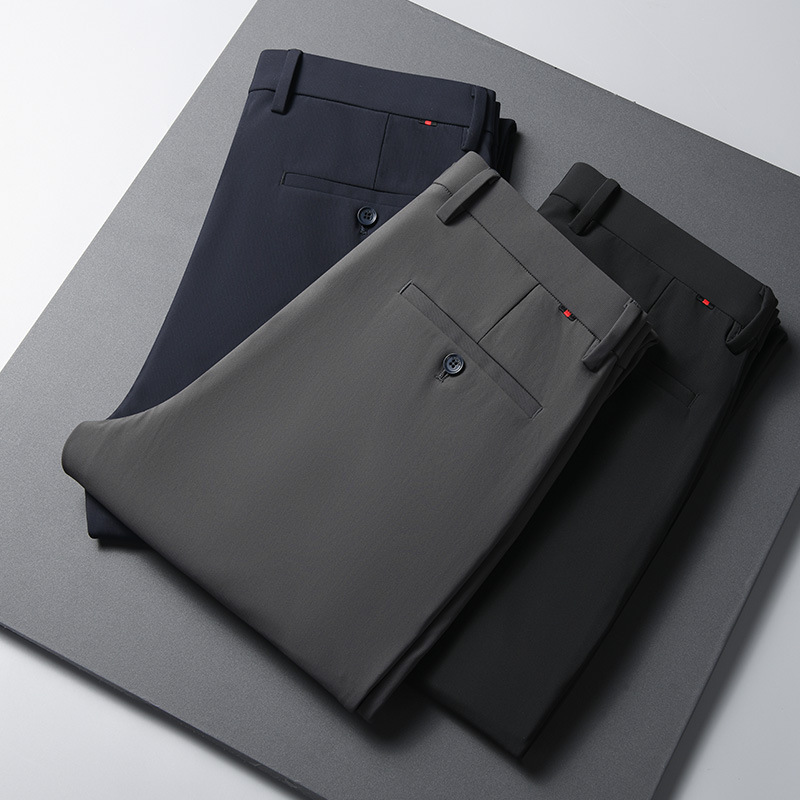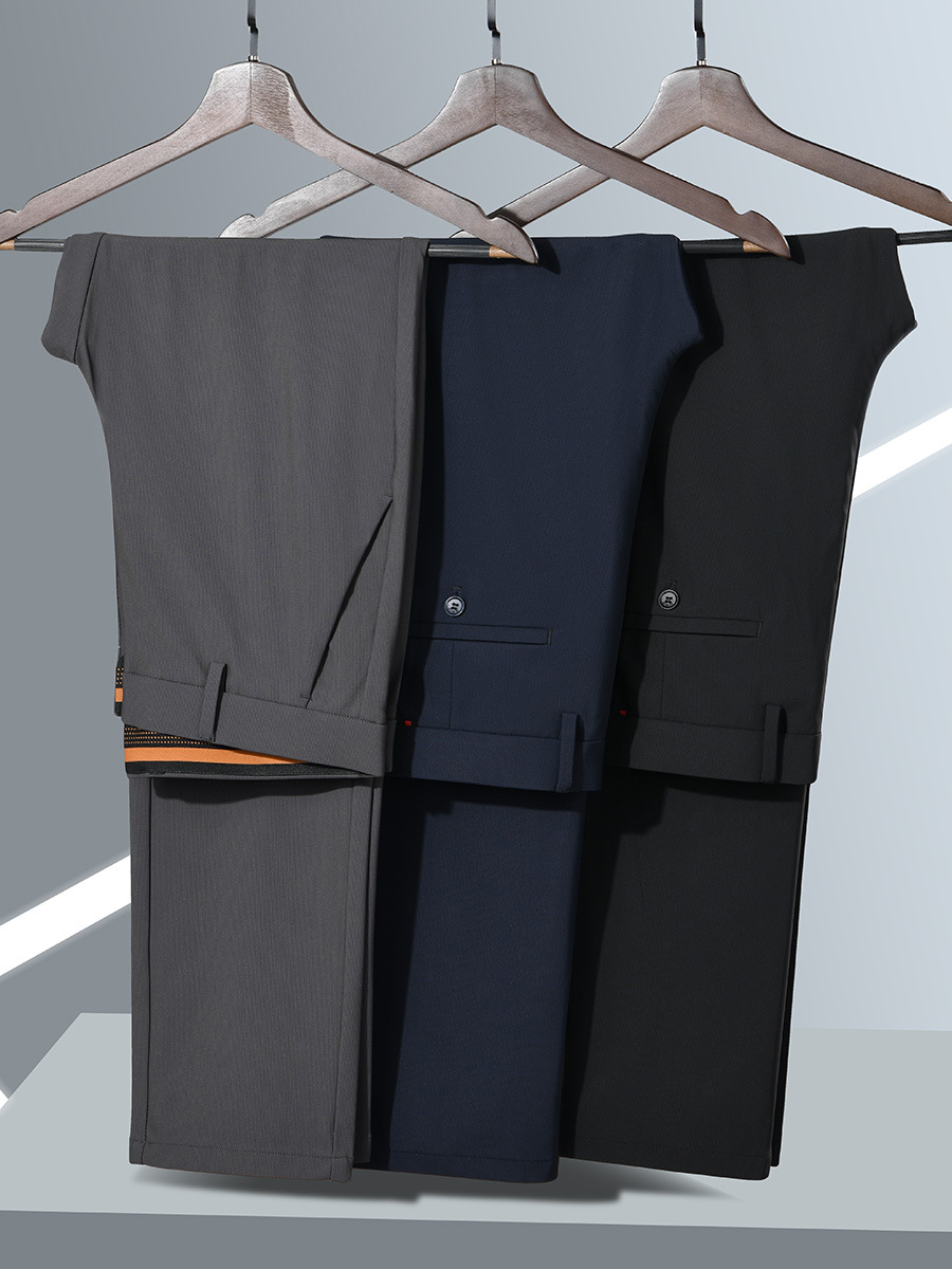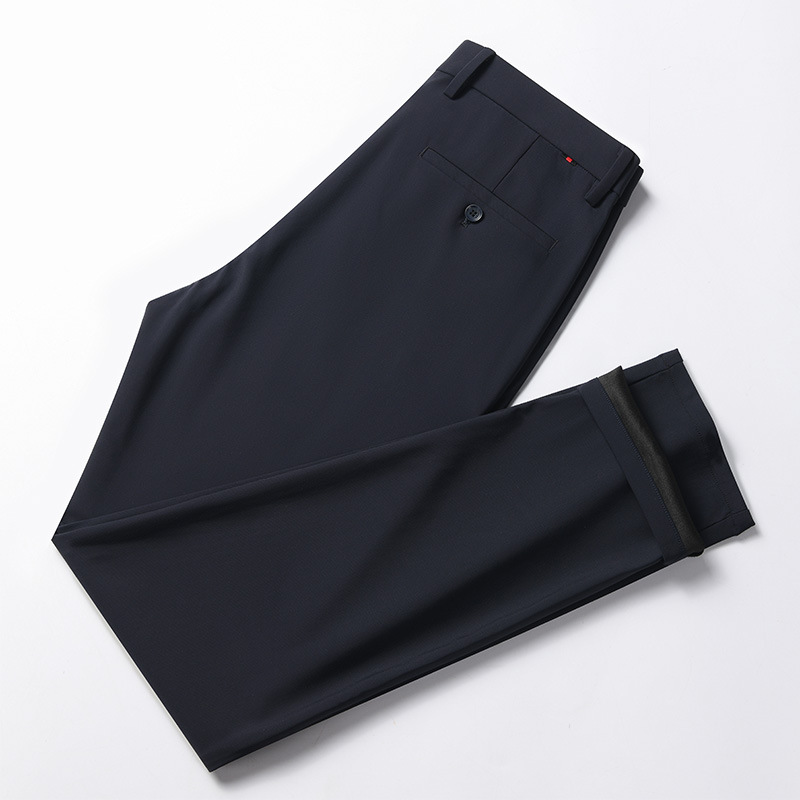 25 новых осенне-зимних мужских эластичных деловых официальных прямых повседневных брюк, утепленные брюки, мужские длинные брюки против морщин