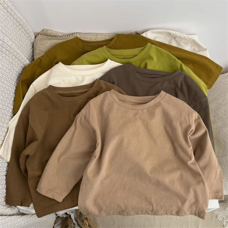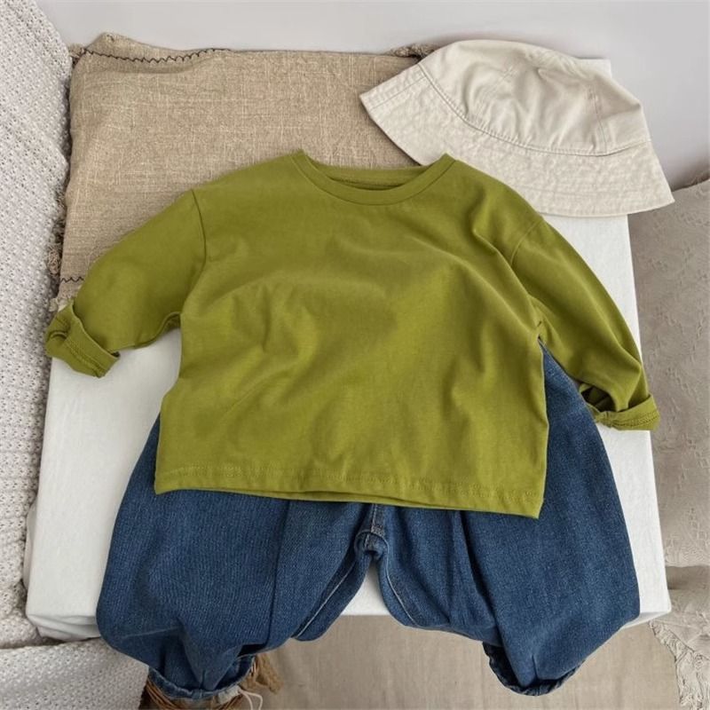 Футболка для мальчиков с длинными рукавами мягкая ~ Корейская версия детской T мужской и женский ребенок дикие цветные нижние рубашки весна и осень