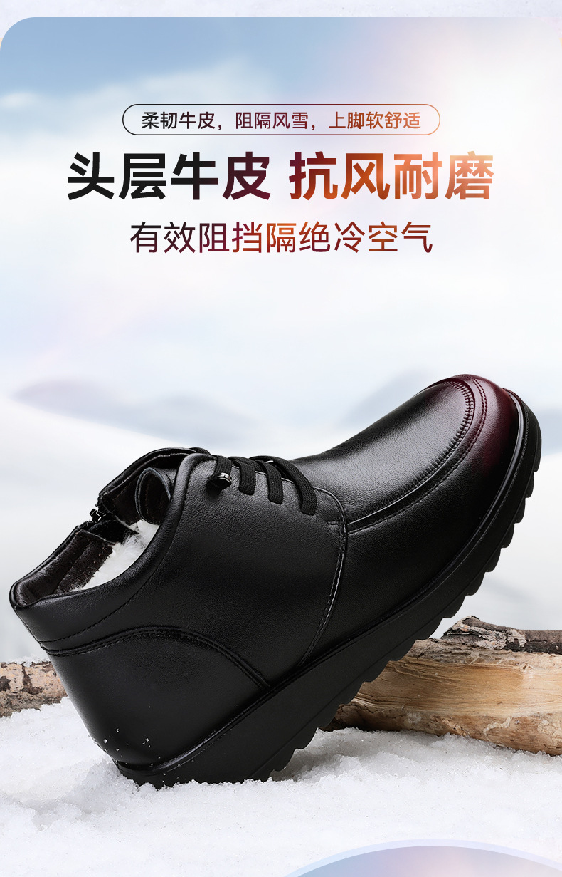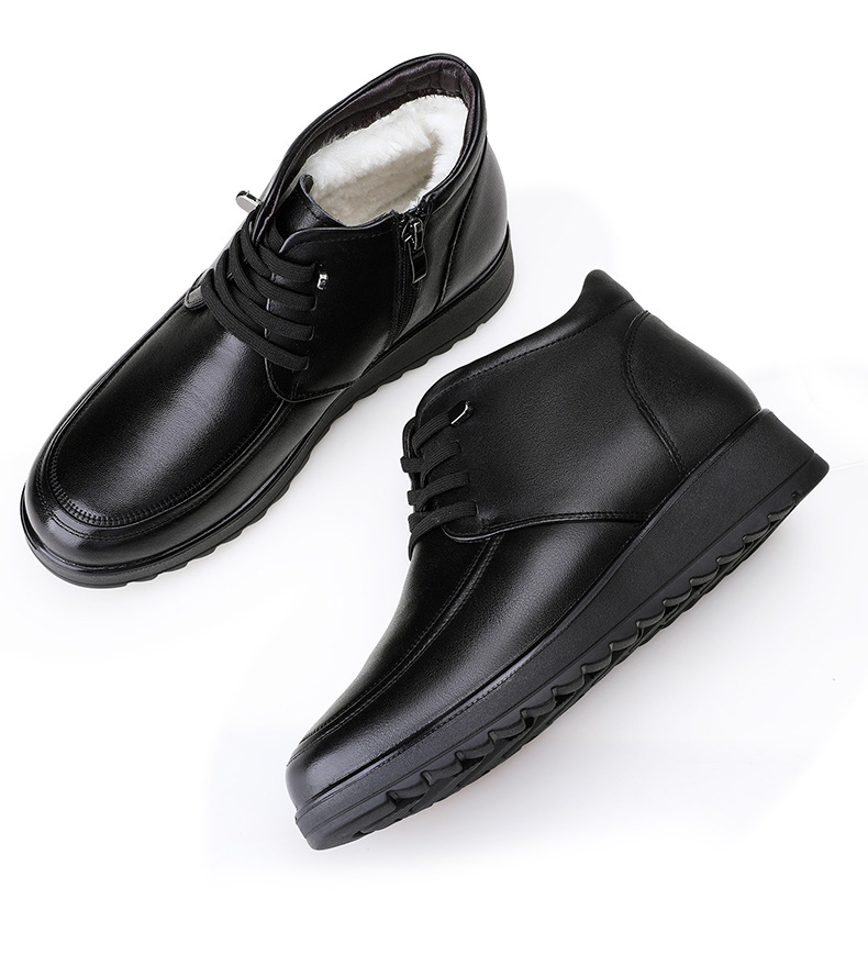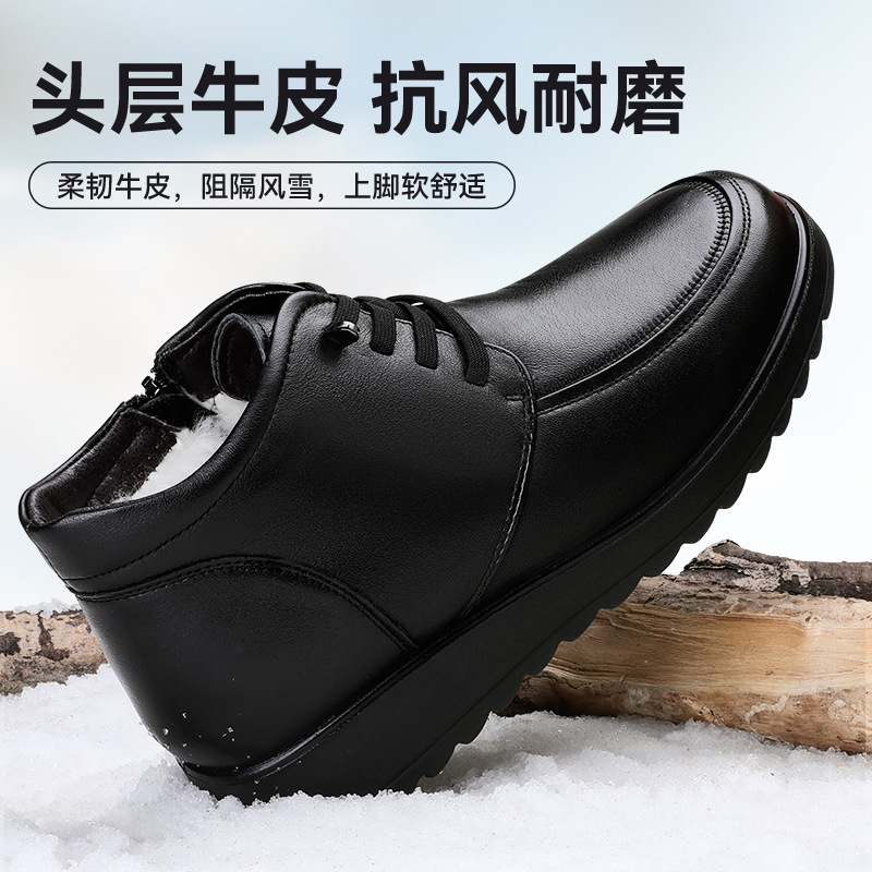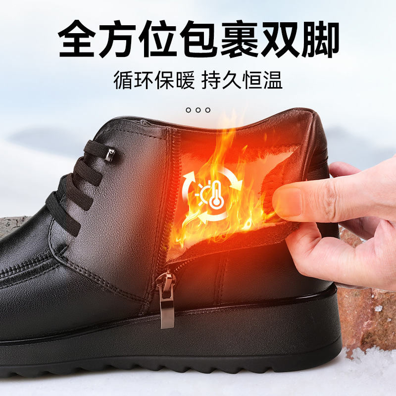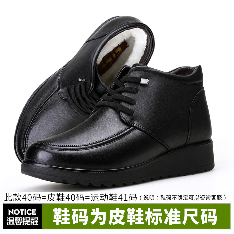 3515 сильный человек из натуральной кожи с мягкой подошвкой мама сапоги хлопчатобумажные туфли плюс флисовые нескользящие сапоги среднего возраста кожаные туфли зимой теплые шерстяные сапоги
