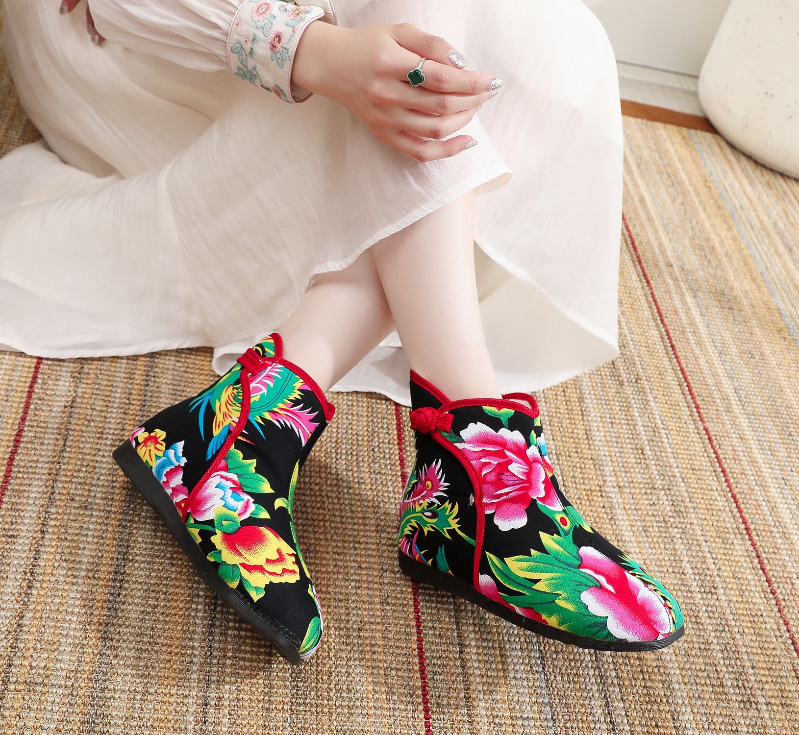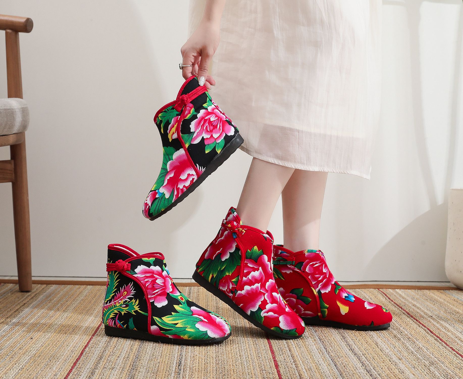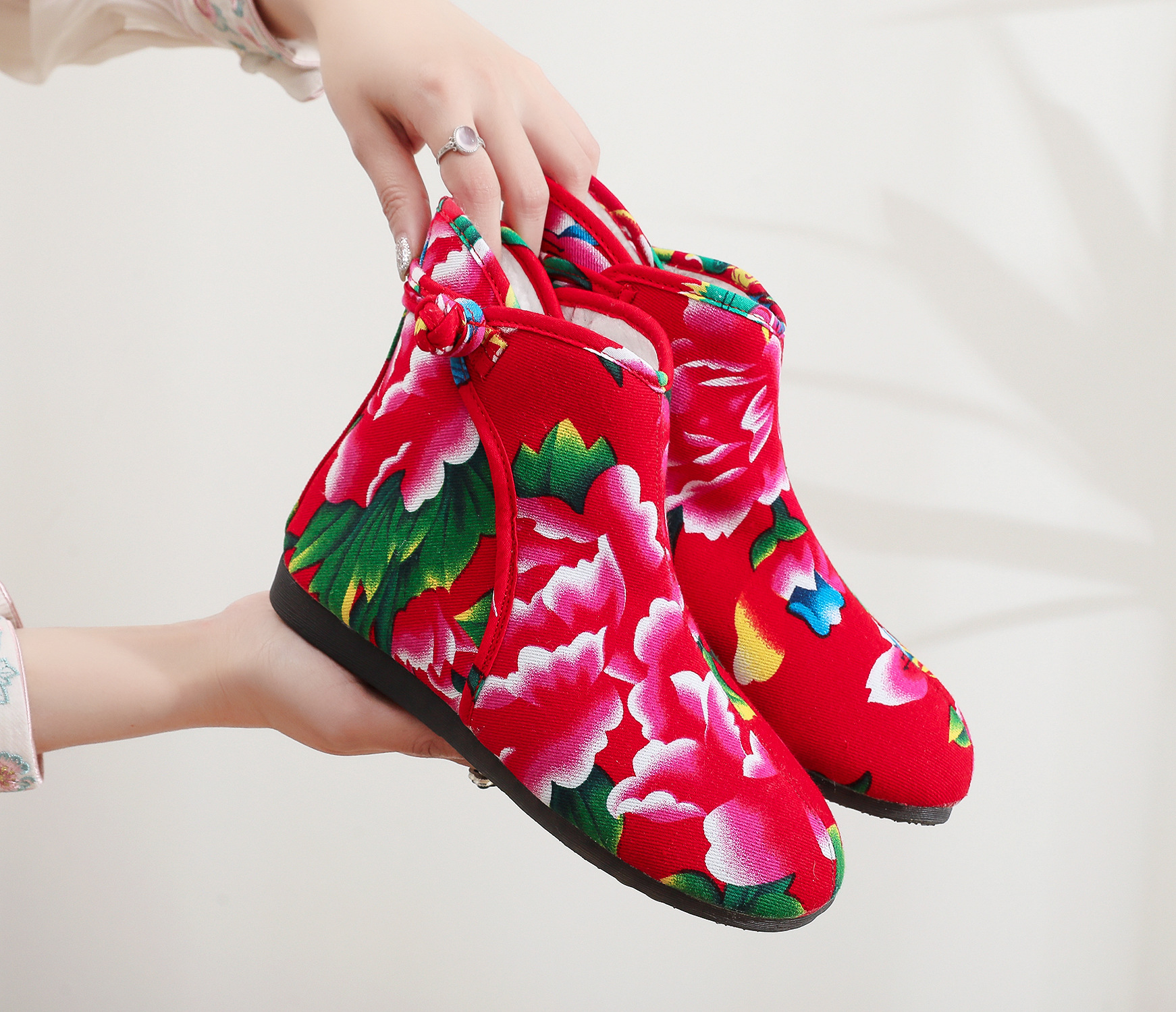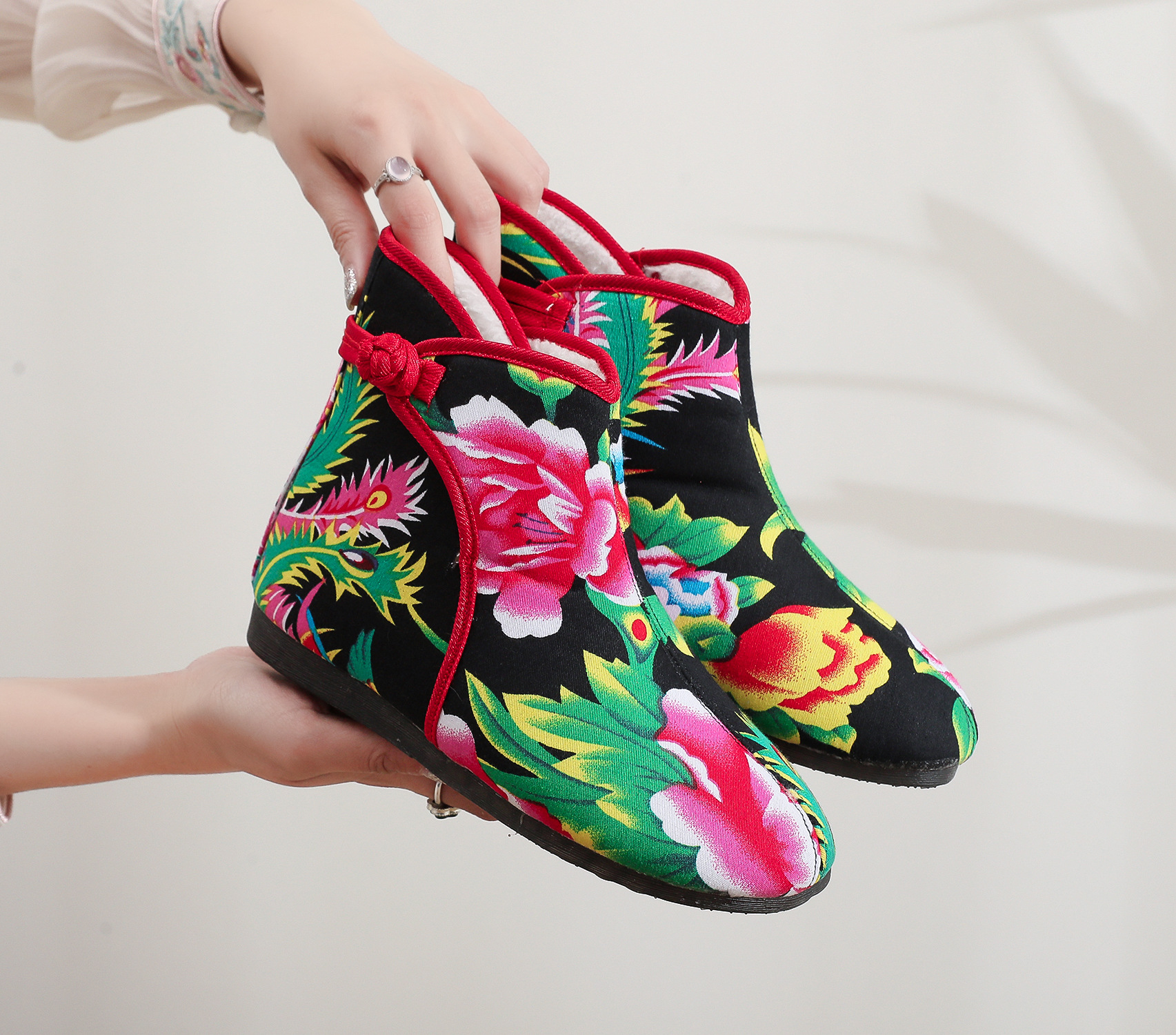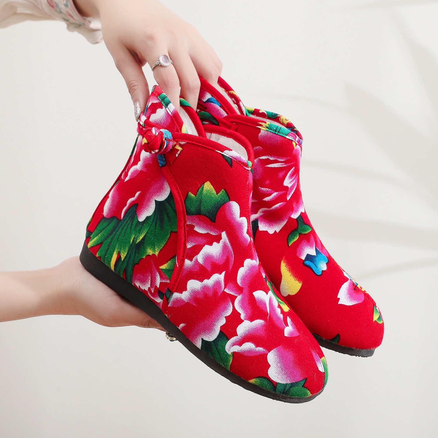 Старая пекинская хлопчатобумажная обувь осенью и зимой плюс бархатная толстая цветочная обувь теплая обувь