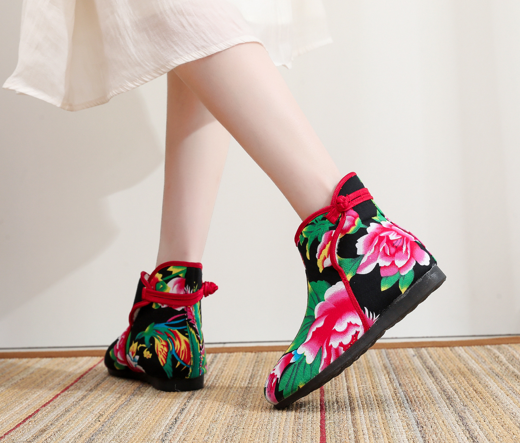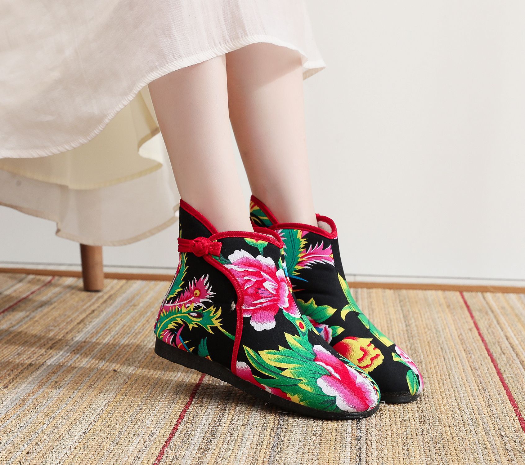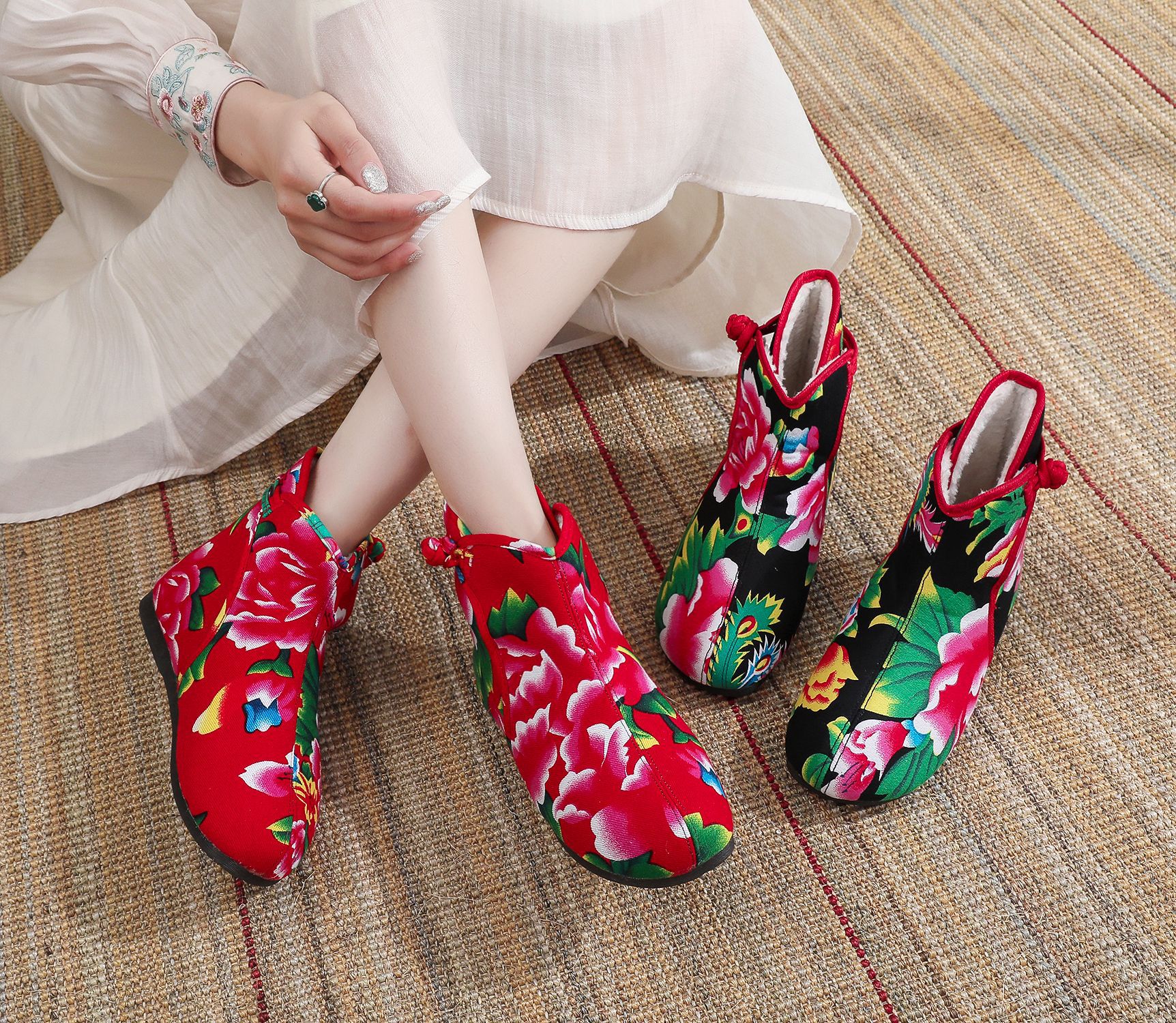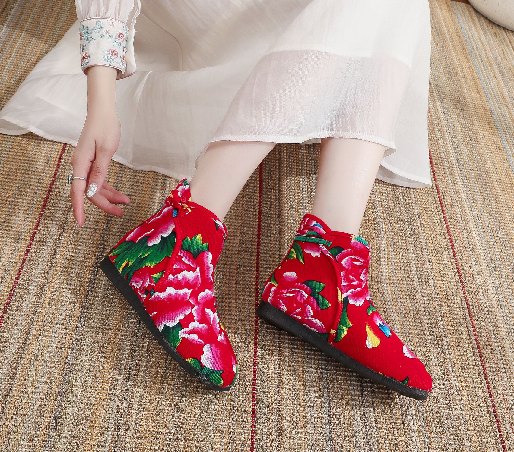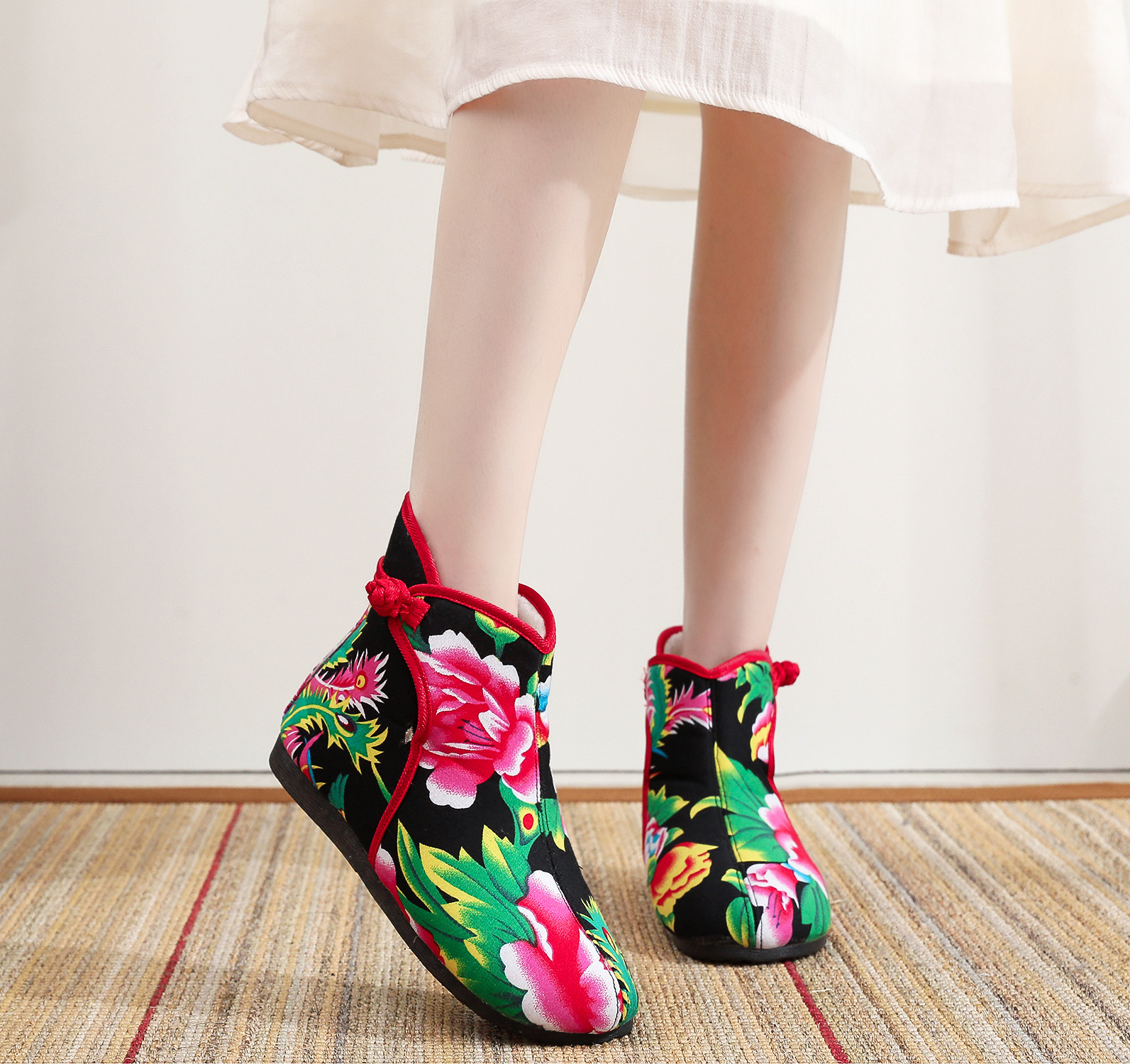 Старая пекинская хлопчатобумажная обувь осенью и зимой плюс бархатная толстая цветочная обувь теплая обувь