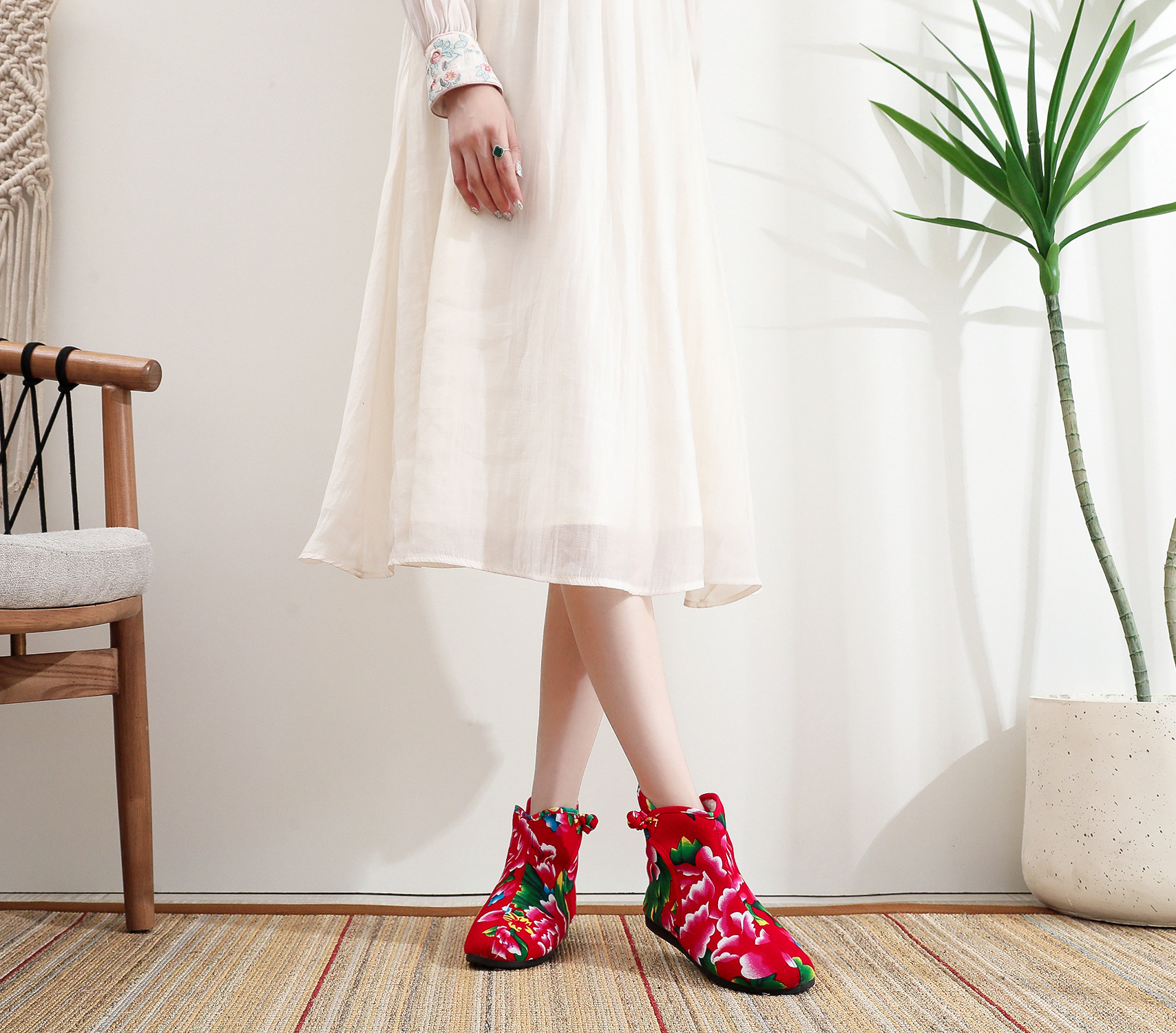 Бавовняная обувь с парой цветков