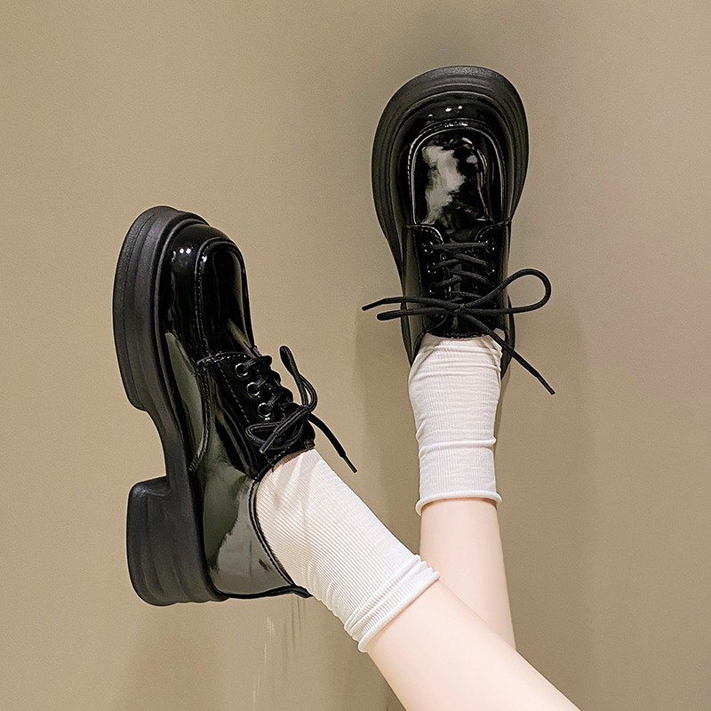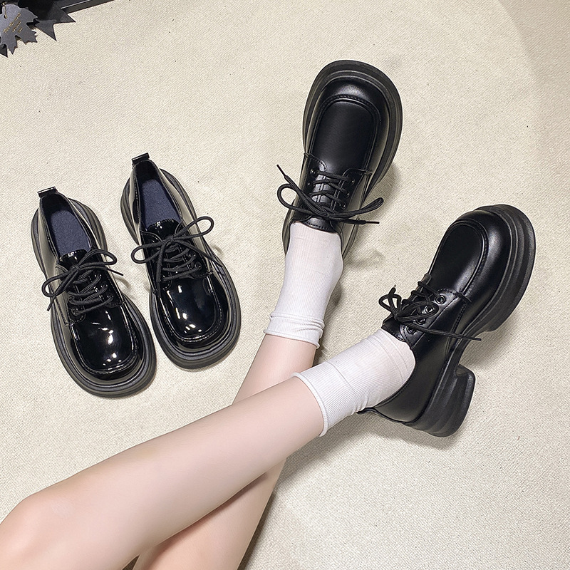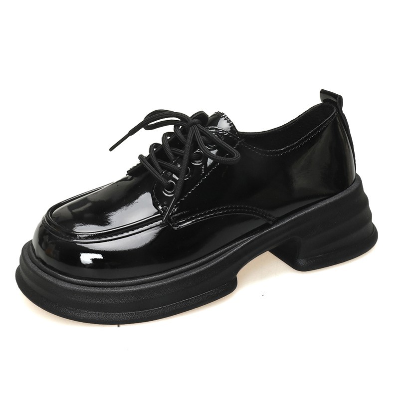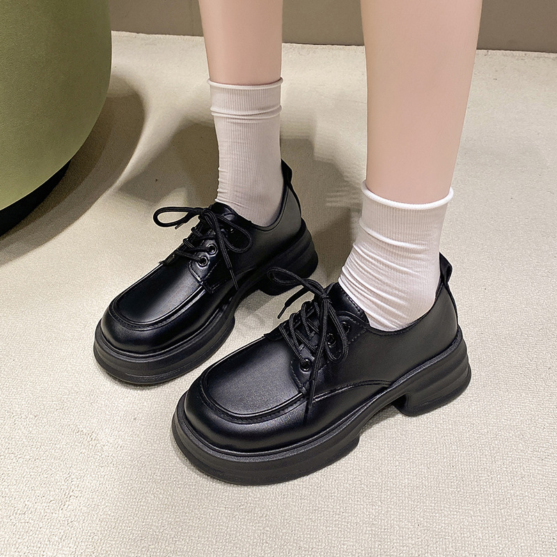Женская обувь Одиночная обувь 2024 новый весенний студент дикий толстый фон черные кожаные туфли в британском стиле