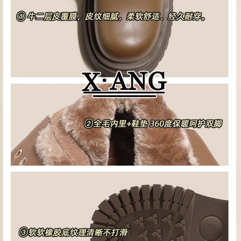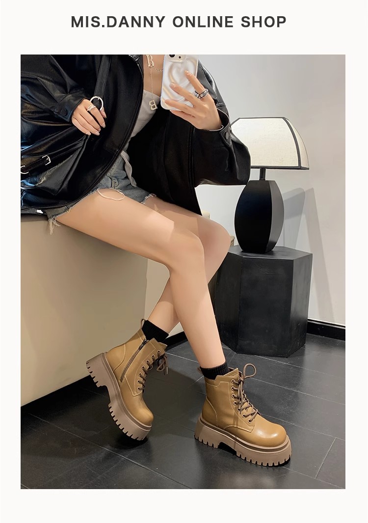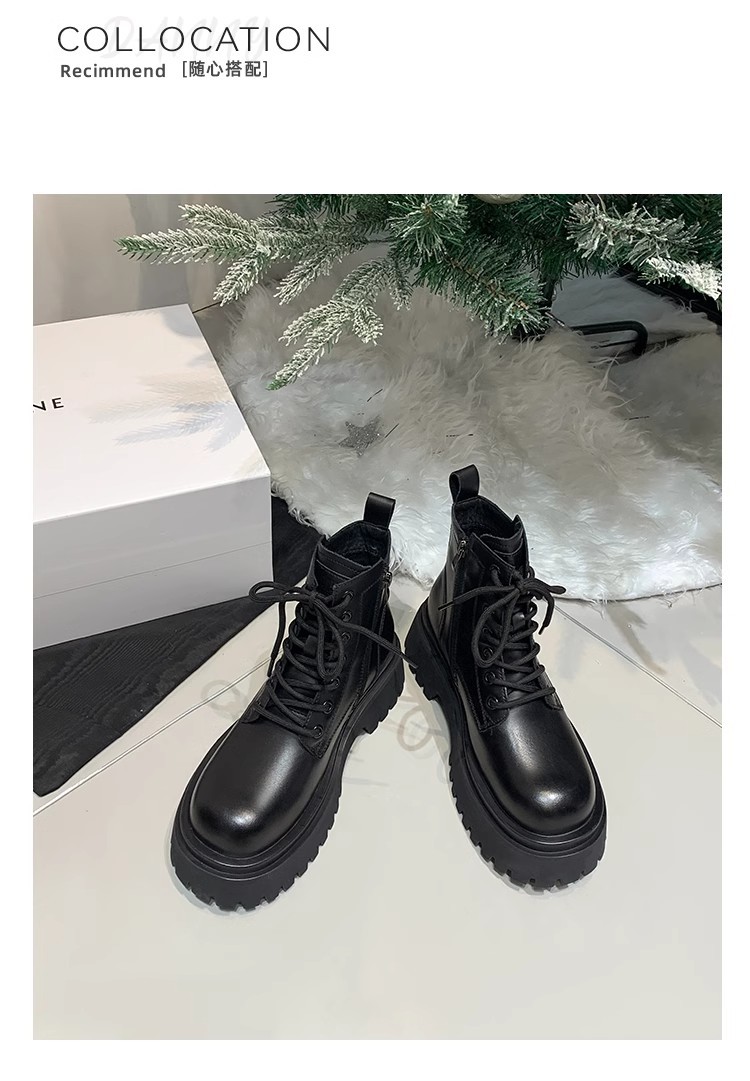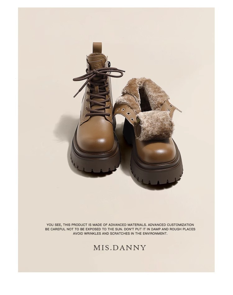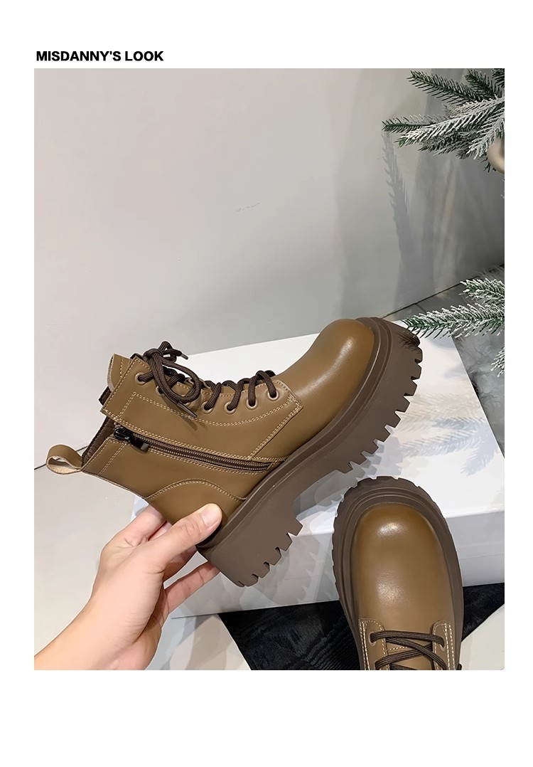 Женские утепленные зимние сапоги на флисовой подкладке, теплые хлопковые ботинки большого размера, новинка осени-зимы 2025 года, короткие ботинки Мартин из натуральной кожи на толстой подошве для увеличения роста.