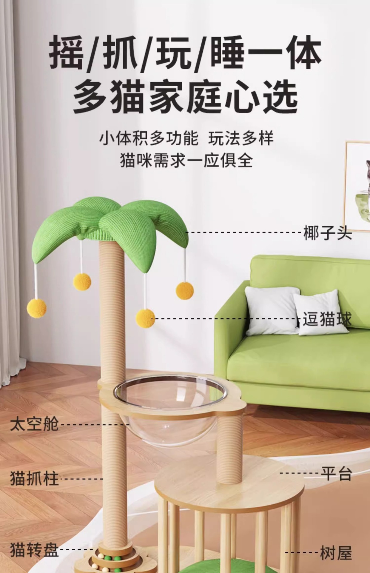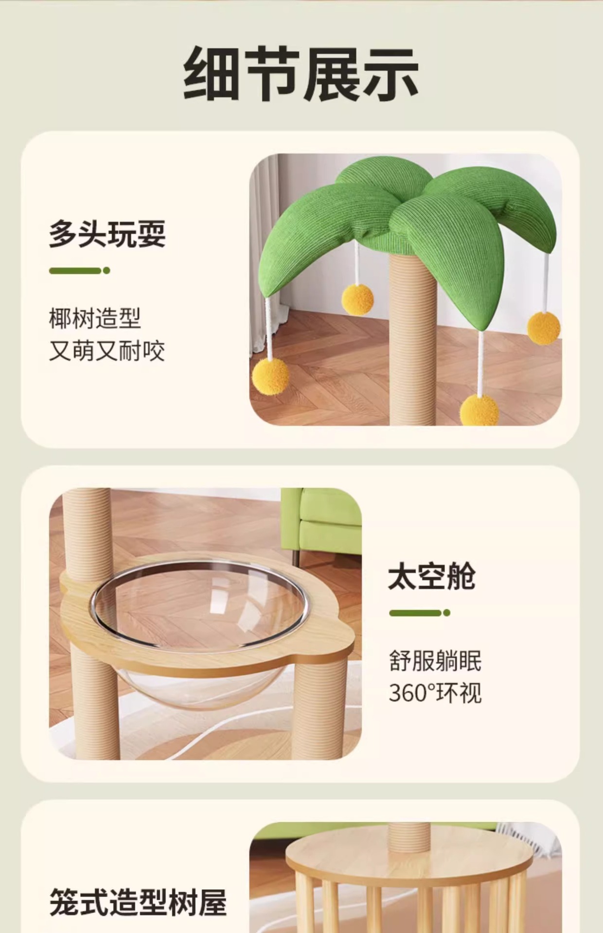 [Роскошная капсула с проигрывателем] Рамка для скалолазания с кошачьим домом на дереве; [Модернизированная космическая капсула] Рамка для восхождения кошек на дереве; [Кокосовый рай] Дом на лесной елке, рама для скалолазания кошек