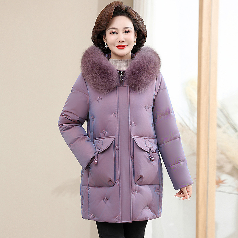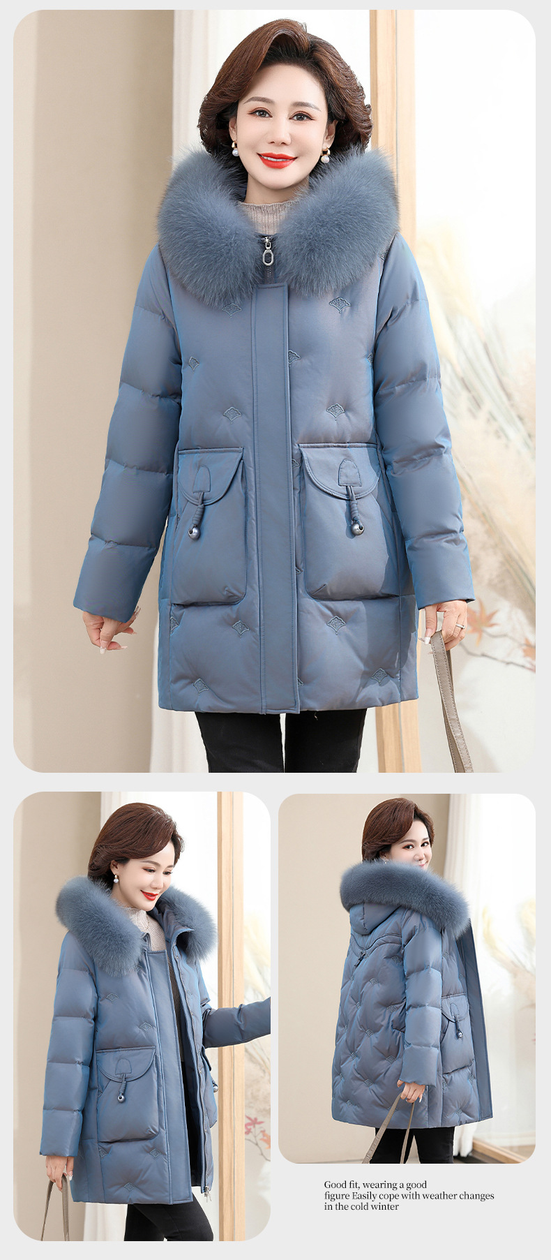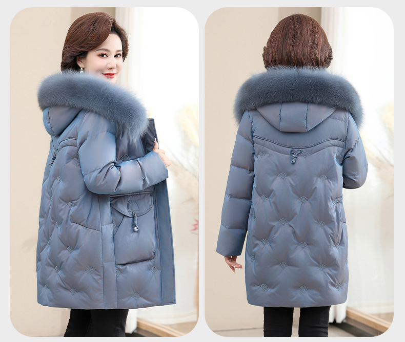Мама среднего возраста пуховик средней и длинной зимой новый средний и пожилой человек утолщает теплый и повседневный зимний пиджак