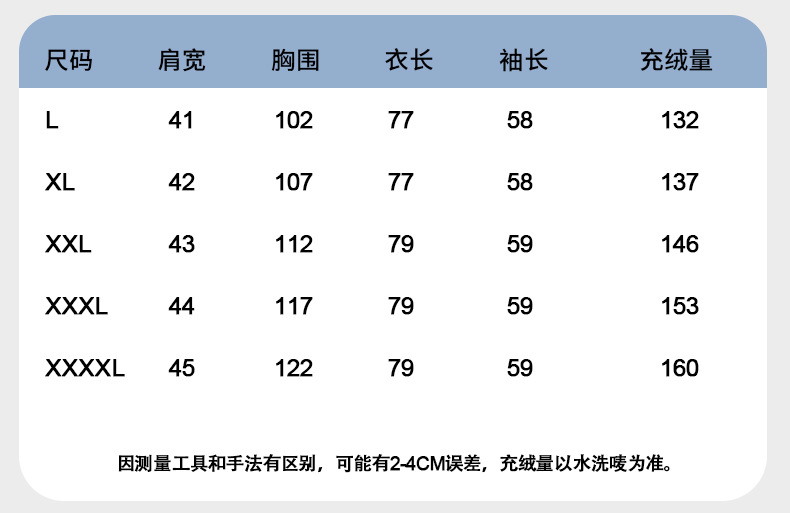 L [рекомендуется 45-52.5kg ]; XL [рекомендуется 52.5-60kg ]; 2XL [рекомендуется 60-67.5kg ]; 3XL [рекомендуется 67.5-75kg ]; 4XL [рекомендуется 75-82.5kg ]