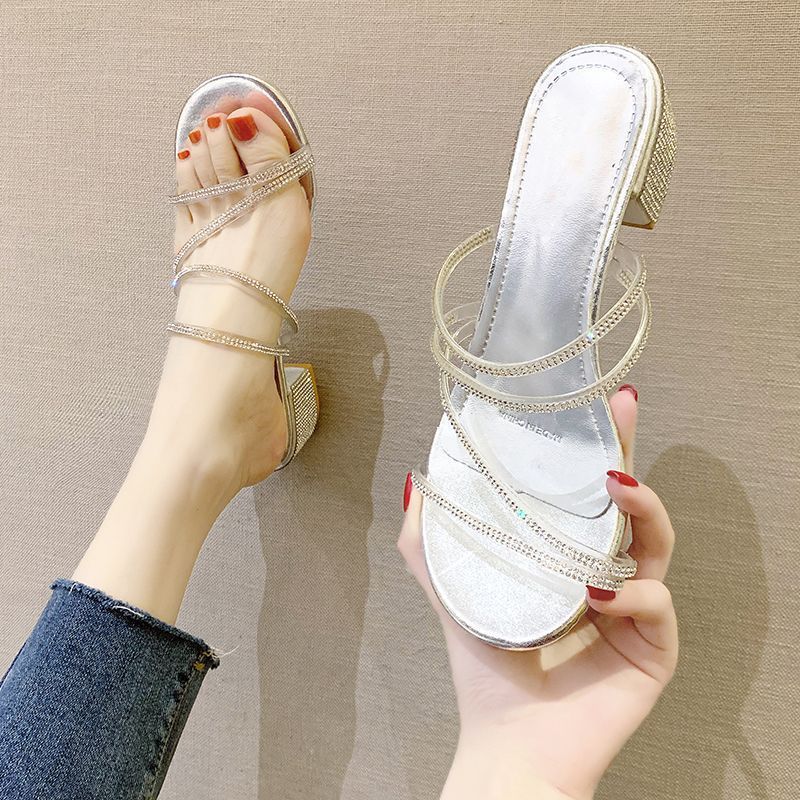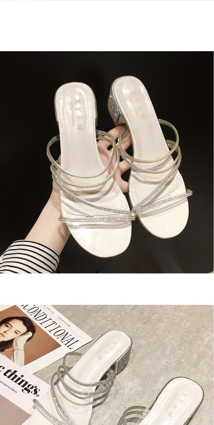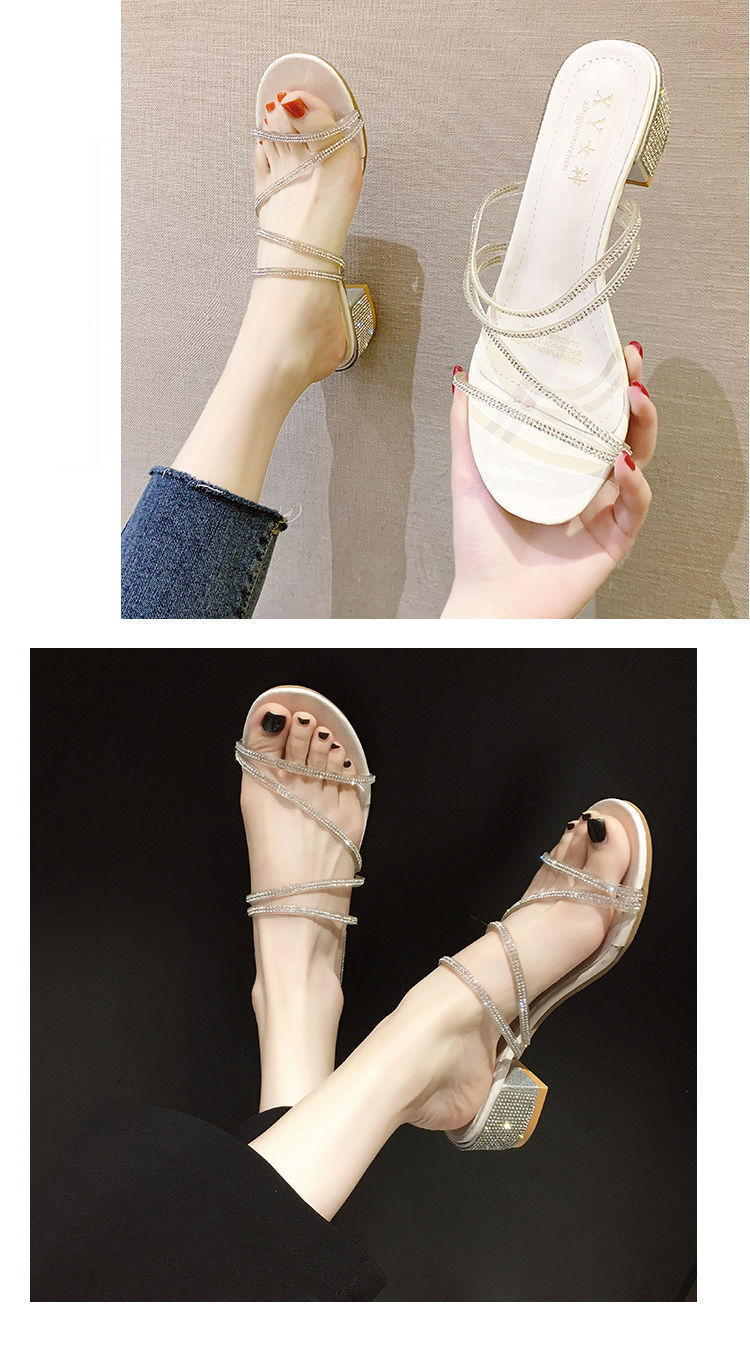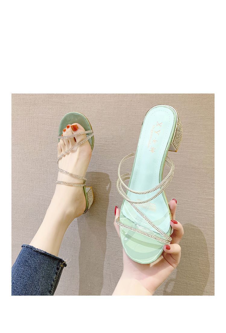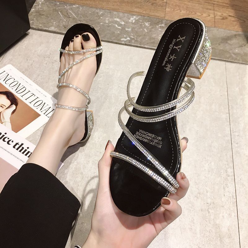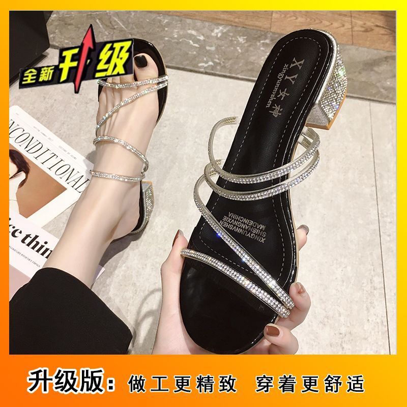 Корейская сетка красные стразы на толстом каблуке мода фея ветер тапочки женские 2024 летние новые холодные тапочки женские наружные