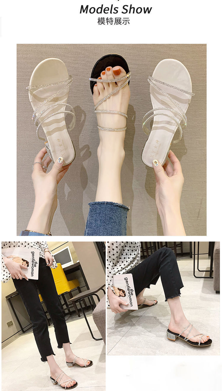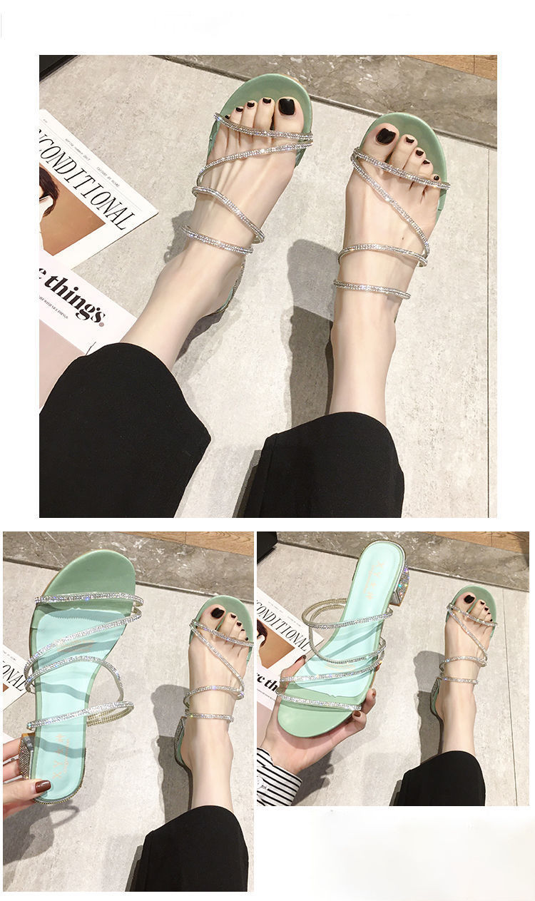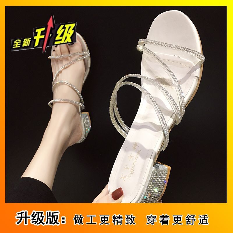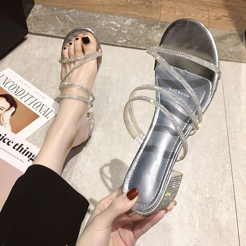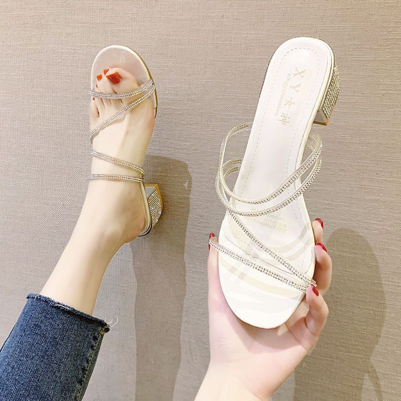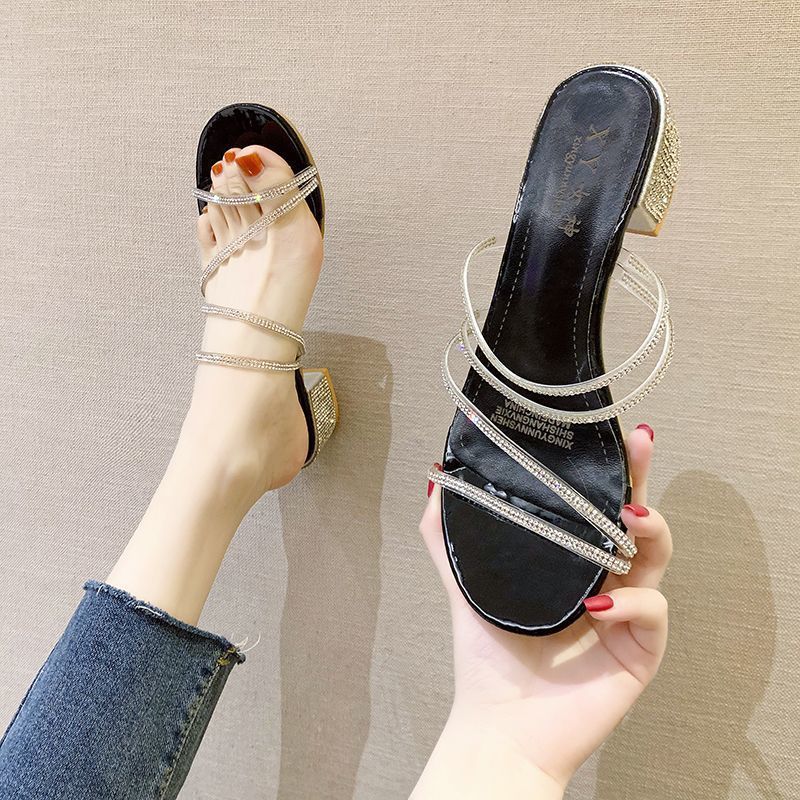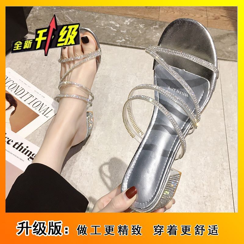 Корейская сетка красные стразы на толстом каблуке мода фея ветер тапочки женские 2024 летние новые холодные тапочки женские наружные