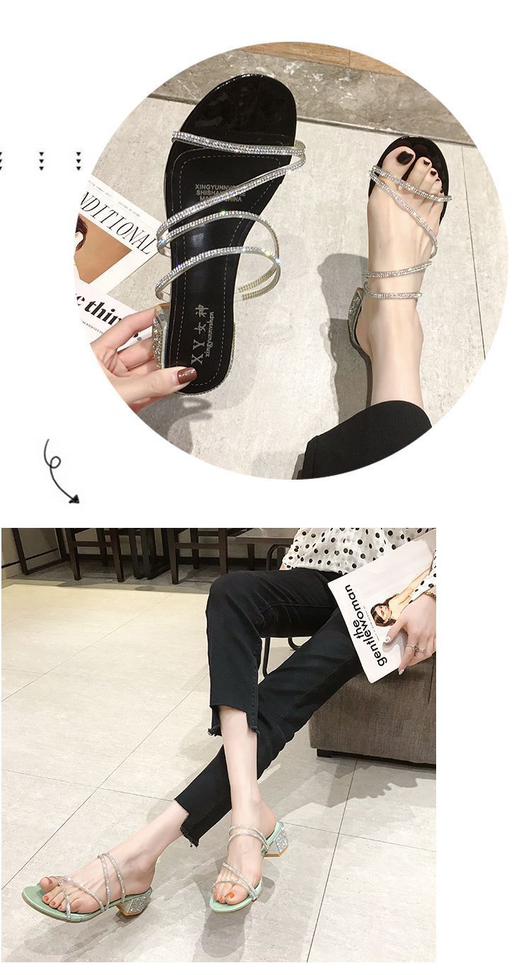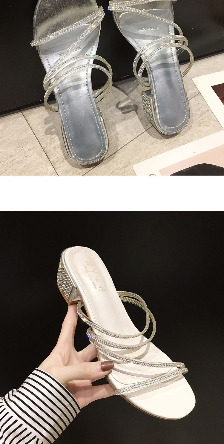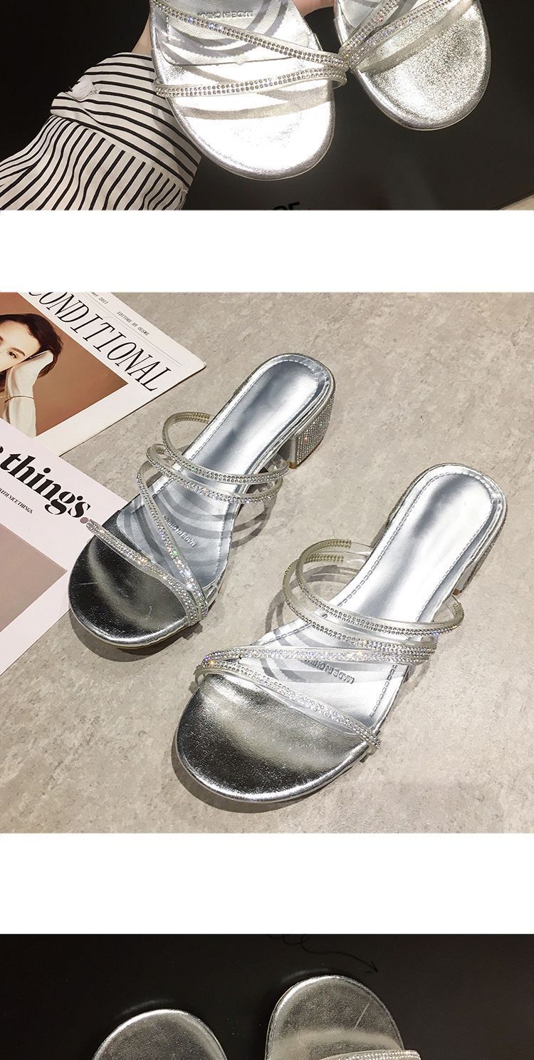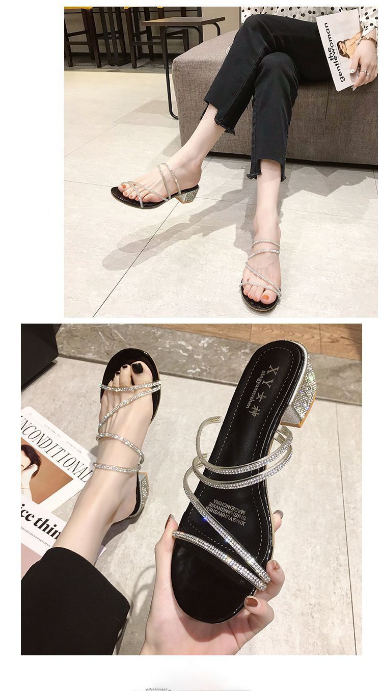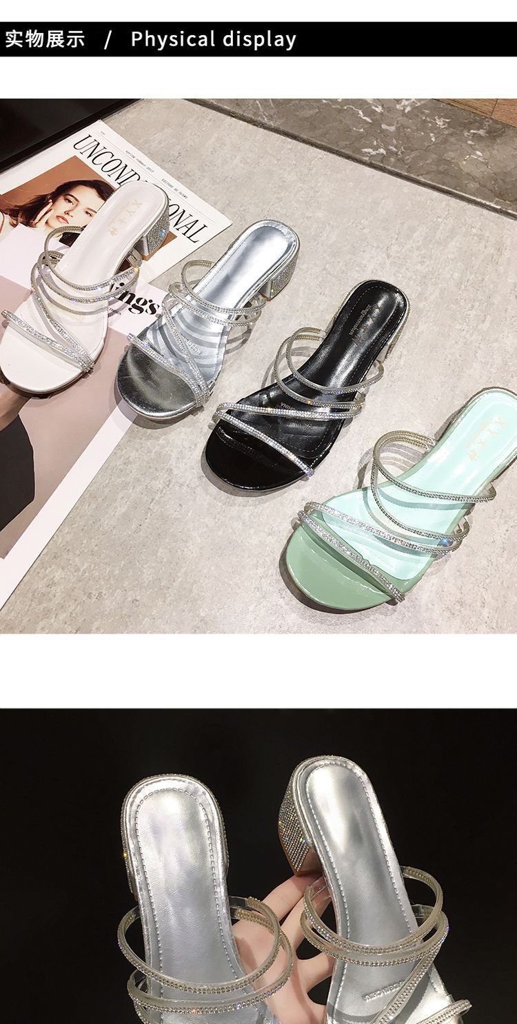 Корейская сетка красные стразы на толстом каблуке мода фея ветер тапочки женские 2024 летние новые холодные тапочки женские наружные