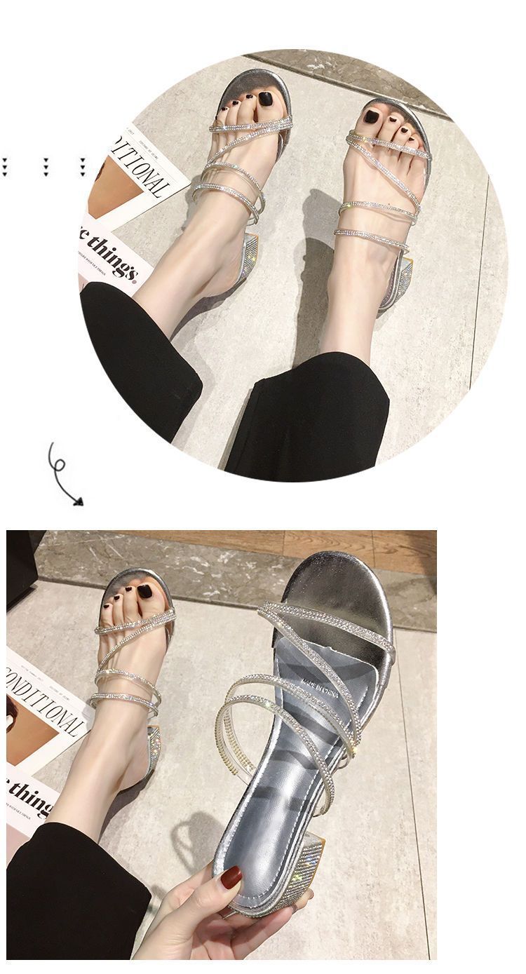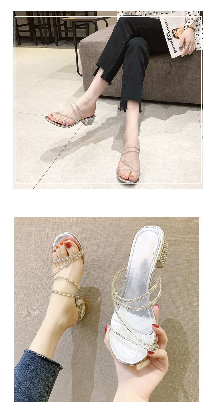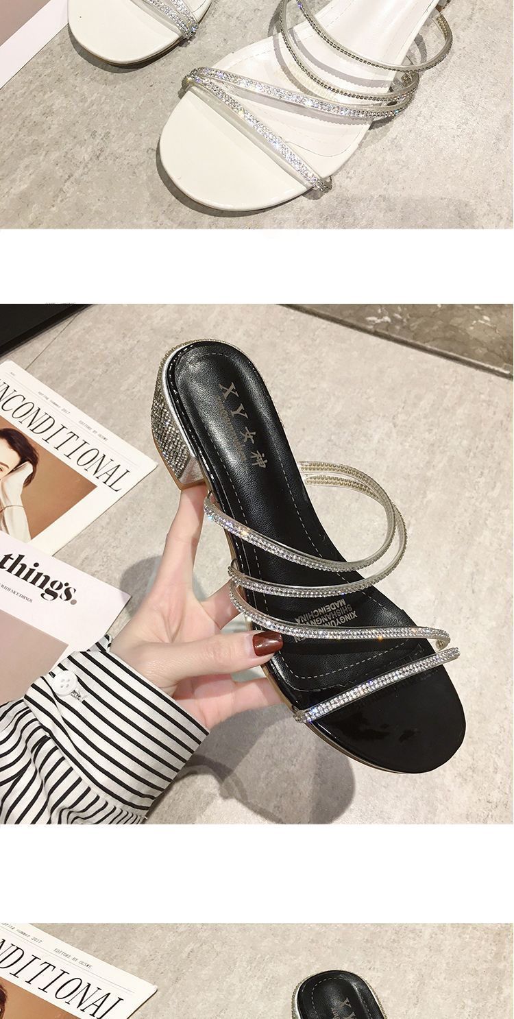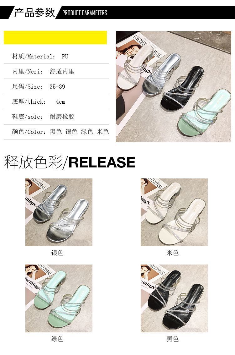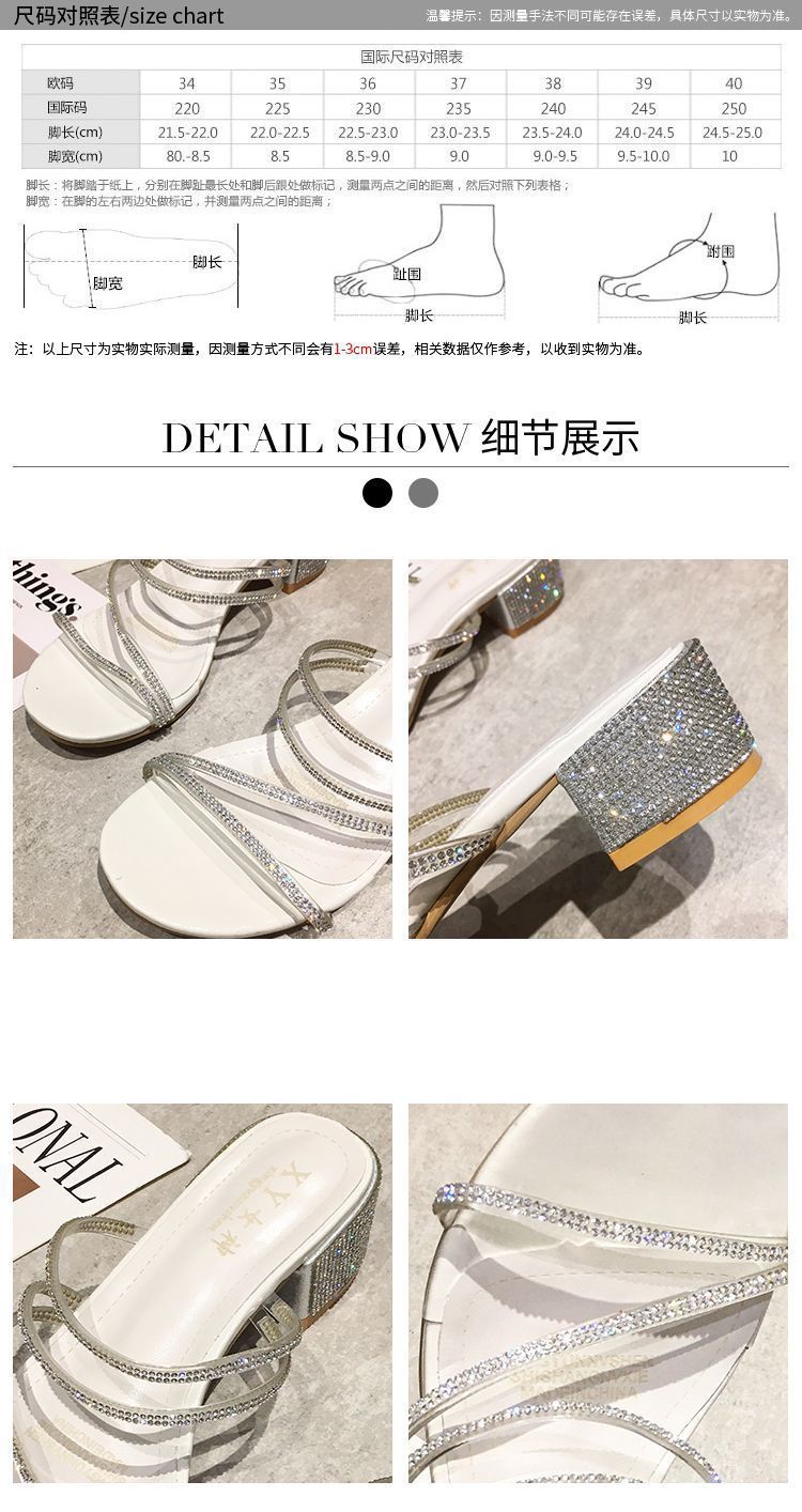 Корейская сетка красные стразы на толстом каблуке мода фея ветер тапочки женские 2024 летние новые холодные тапочки женские наружные