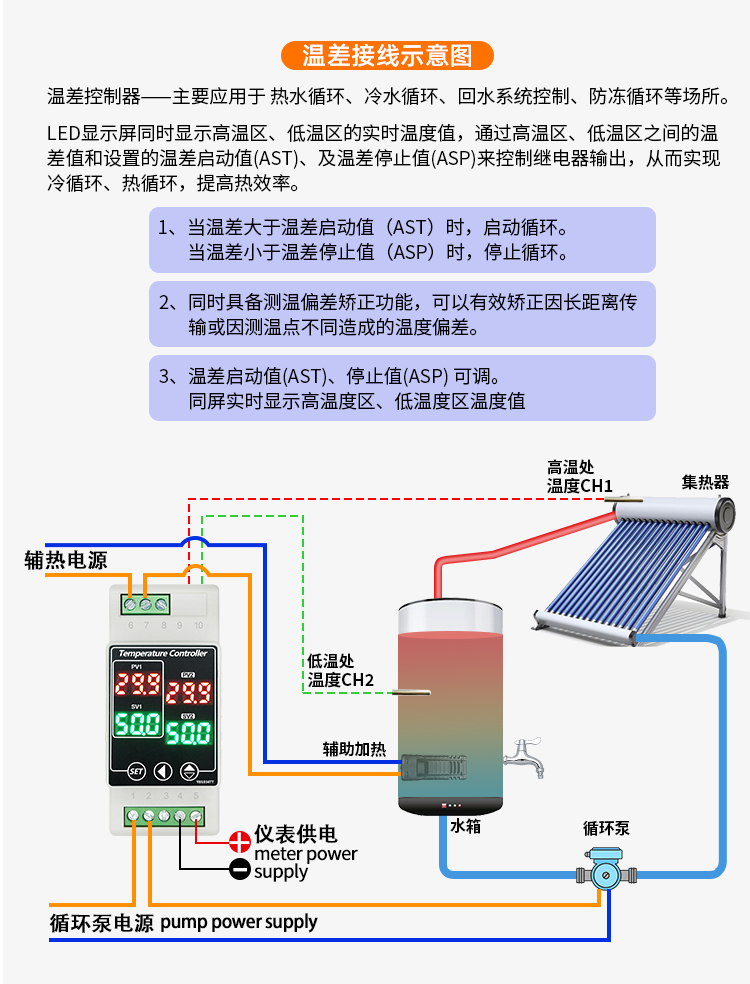 YB1034TT направляющий двухтемпературный регулятор температуры воды с двойной температурой солнечной температуры