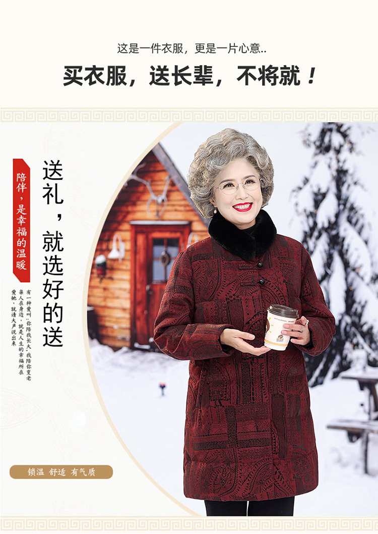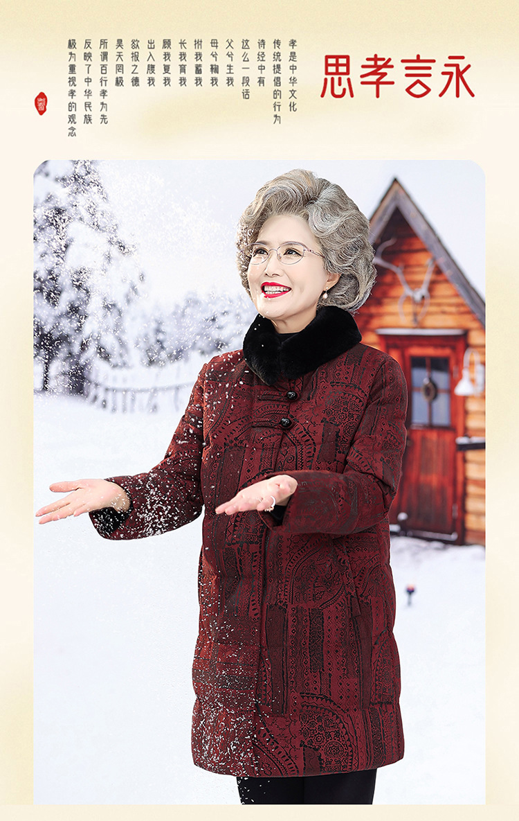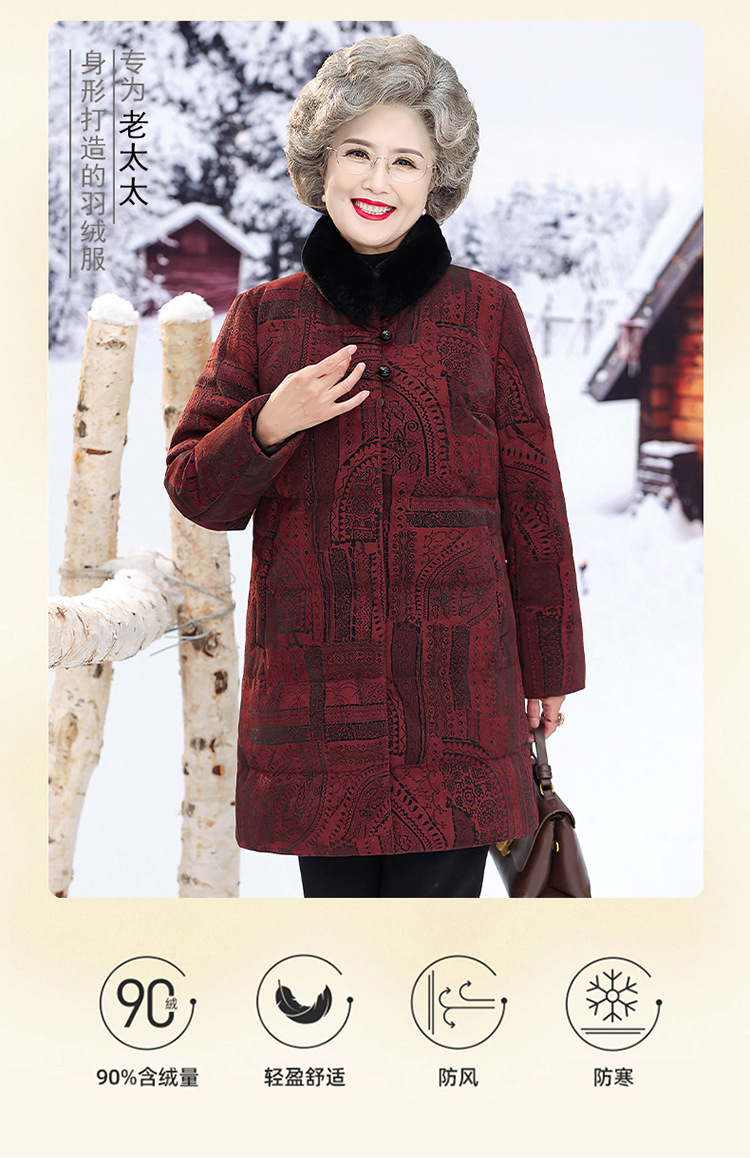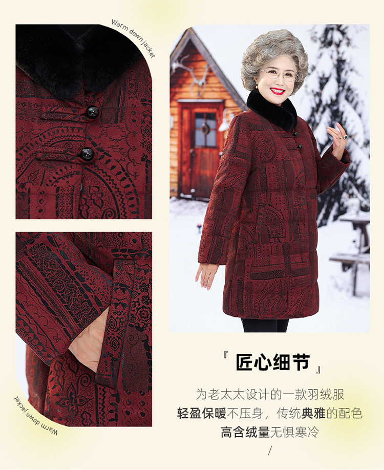 Пожилой пуховик женский средний и длинный зимний костюм мама утолщает теплая кожаная куртка бабка белая утка