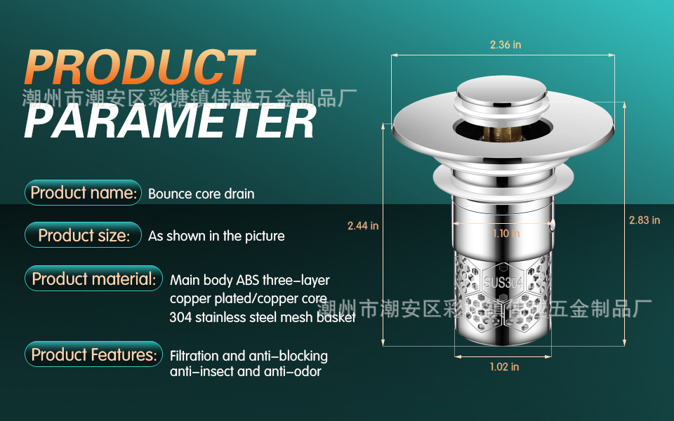 Сливный подпрыгивающий сердечник фильтрует и дезодорирует