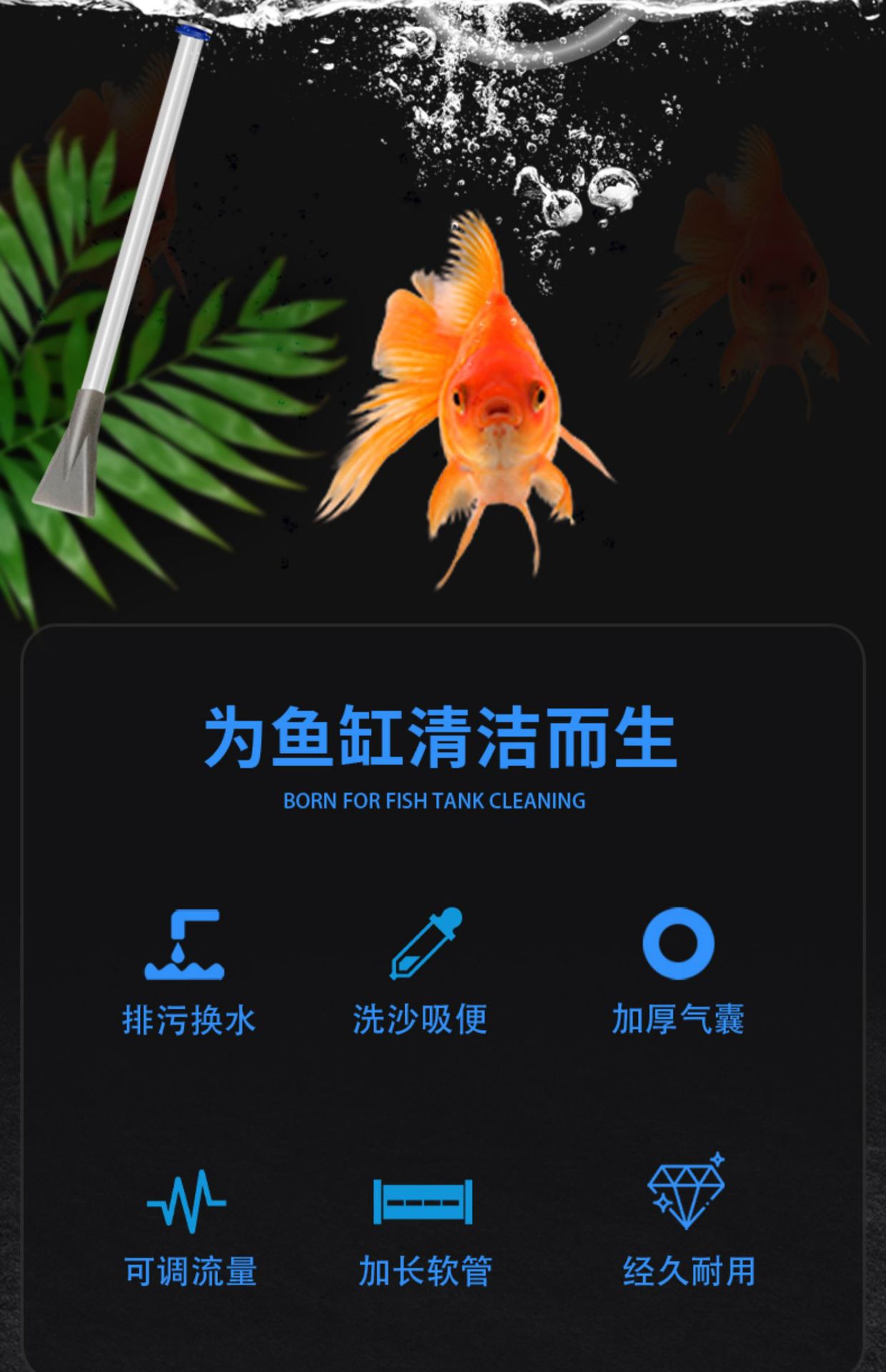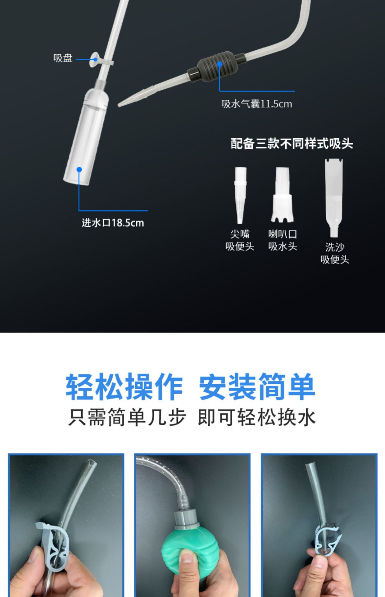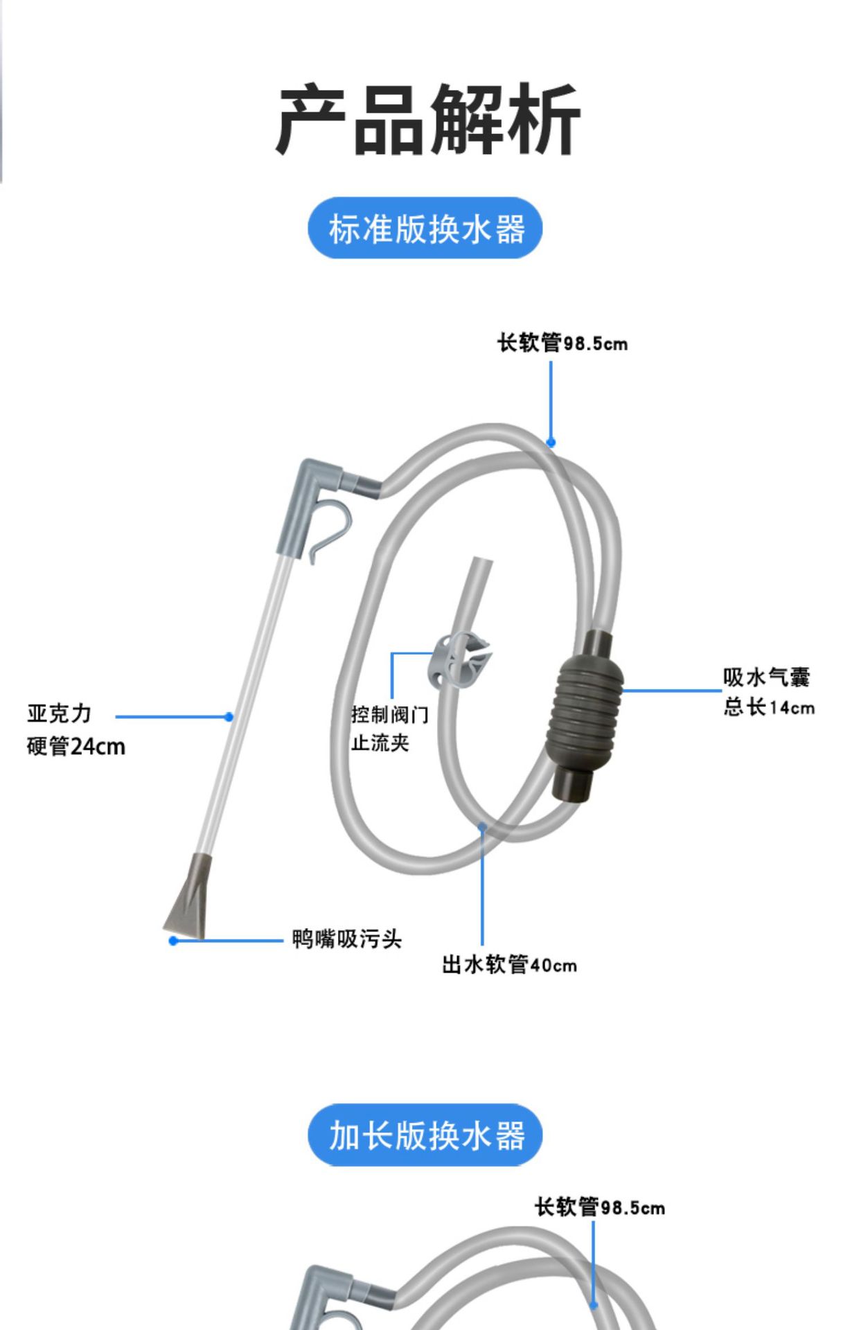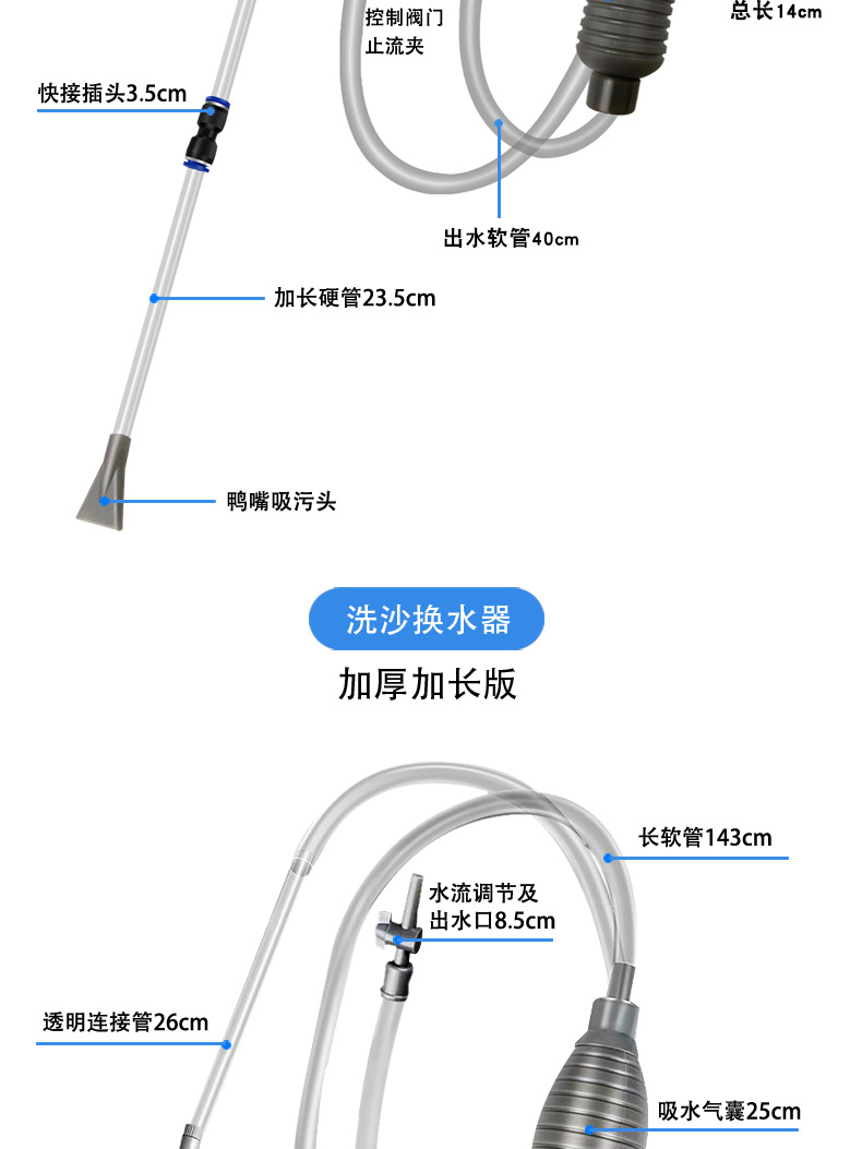 Смена воды в аквариуме для аквариума Сифонная вытяжная труба для воды Небольшой всасывающий туалет Мини-чистящие средства для очистки и очистки