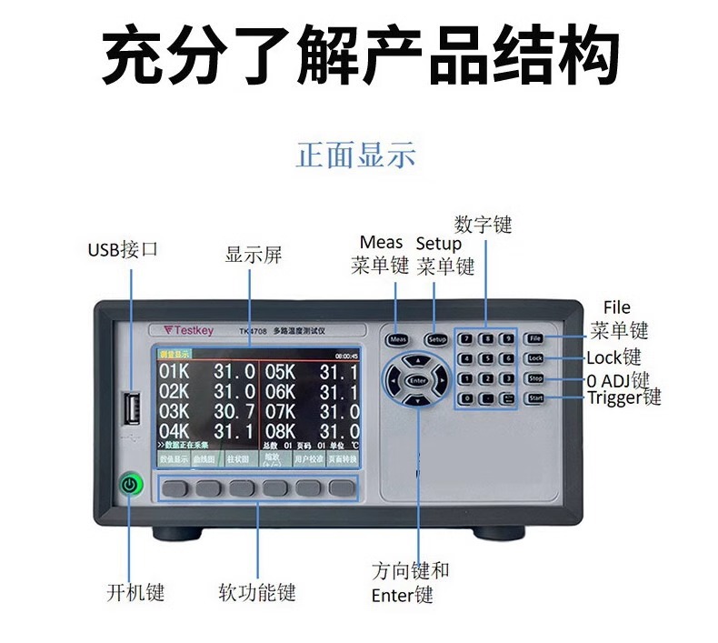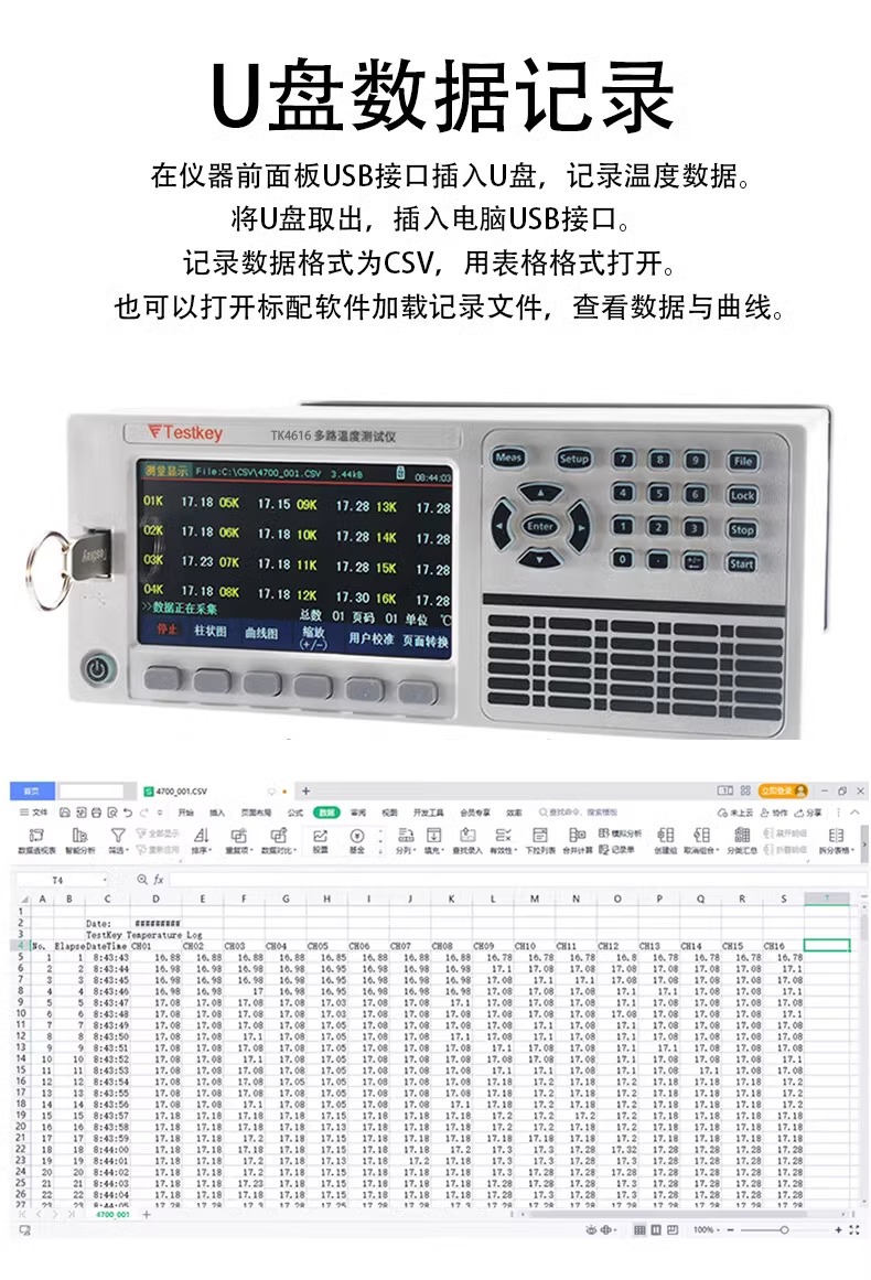 Безбумажный регистратор TK4708 Многоканальный термометр
