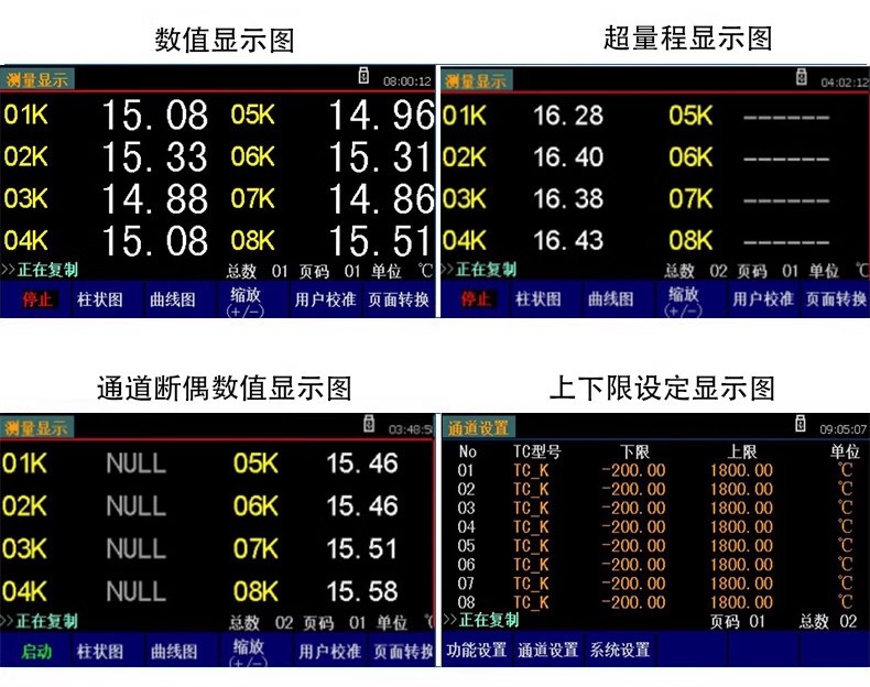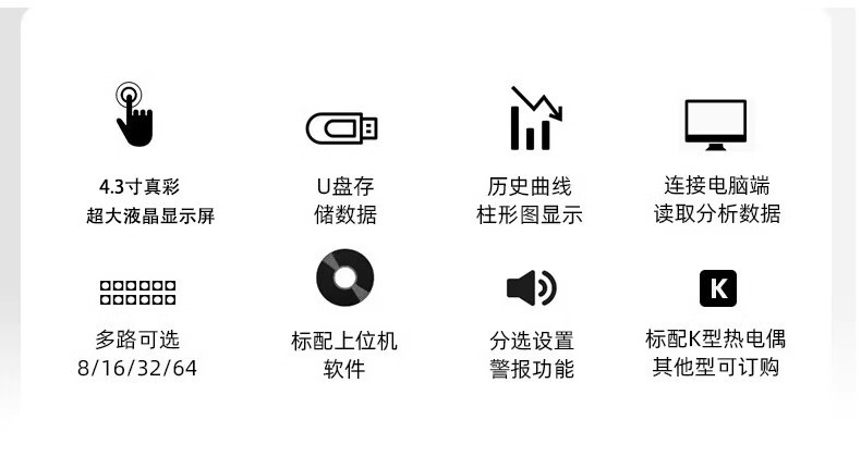 TK4608 (разрешение 0,01℃)8 каналов 4.3inch экран; TK4616 (разрешение 0,01℃)16 каналов 4.3inch экран; TK47-08 Дорога (диаграмма кривых колонн) 4.3inch Опционально; TK47-16 Дорога (диаграмма кривых колонн) 4.3inch Все опционально; TK47-24 способ (диаграмма кривой колонки) 4.3inch Опционально; Способ TK47-32 (диаграмма кривой колонки) 4.3inch Опционально; TK47-40 способ (диаграмма кривой колонки) 4.3inch Опционально; Способ TK47-48 (диаграмма кривой колонки) 4.3inch Опционально; TK47-56 способ (диаграмма кривой колонки) 4.3inch Все опционально; Способ TK47-64 (диаграмма кривой колонки) 4.3inch Все опционально; TK48-08 способ (диаграмма кривой колонки) 7inch Все опционально; TK48-16 способ (диаграмма кривой колонки) 7inch Опционально полная мощность; TK48V-08 способ (диаграмма кривой колонки) 7inch встраиваемый; Каналы TK48V-16 (диаграмма кривой колонки) 7inch встраиваемый