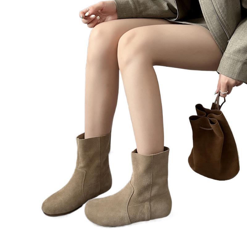 Одиночные сапоги, ретро-плоская подошва, ленивый стиль, рыцарские сапоги в стиле ретро, женские ковбойские сапоги в западном стиле, короткие сапоги в осеннем стиле.