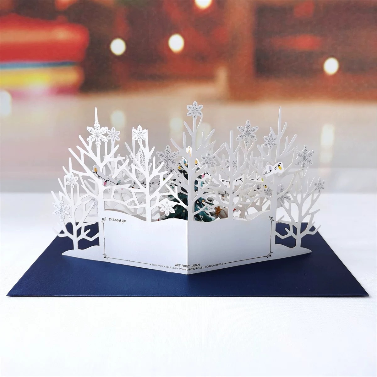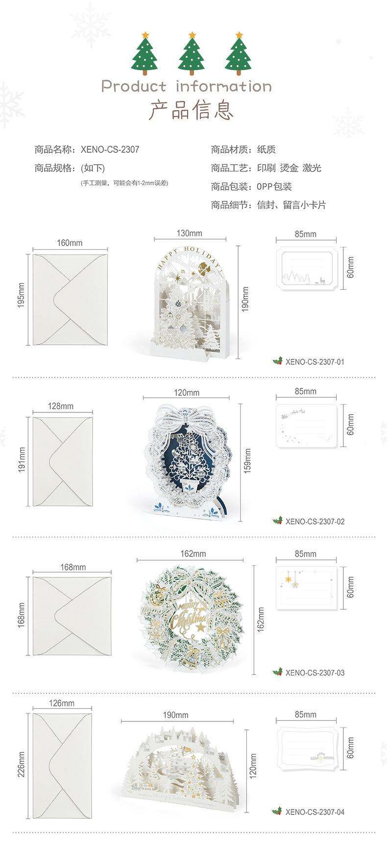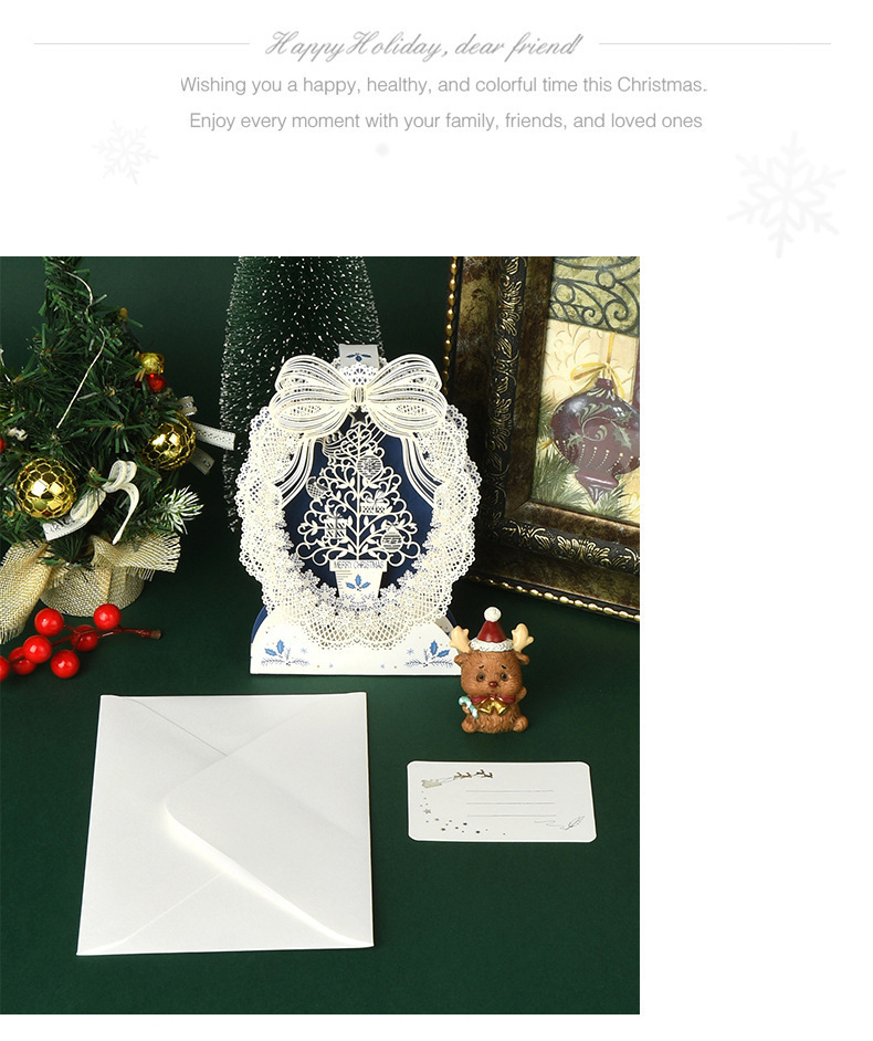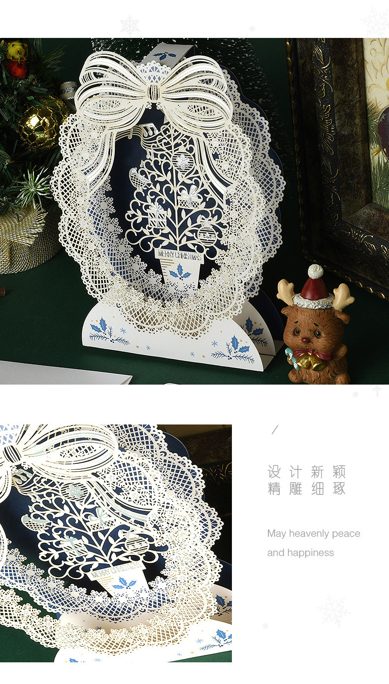 Рождественская объемная декоративная открытка-Рождественская елка А0251; Кружевная елка А0252; Зеленый рождественский венок A0253; Серебряный рождественский город А0254