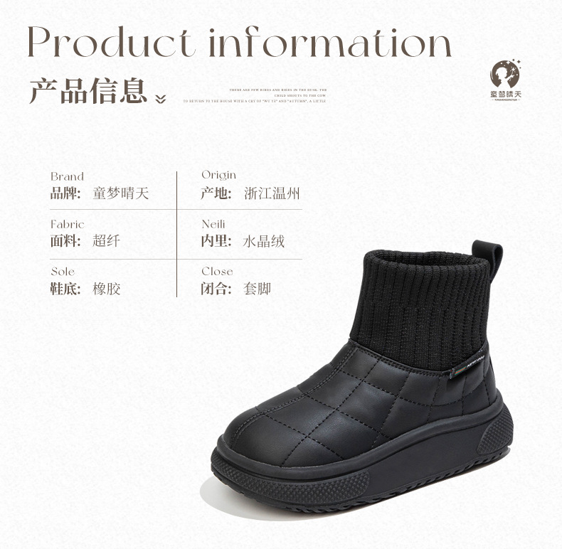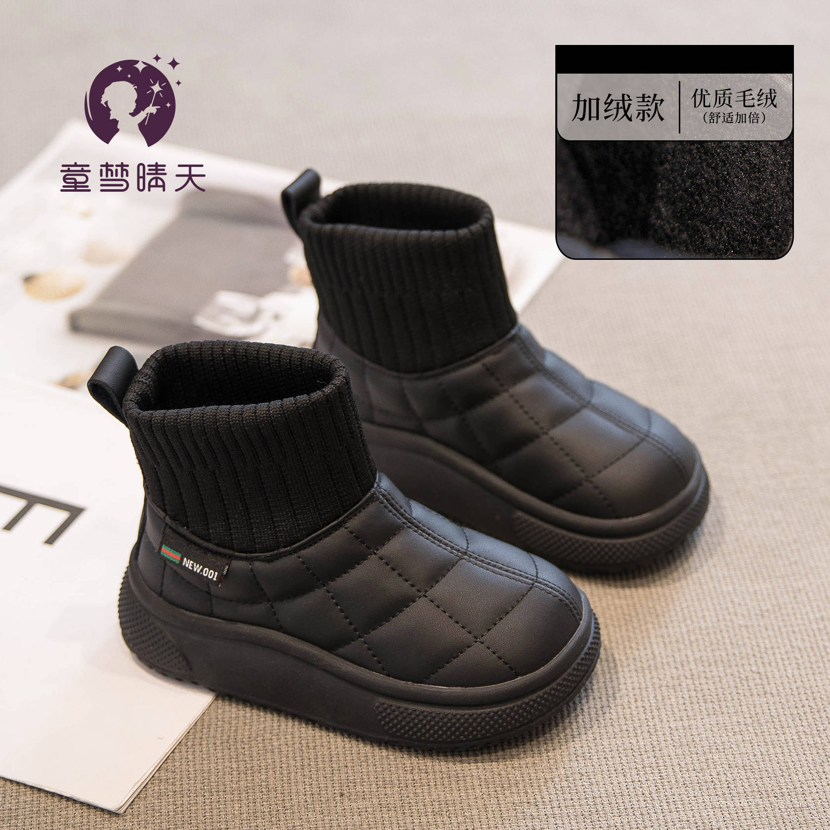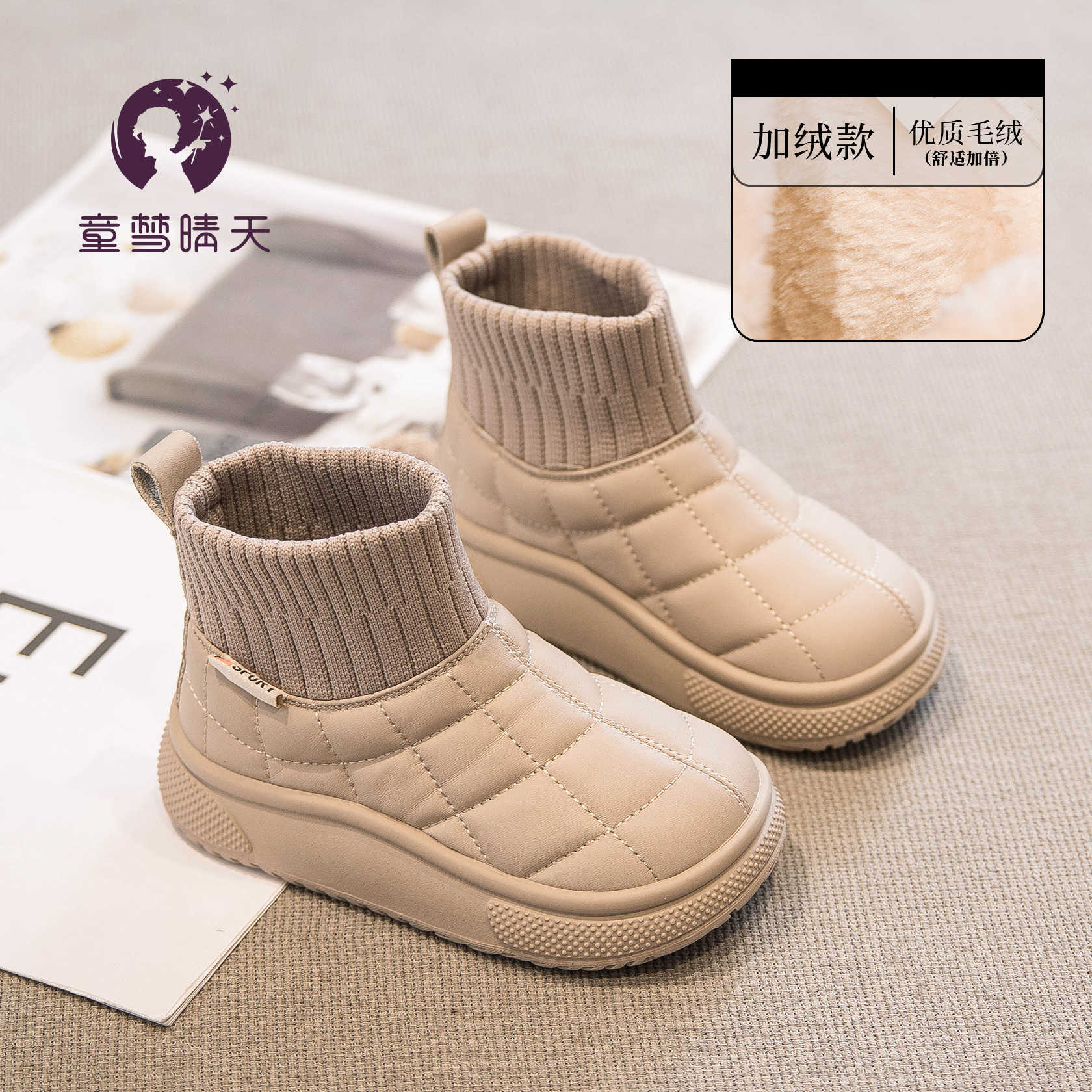 Снежные сапоги для девочек 2024 зимние новые детские туфли плюс бархатные сапоги женские сокровища осенние и зимние туфли водонепроницаемые хлопковые туфли для мальчиков