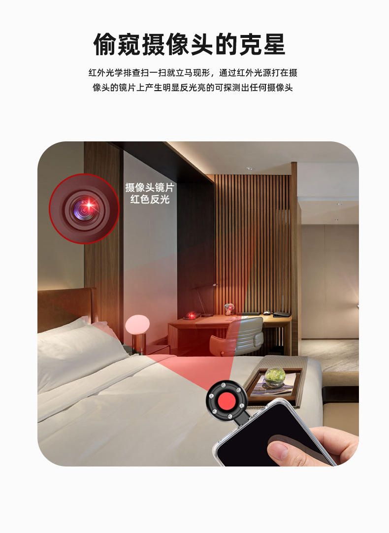 Детектор скрытых камер для отелей, домашний антишпионский, антитрекинговый, антипозиционирующий инфракрасный детектор камер с сигнализацией
