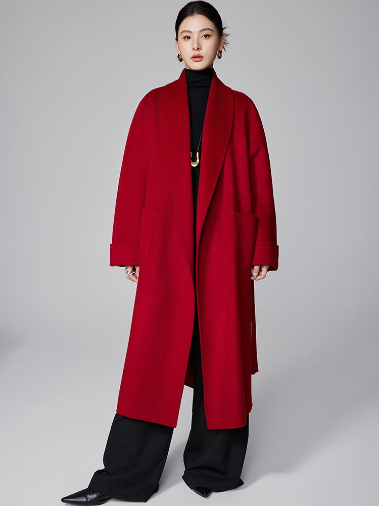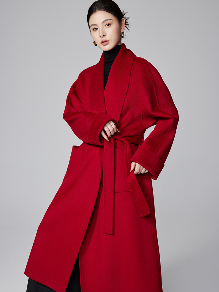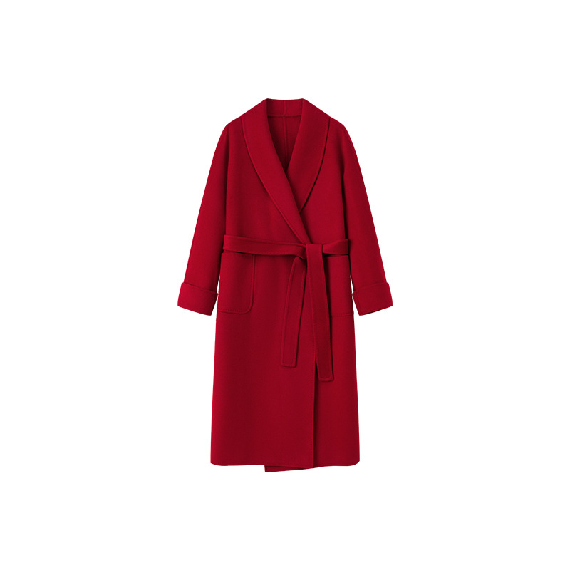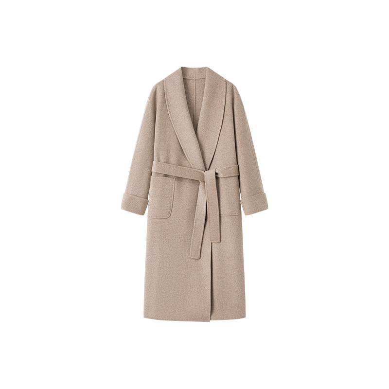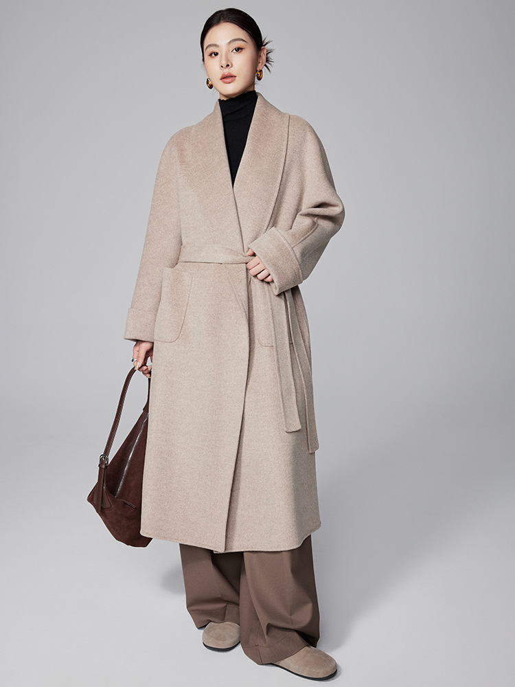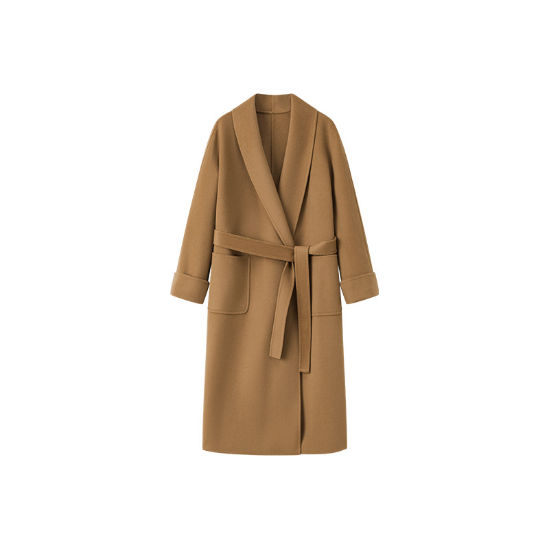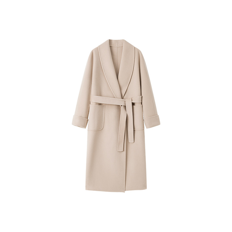 [Первоначально] Двустороннее кашемировое пальто женское длинное шнуровка 24 осенние и зимние арки ручной работы иглы высокого уровня чувство шерстяное пальто