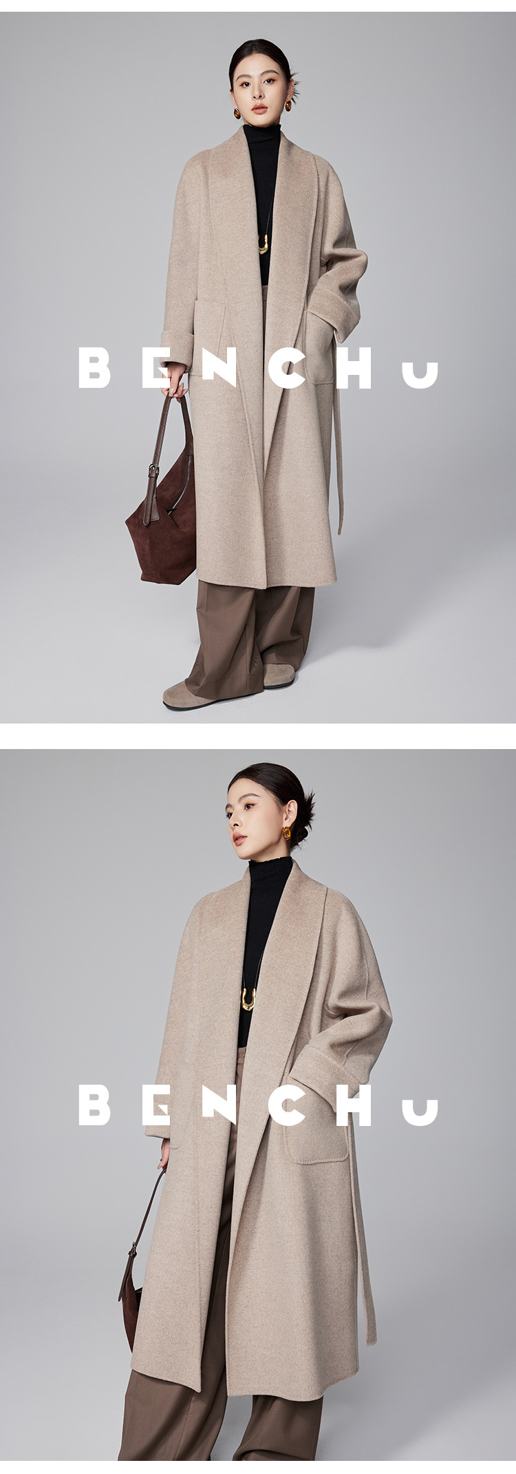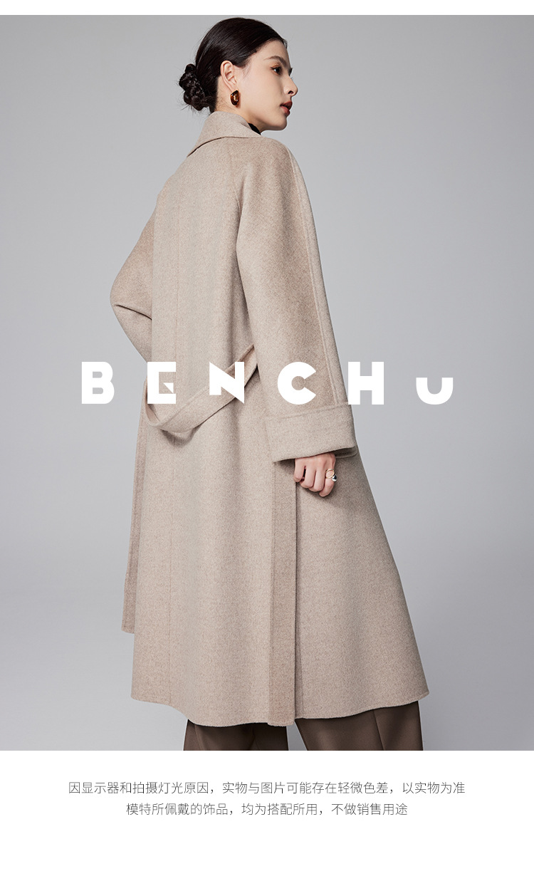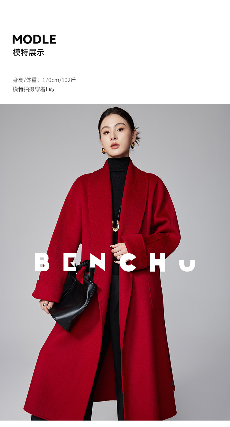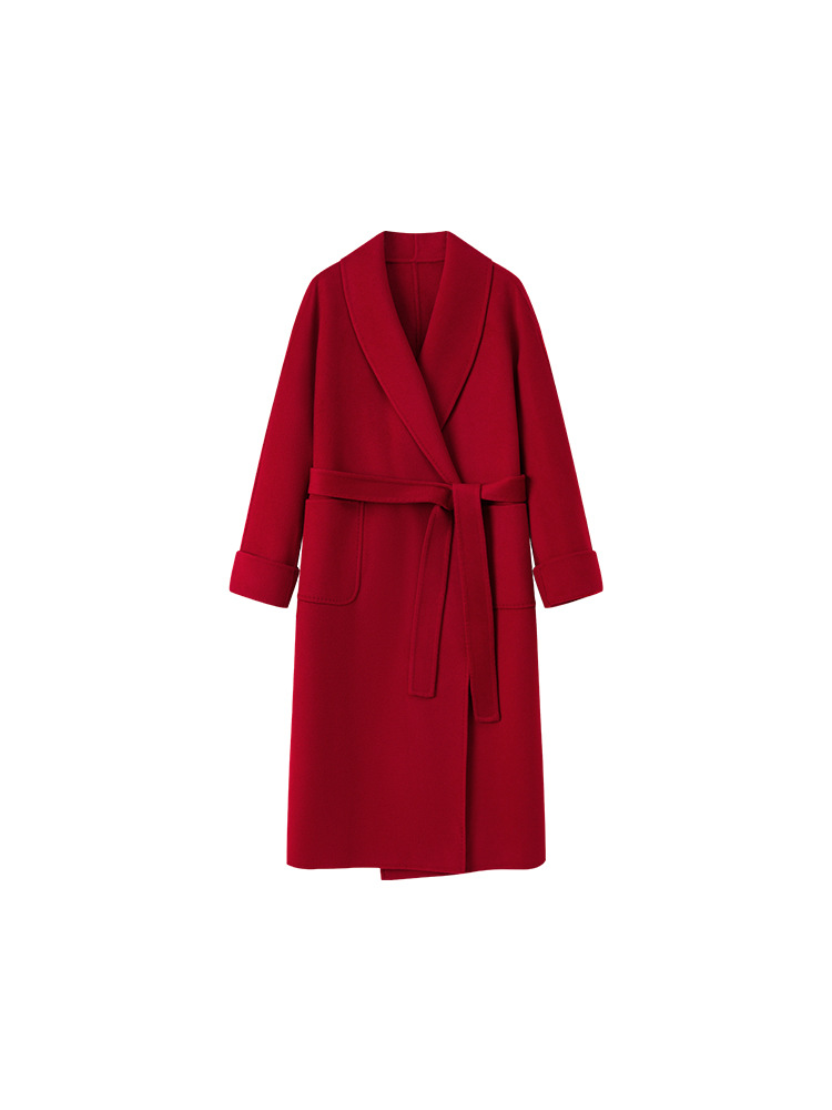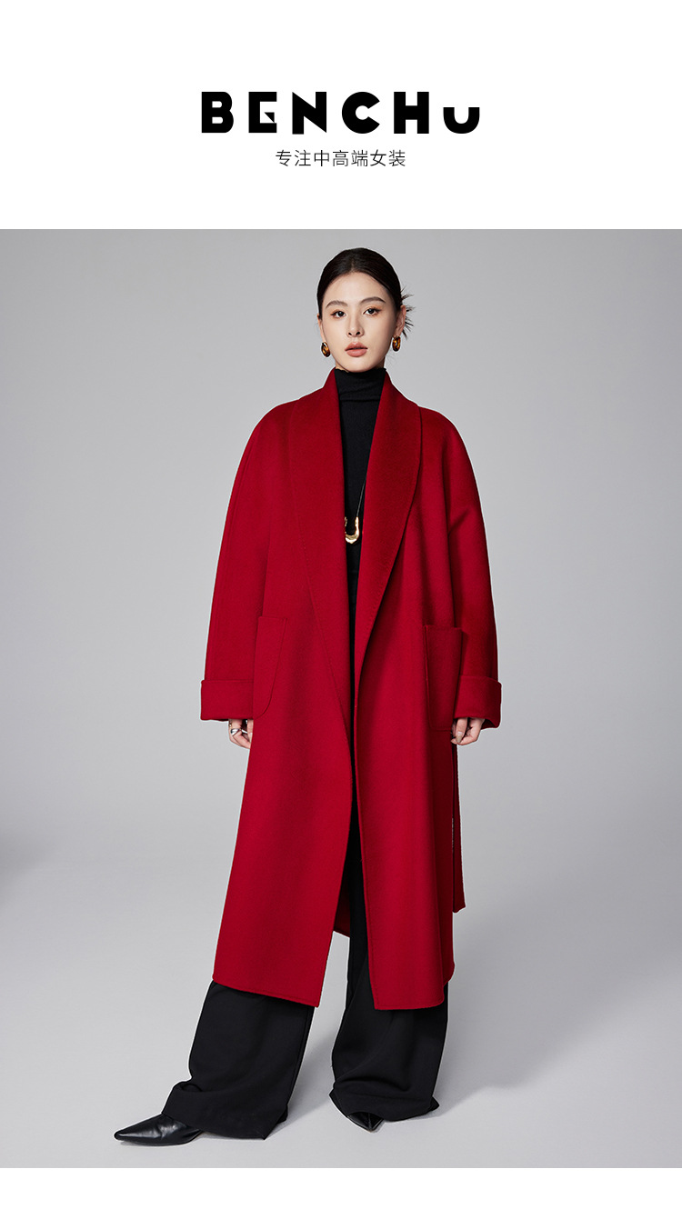 [Первоначально] Двустороннее кашемировое пальто женское длинное шнуровка 24 осенние и зимние арки ручной работы иглы высокого уровня чувство шерстяное пальто
