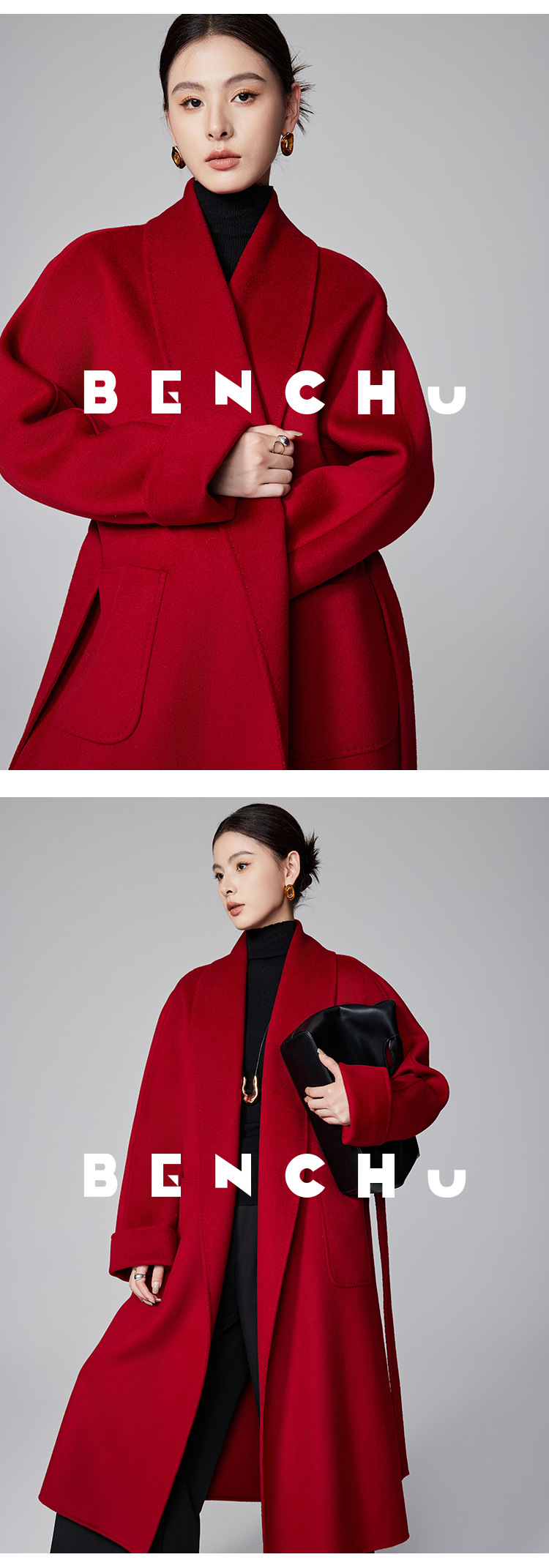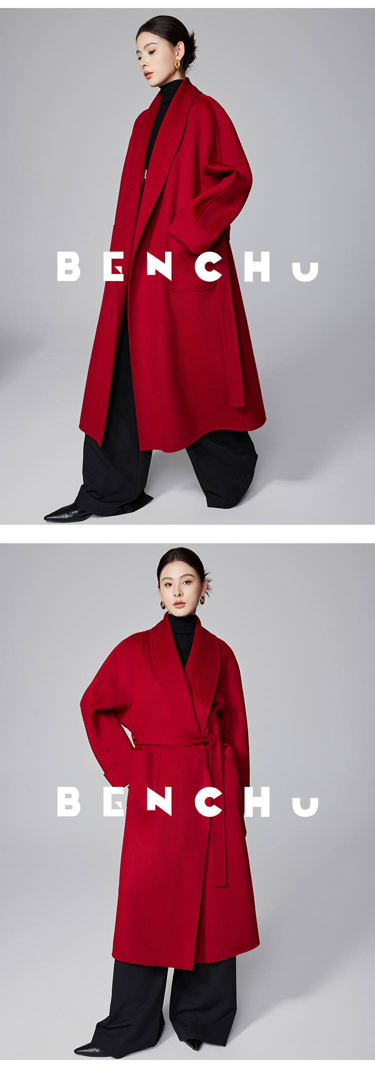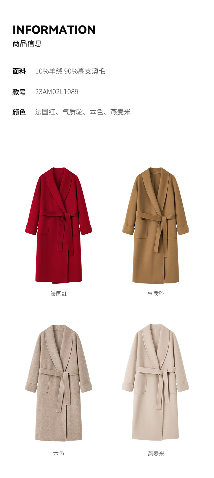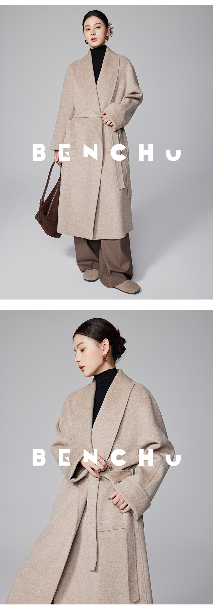 [Первоначально] Двустороннее кашемировое пальто женское длинное шнуровка 24 осенние и зимние арки ручной работы иглы высокого уровня чувство шерстяное пальто