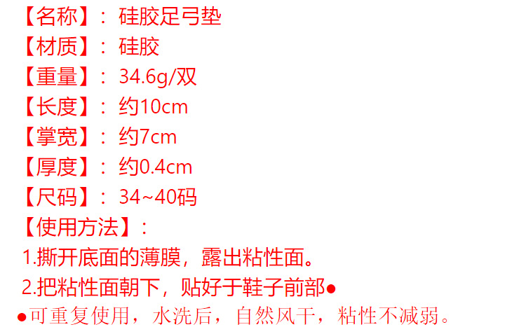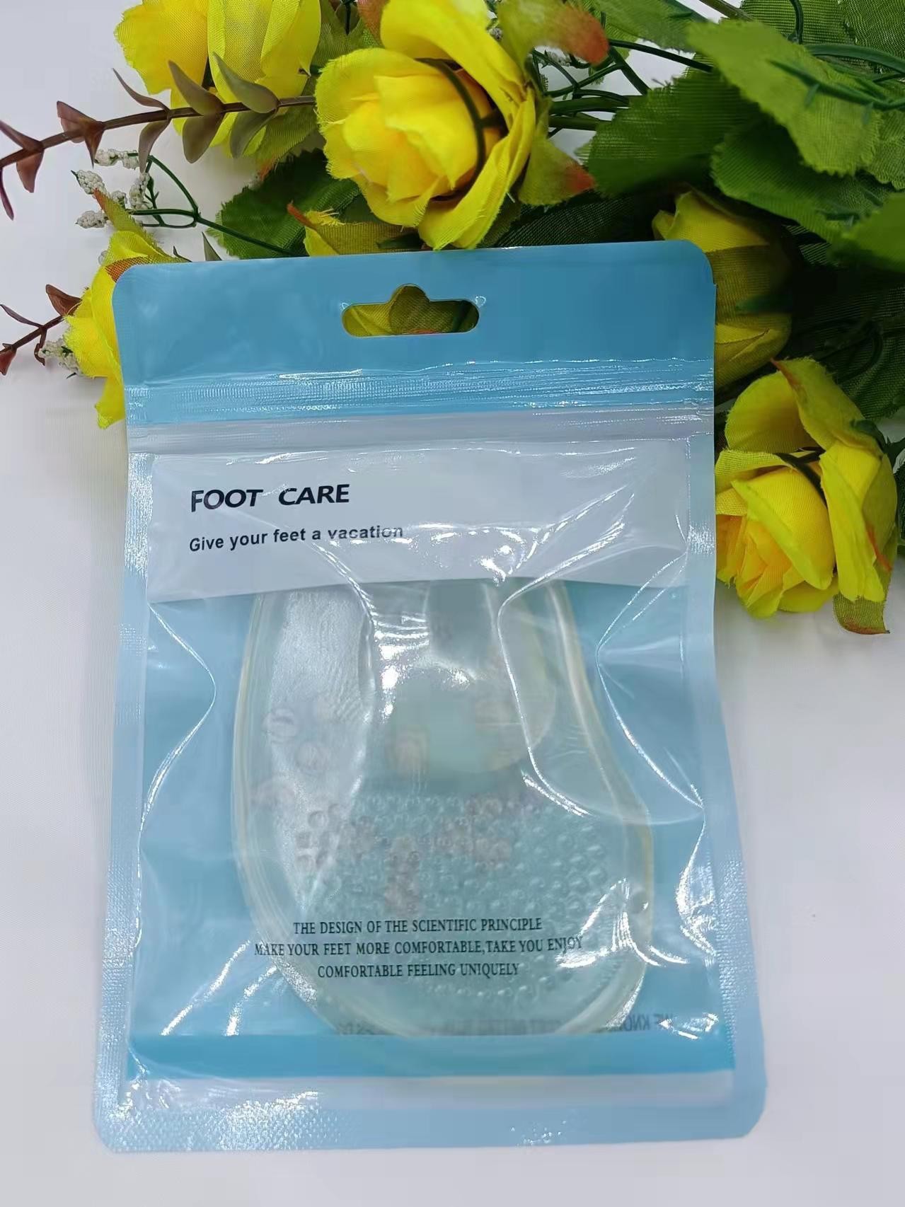 Прозрачная упаковка в пакет; Красочная упаковка в пакет; Накладка на переднюю часть стопы с небольшой точкой в виде карточки не поставляется с клеем.